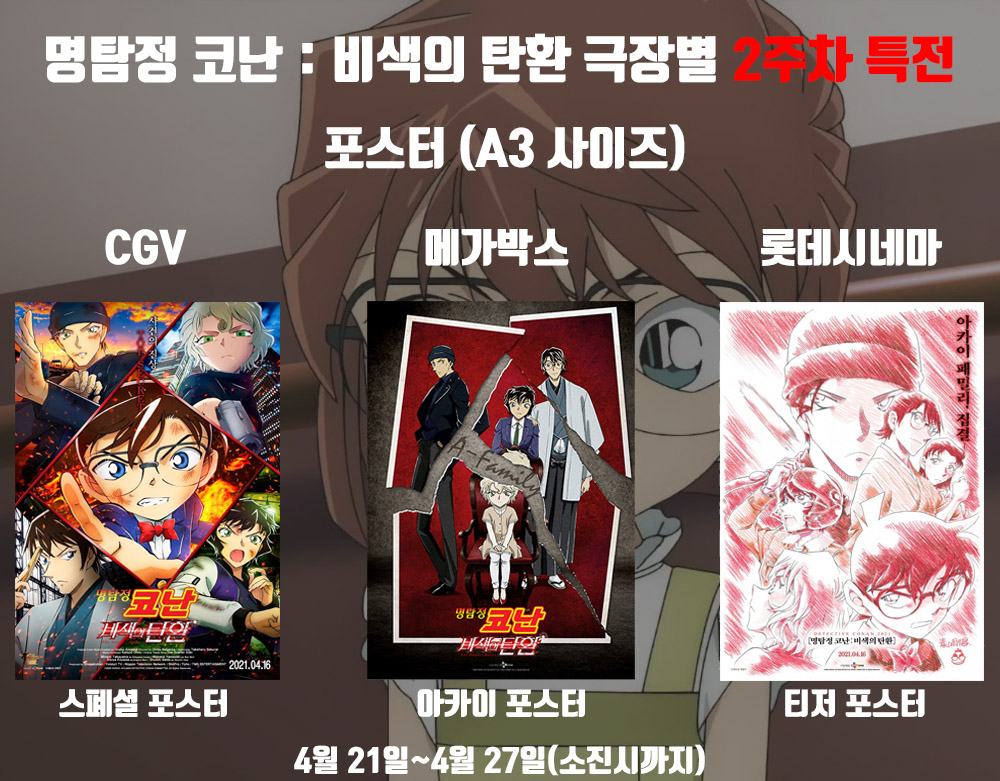 명탐정 코난 비색의 탄환 개봉일 2021년 4월 16일