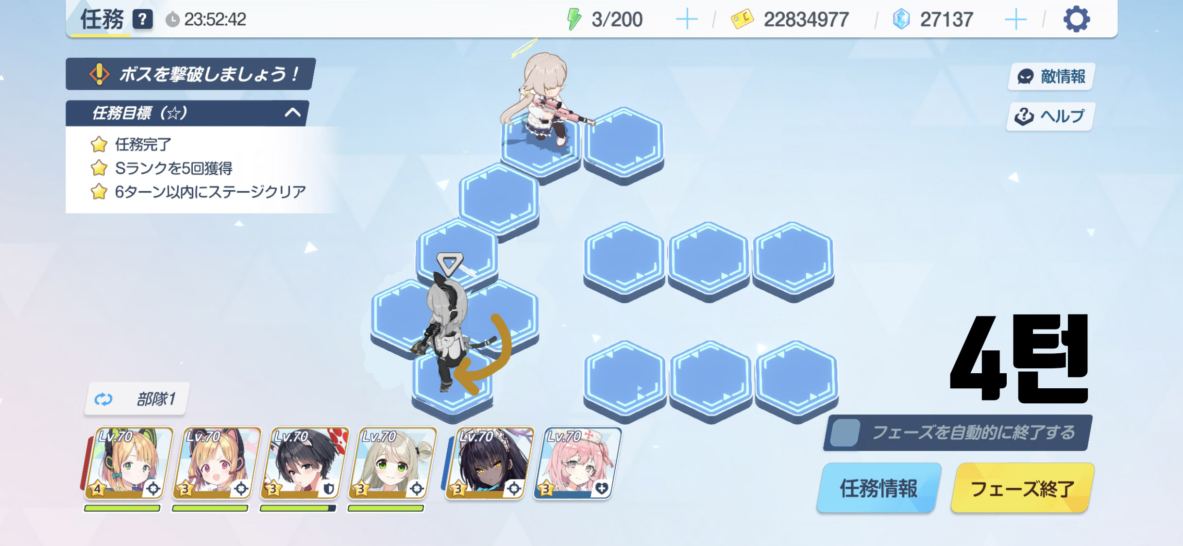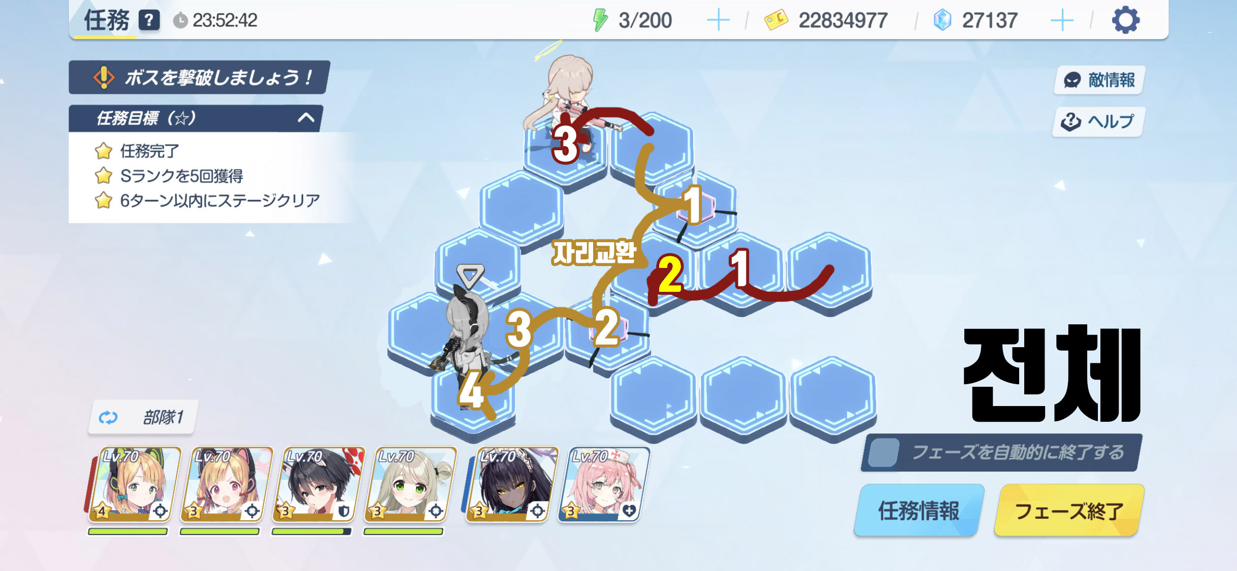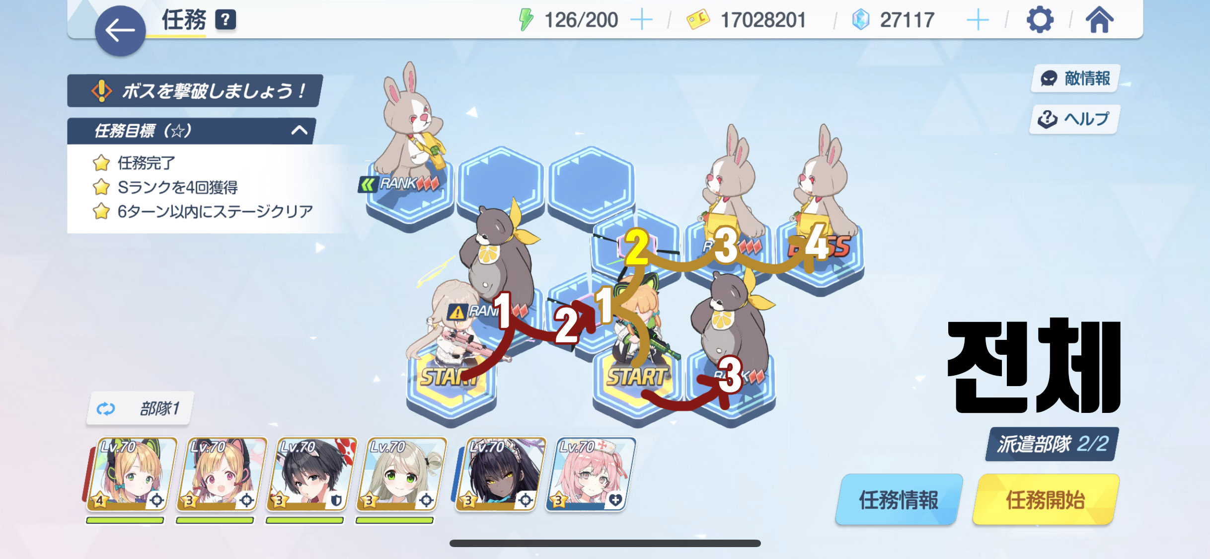 임무완료 / 전투 S랭크 4회 / 6턴 안에 스테이지 클리어