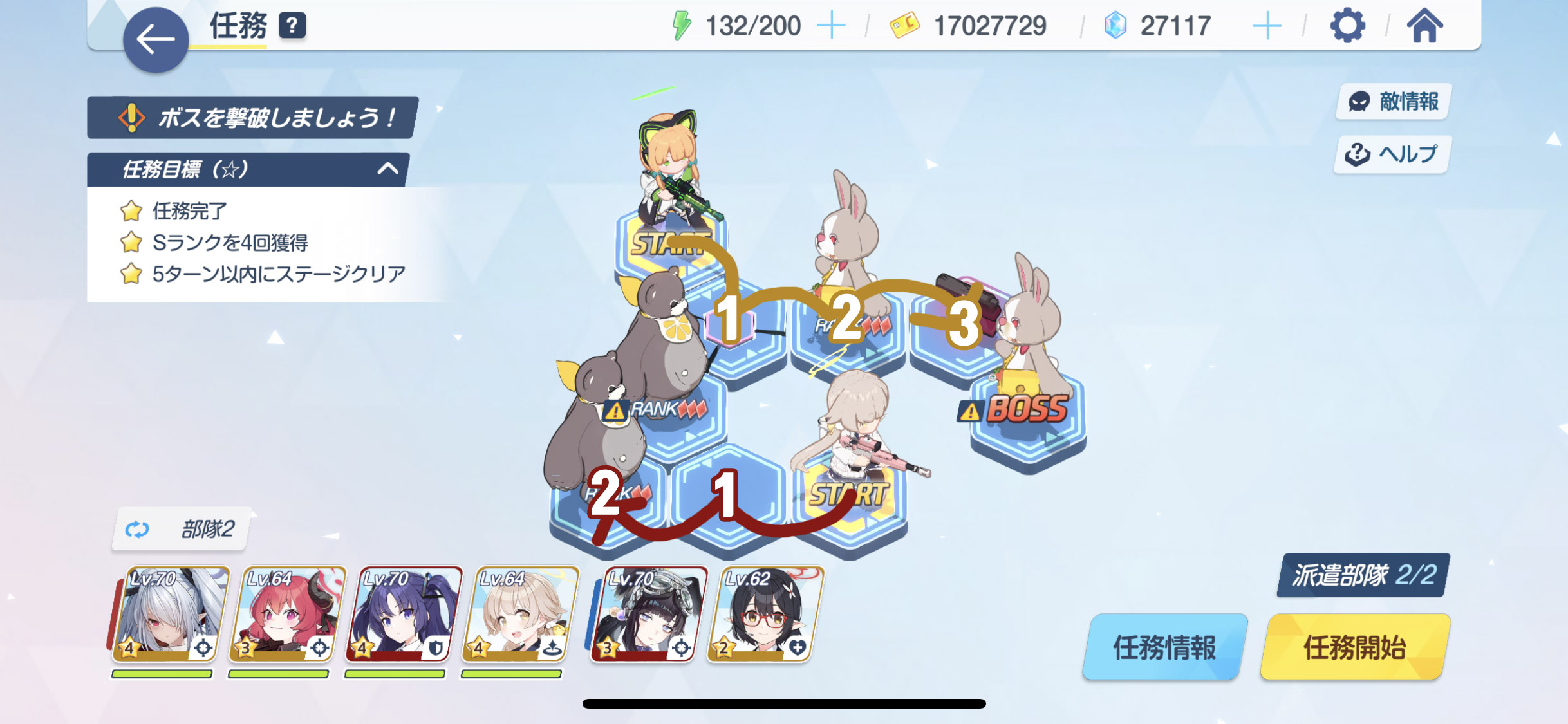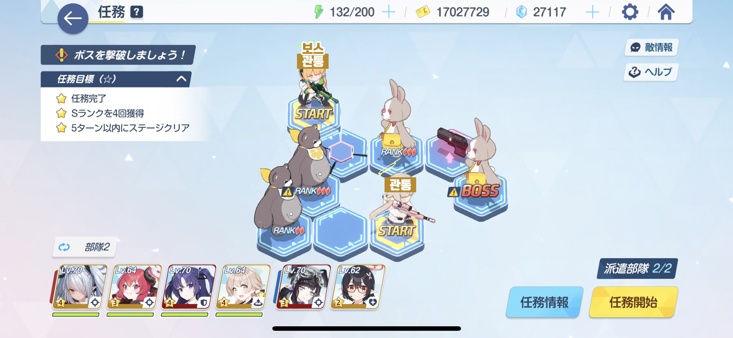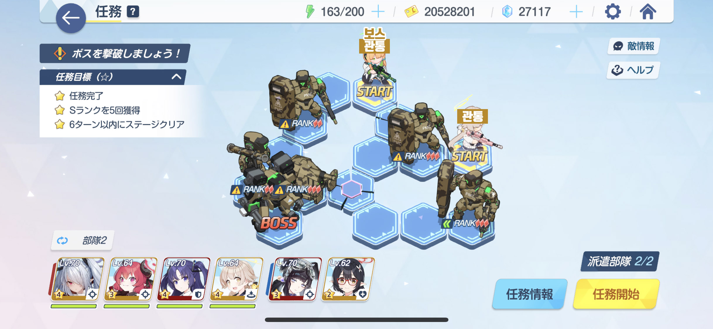 임무완료 / 전투 S랭크 4회 / 6턴 안에 스테이지 클리어