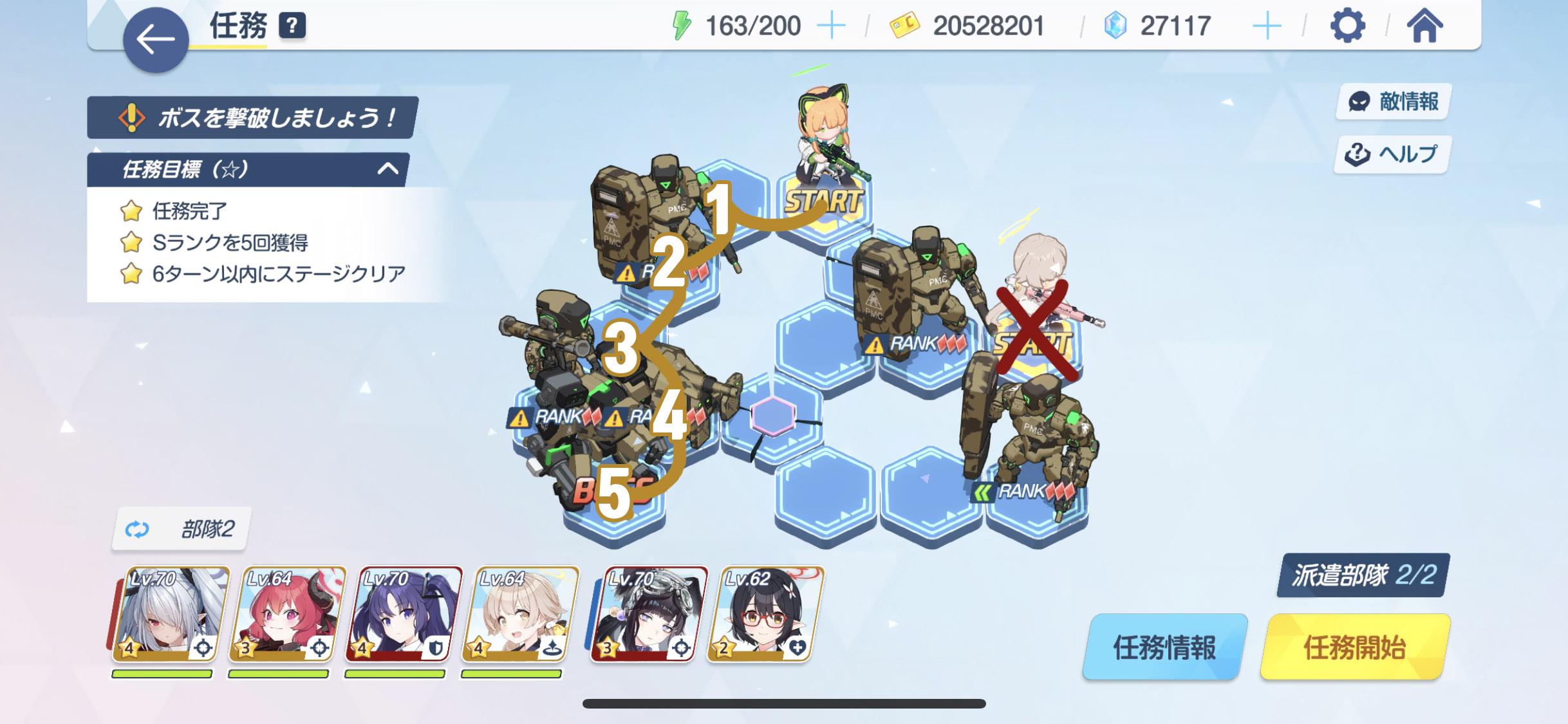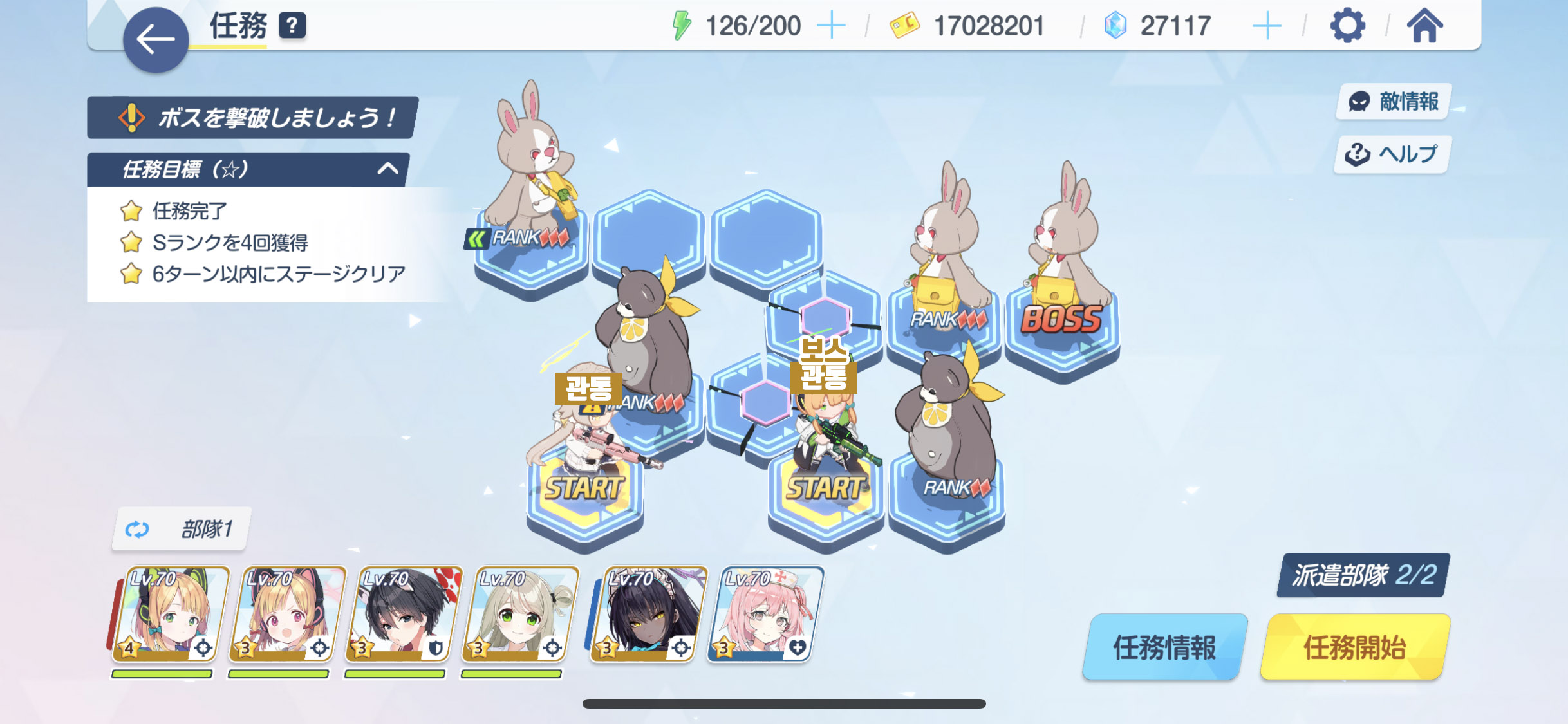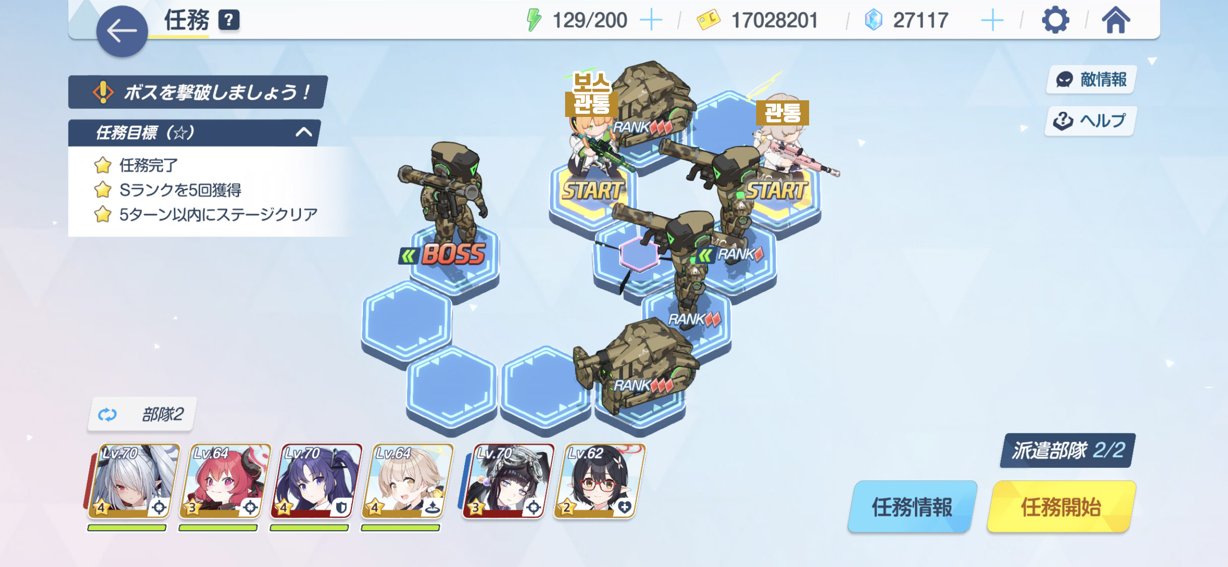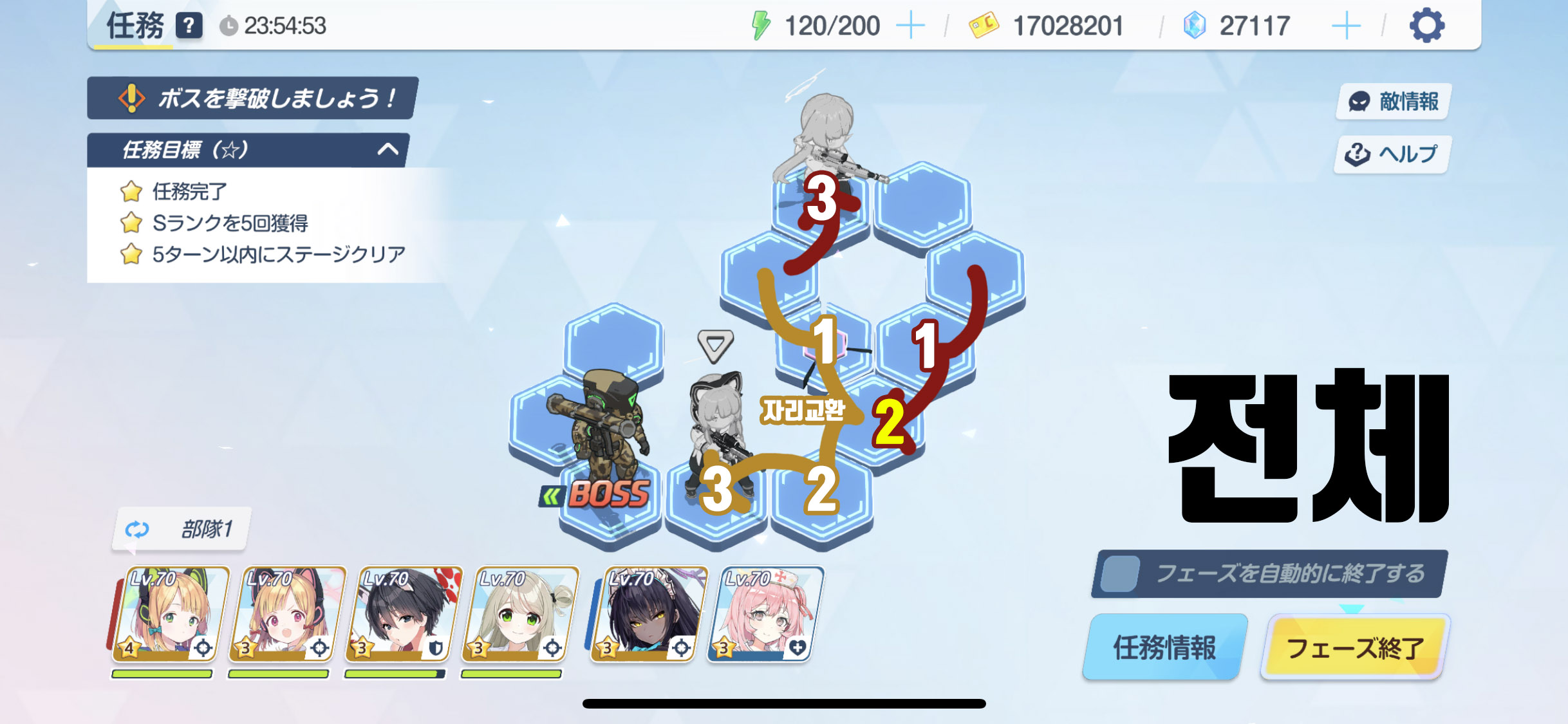 임무완료 / 전투 S랭크 5회 / 6턴 안에 스테이지 클리어