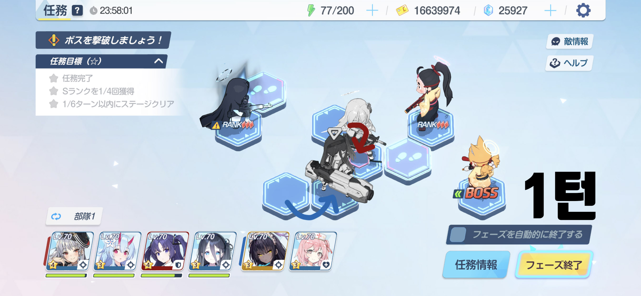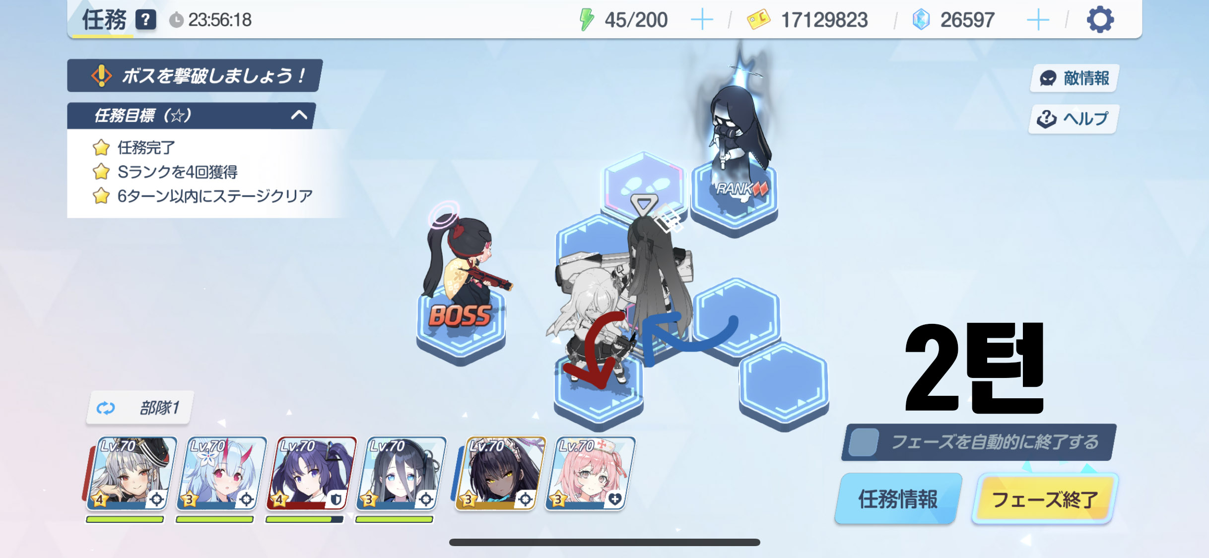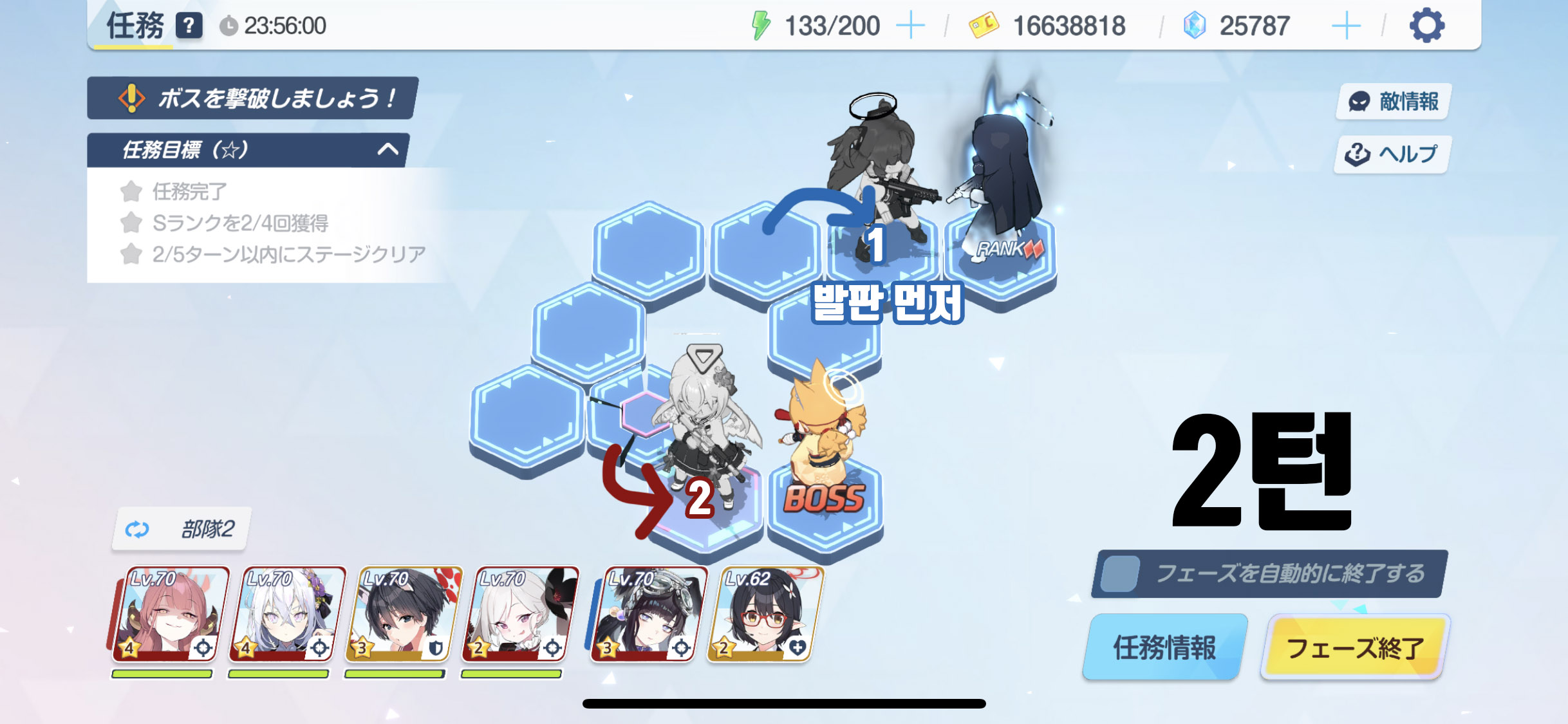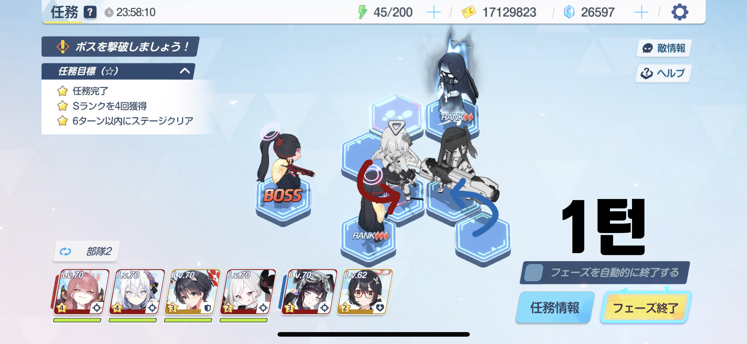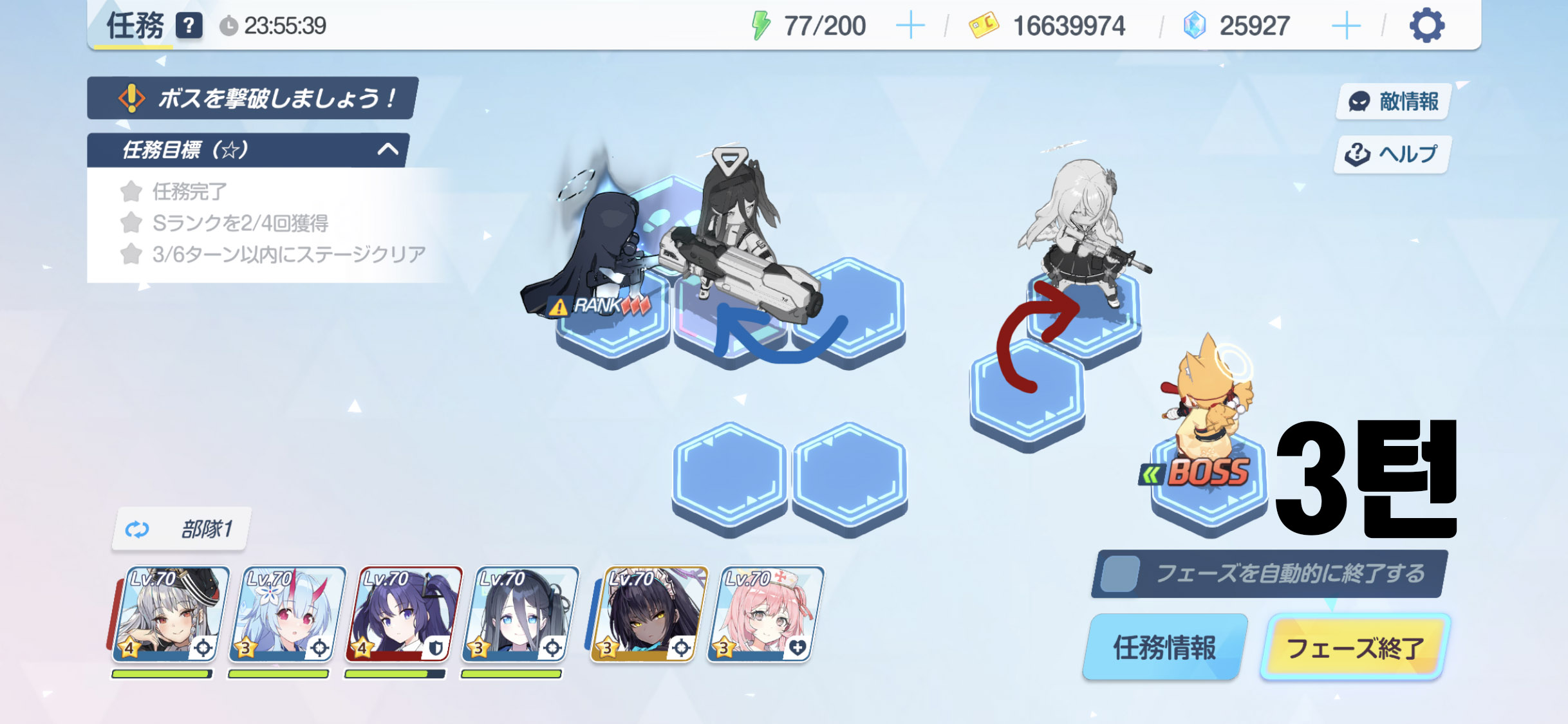 임무완료 / 전투 S랭크 6회 / 6턴 안에 스테이지 클리어