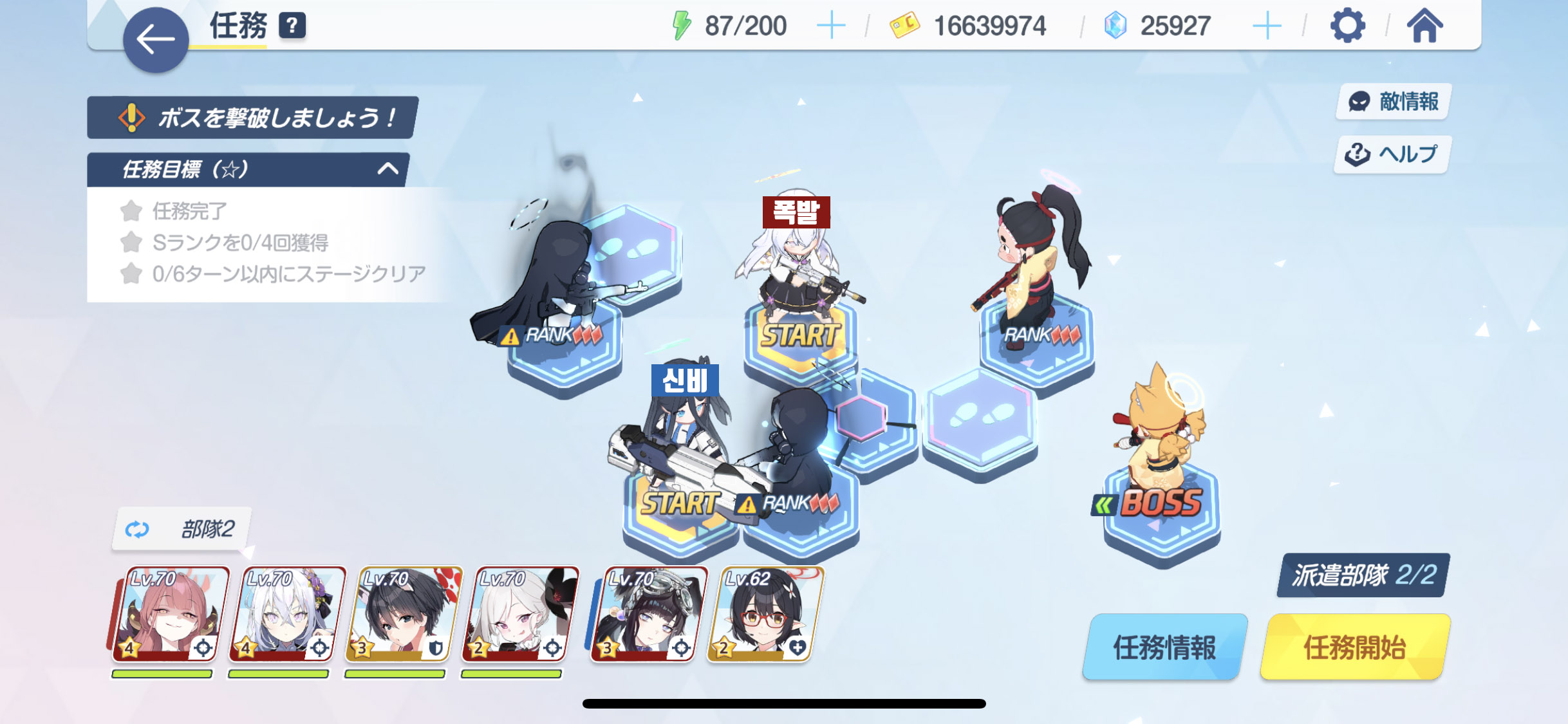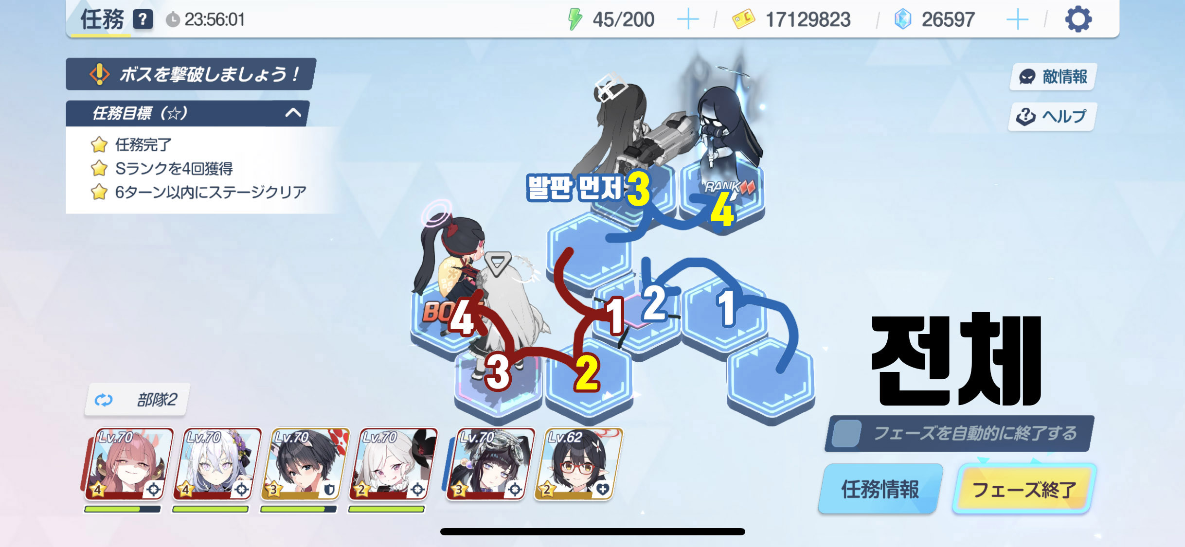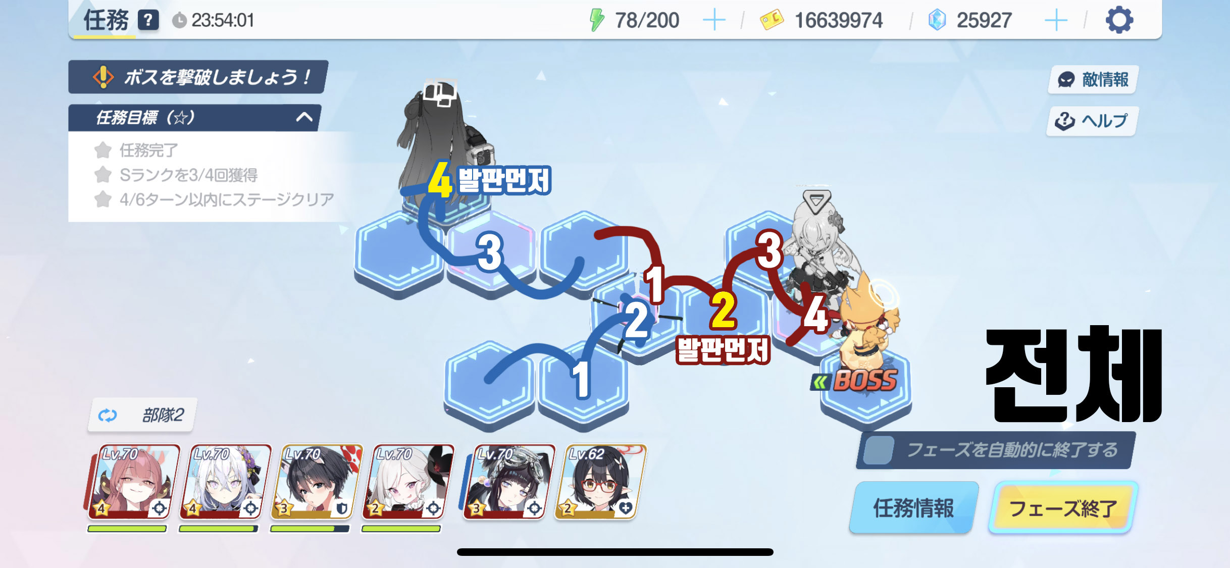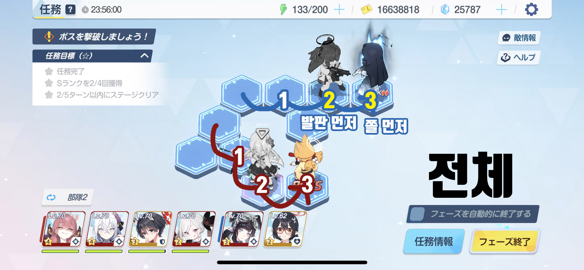 임무완료 / 전투 S랭크 6회 / 6턴 안에 스테이지 클리어