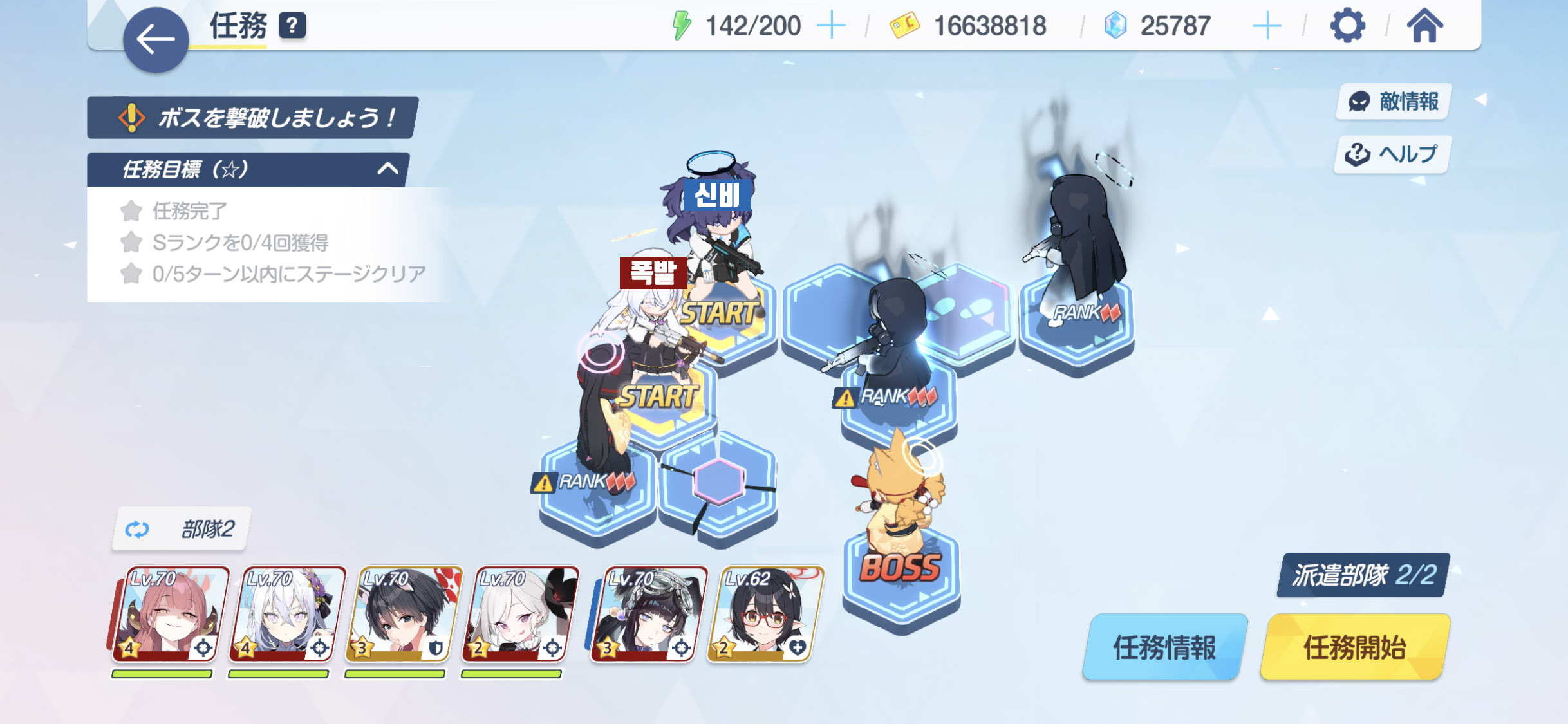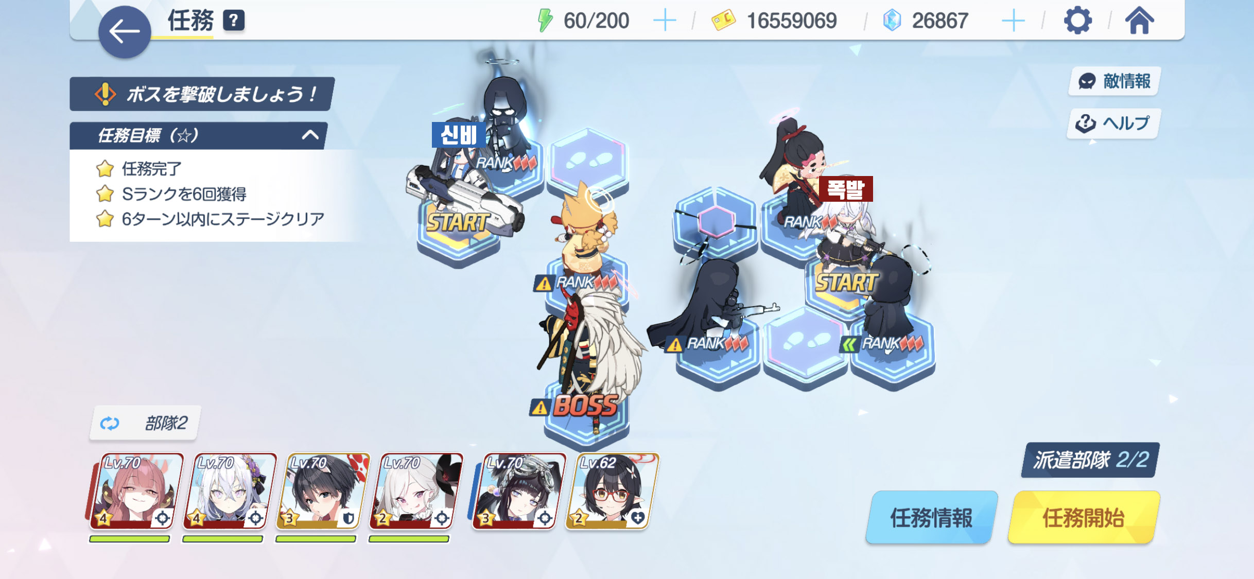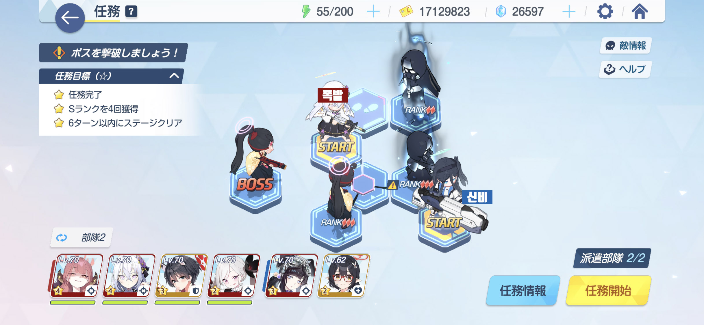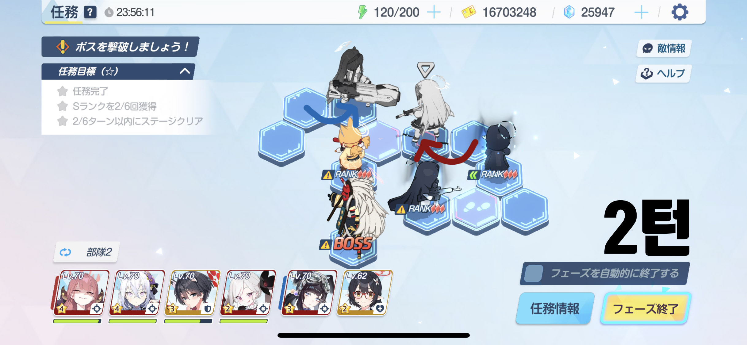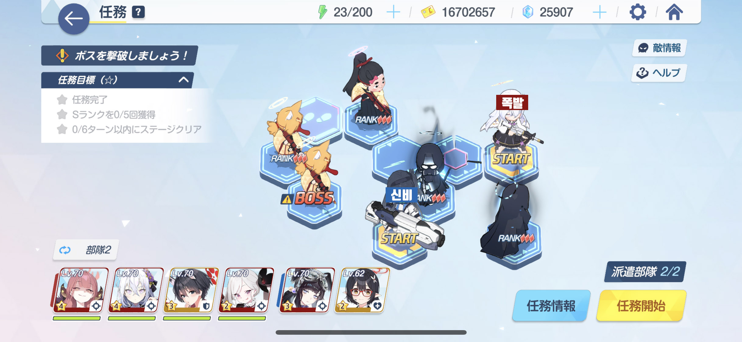 임무완료 / 전투 S랭크 6회 / 6턴 안에 스테이지 클리어