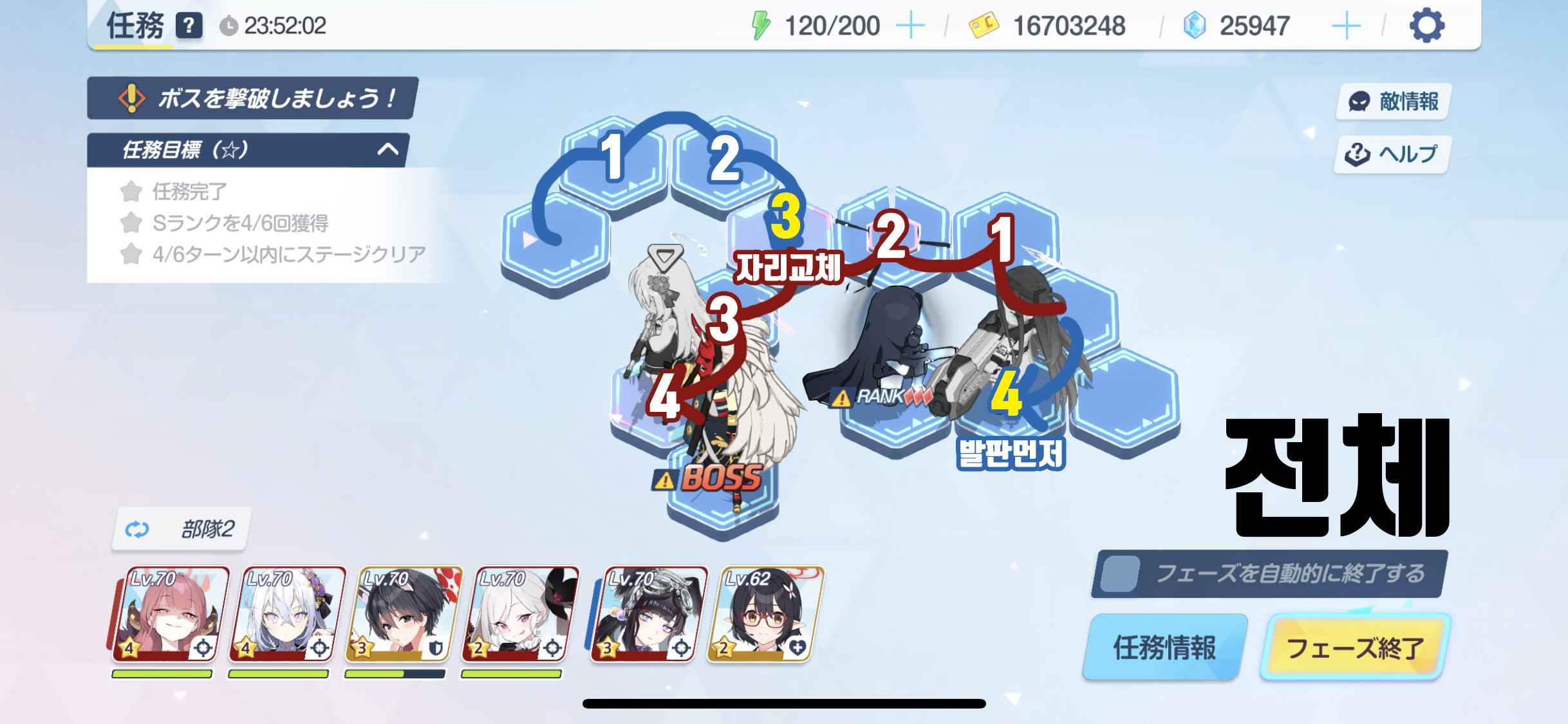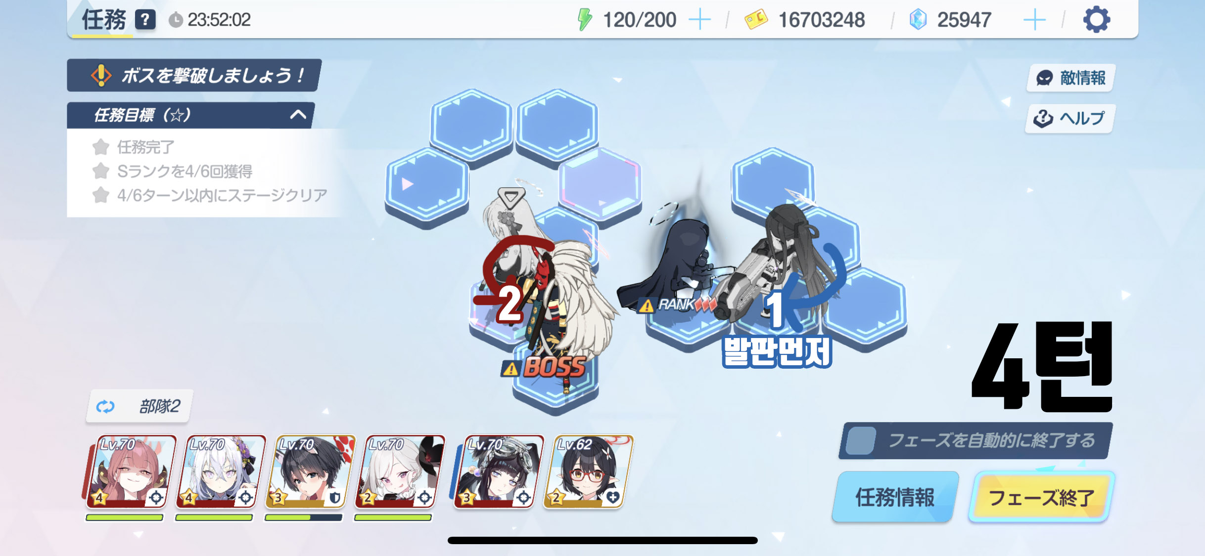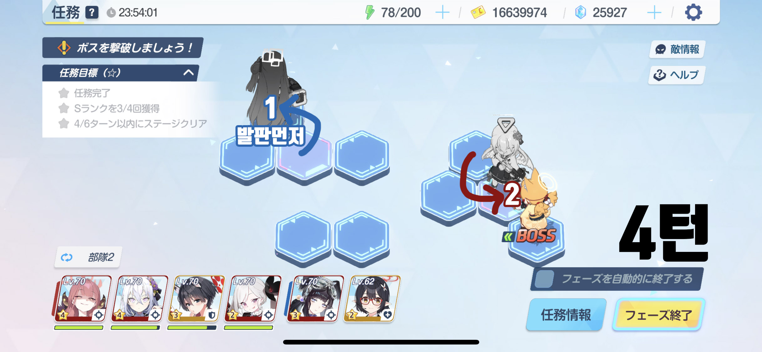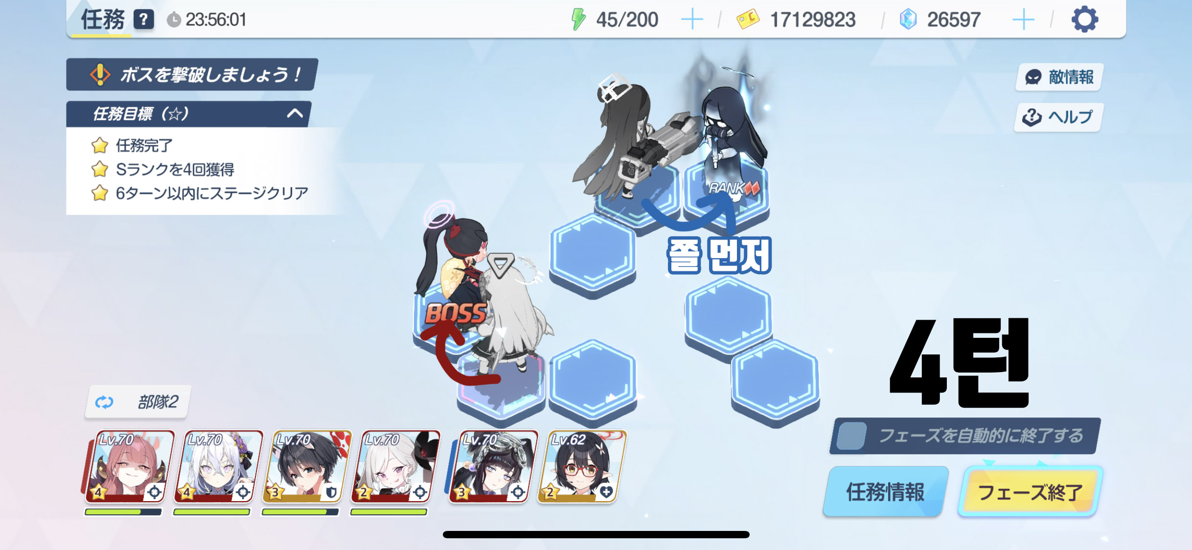 임무완료 / 전투 S랭크 4회 / 6턴 안에 스테이지 클리어