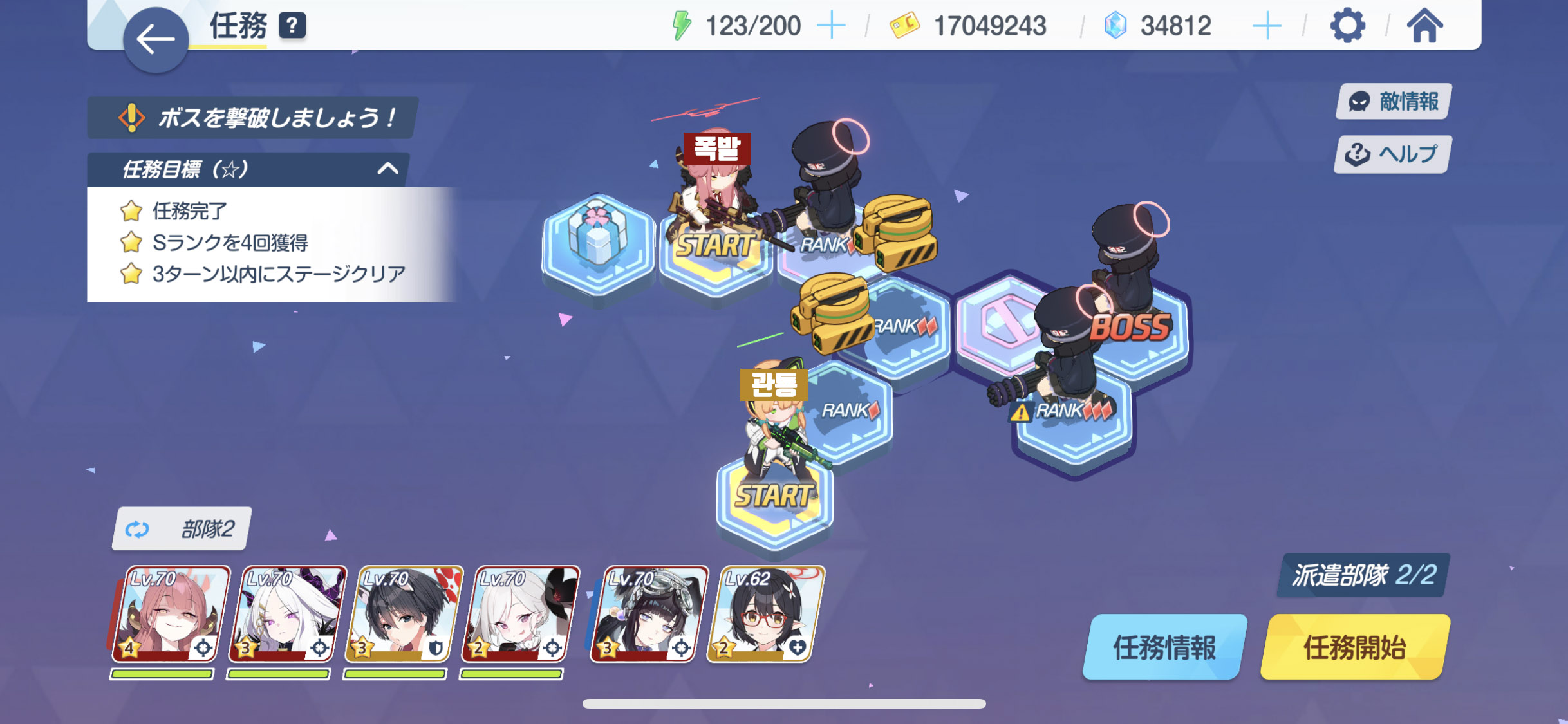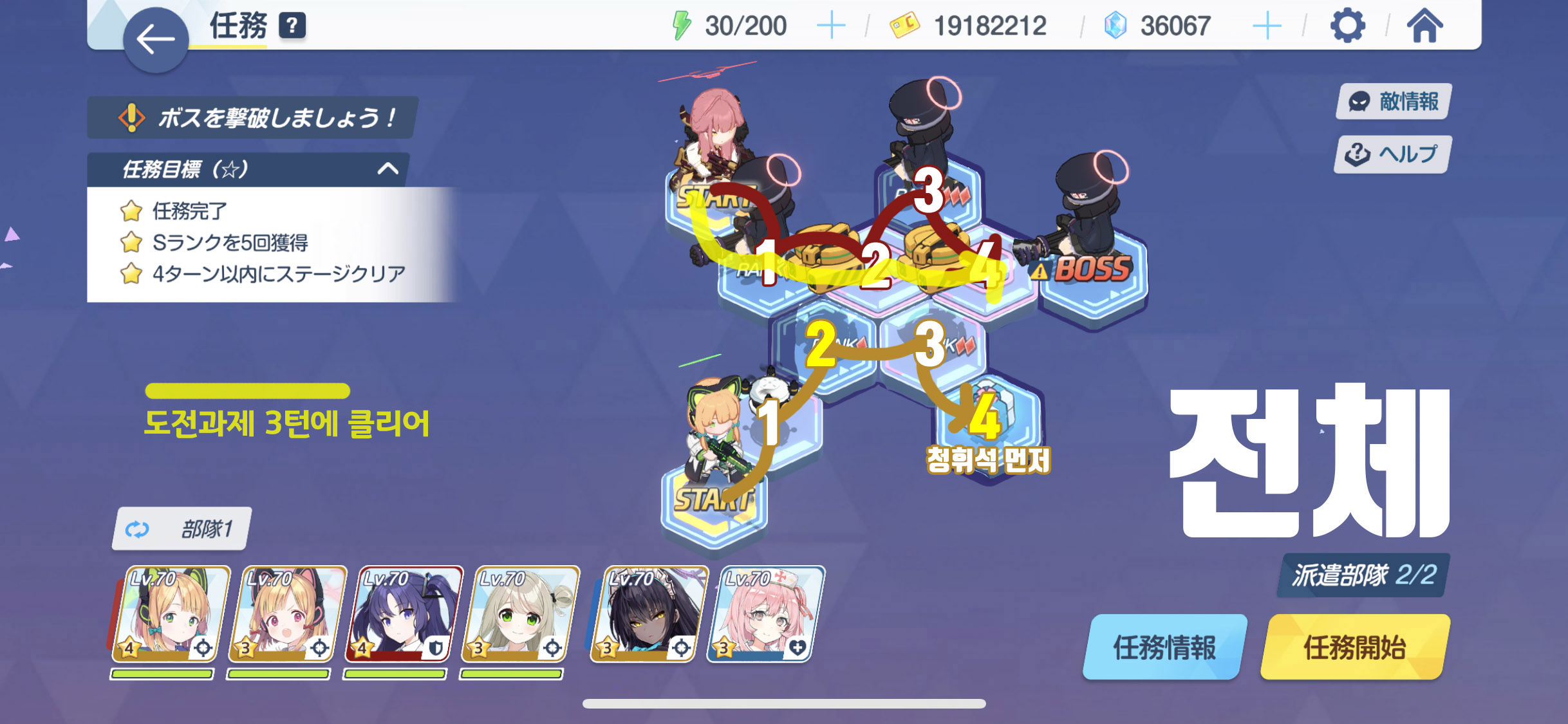 임무완료 / 전투 S랭크 4회 / 3턴 안에 스테이지 클리어