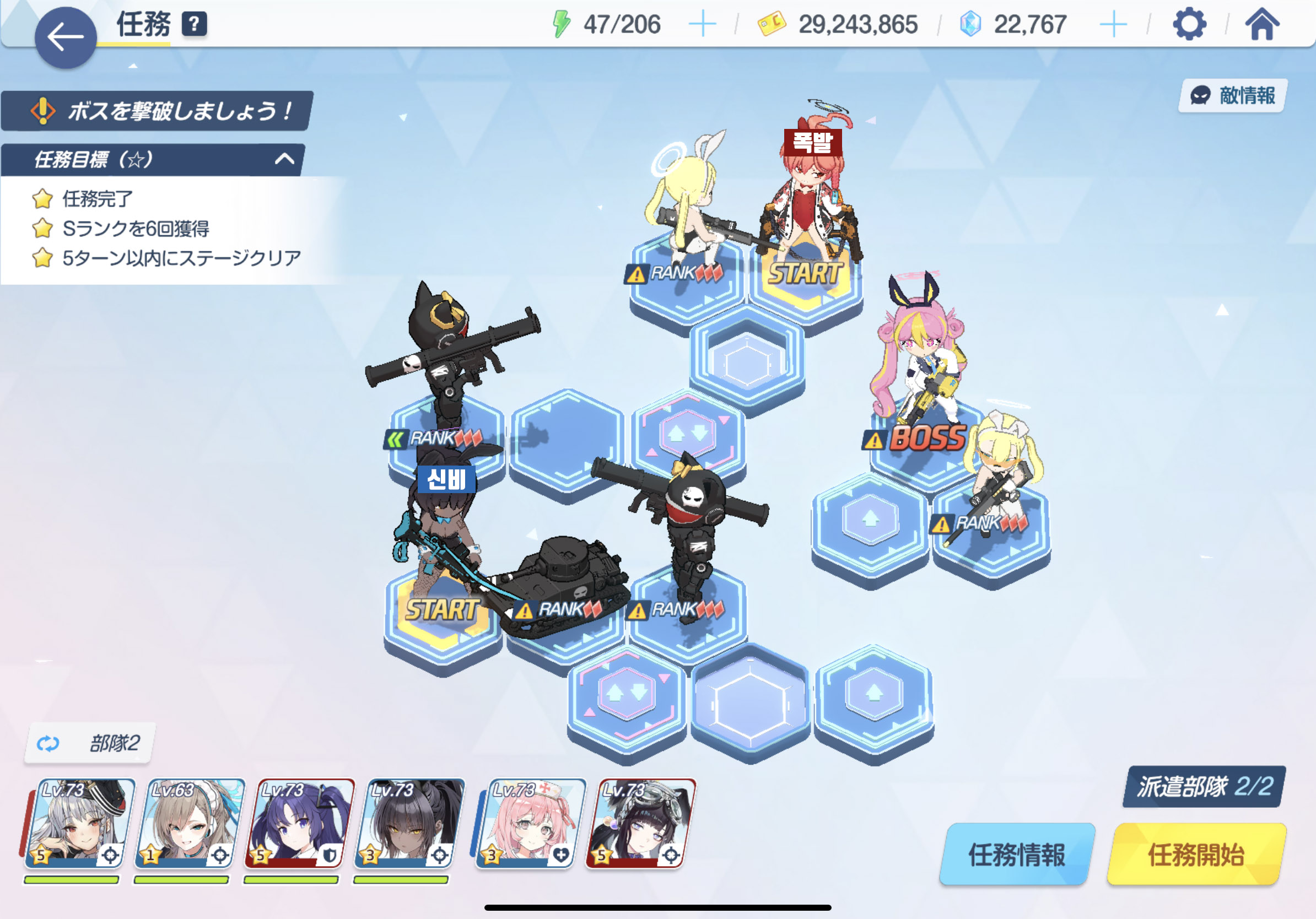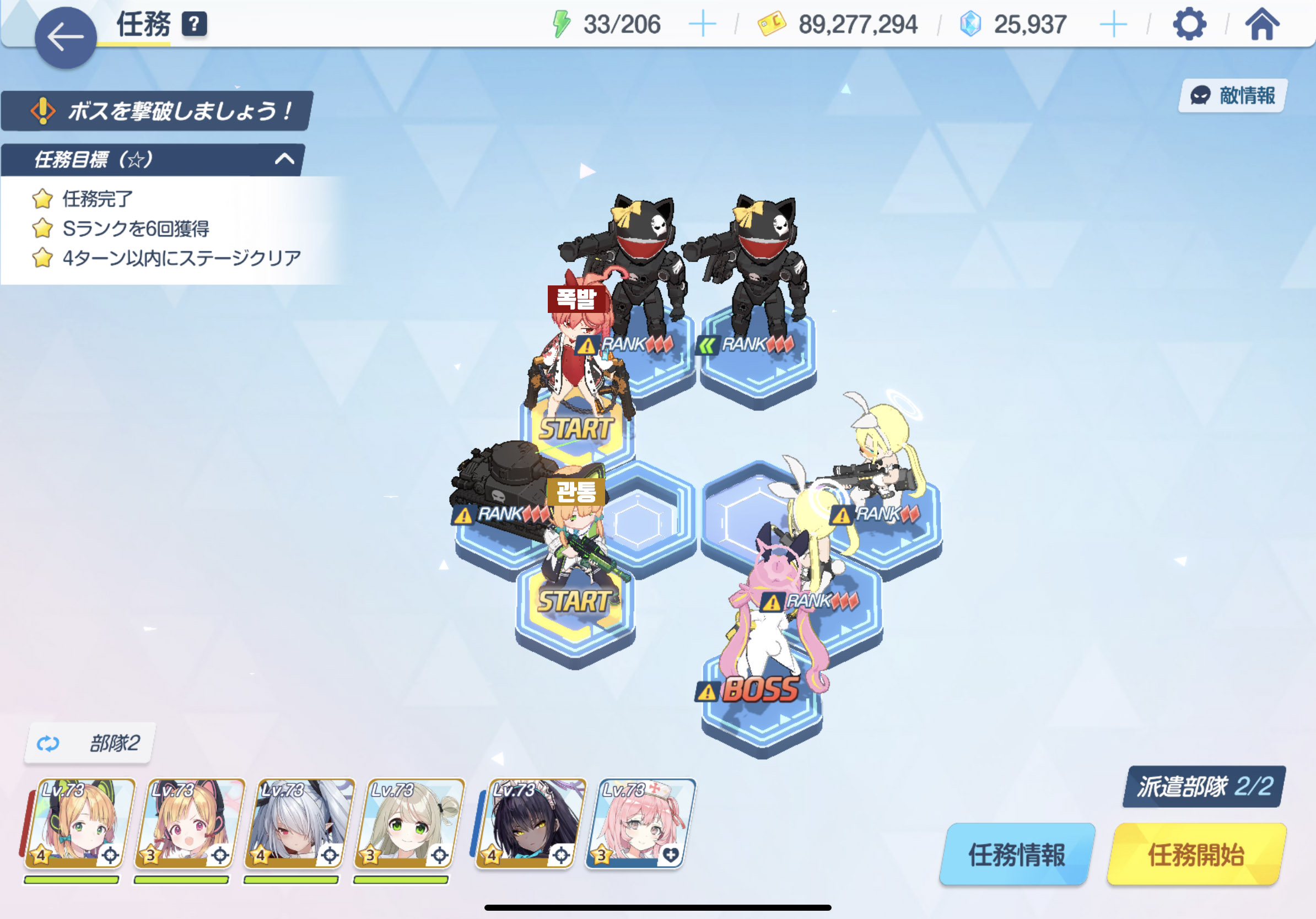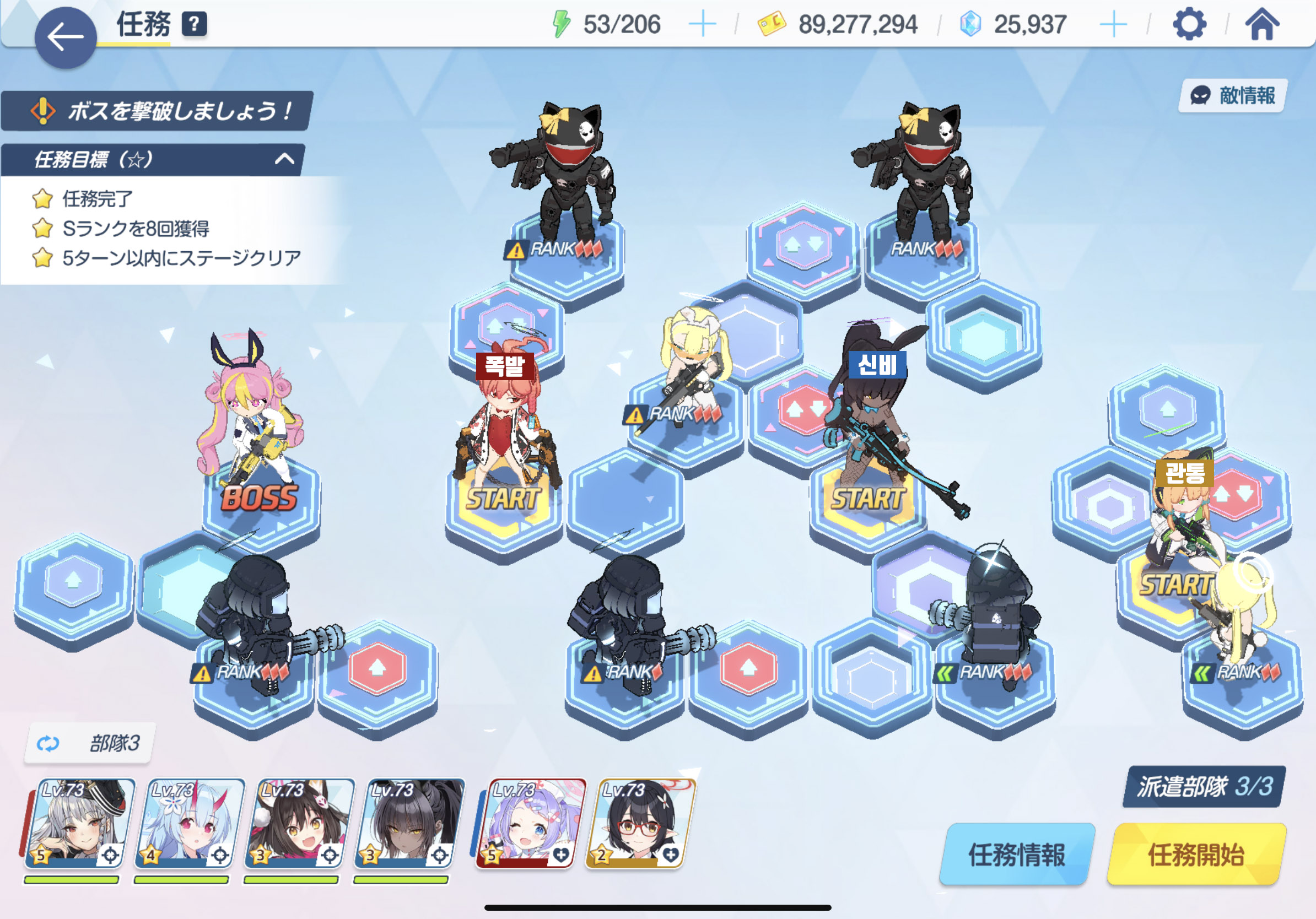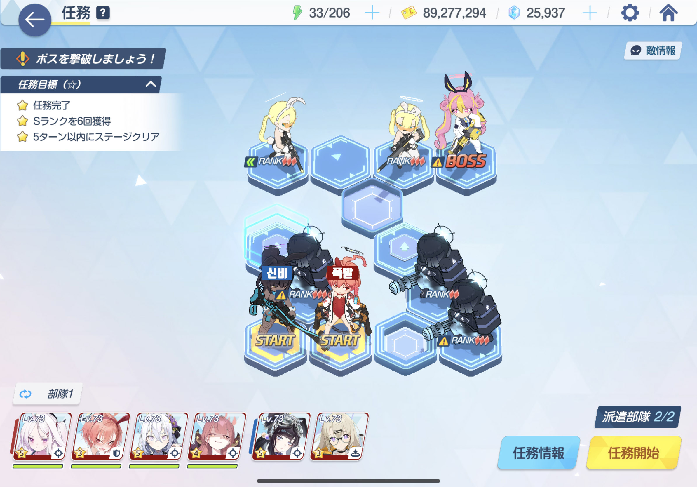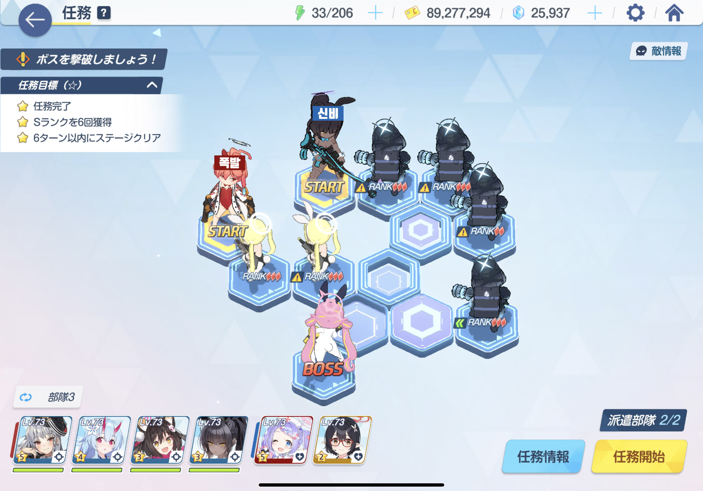 임무완료 / 전투 S랭크 6회 / 5턴 내에 스테이지 클리어