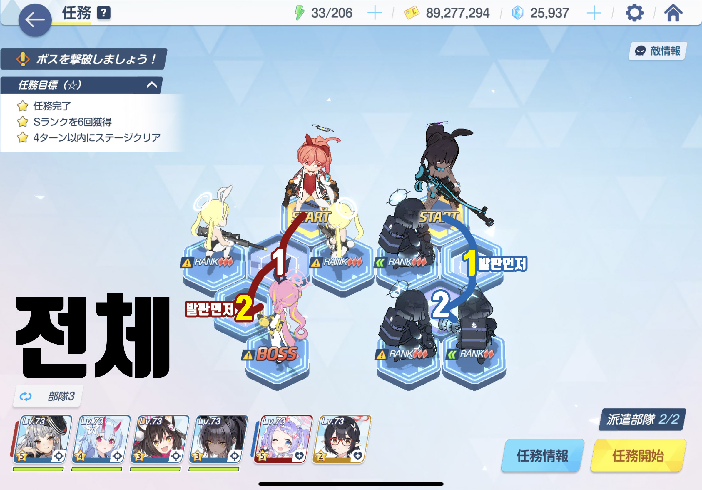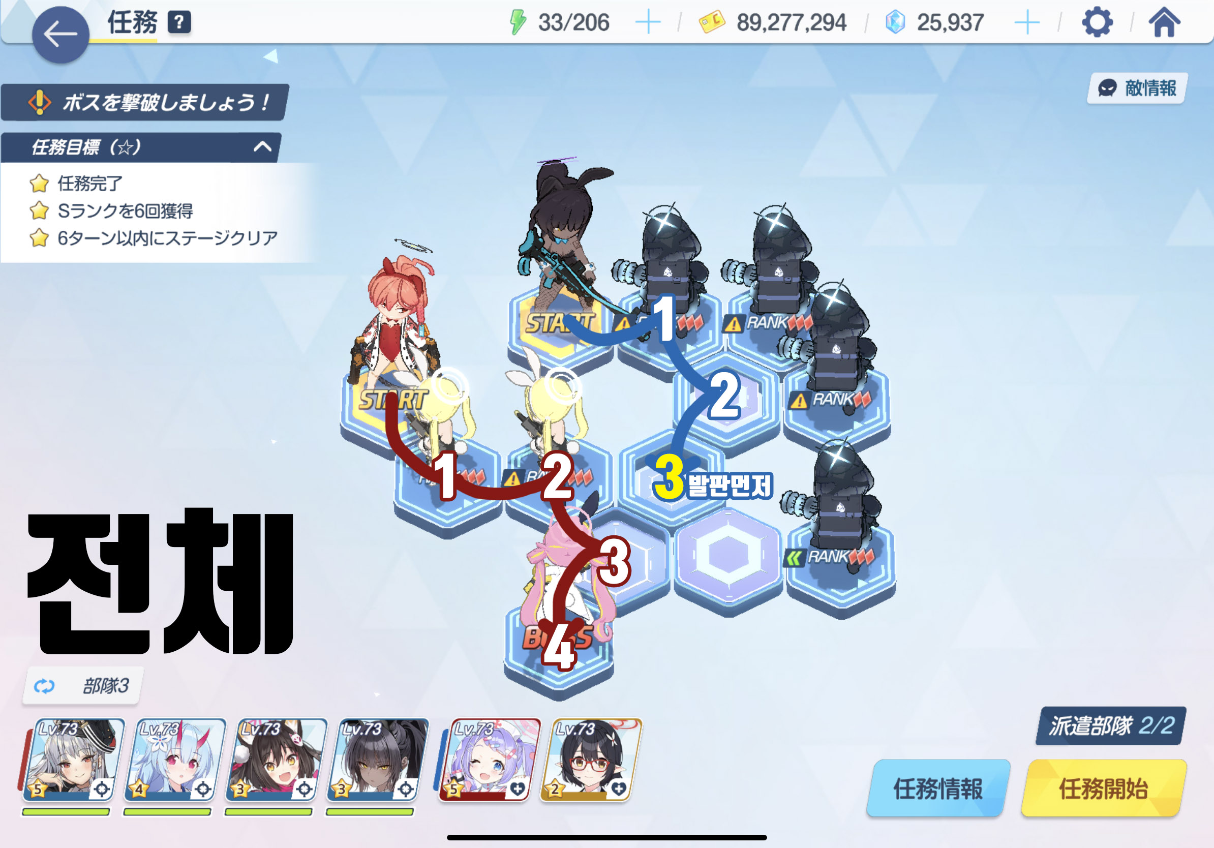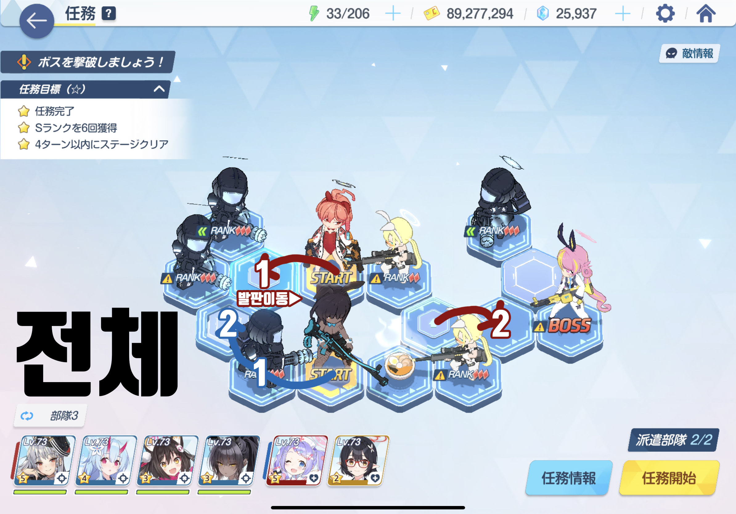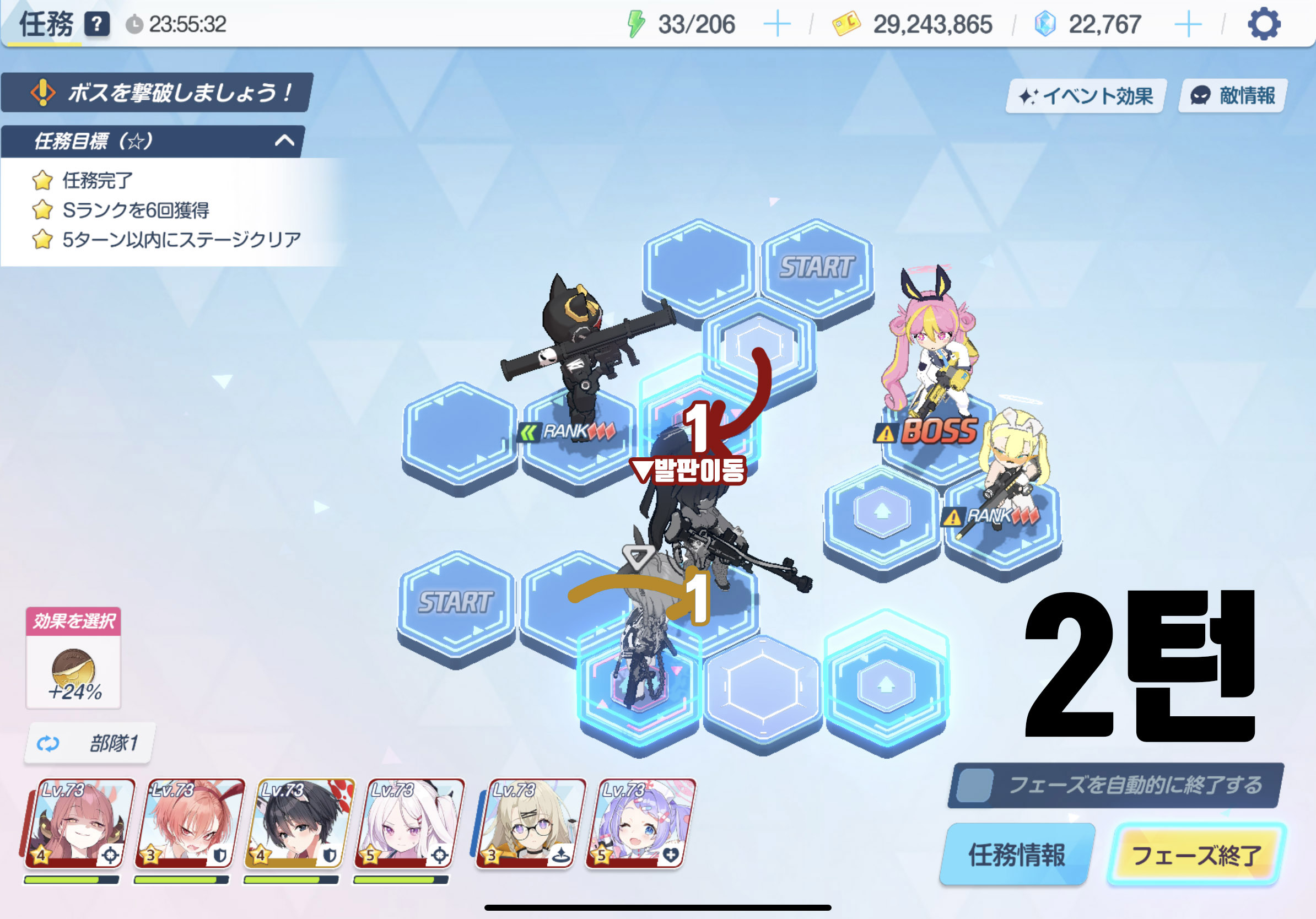 임무완료 / 전투 S랭크 6회 / 4턴 내에 스테이지 클리어