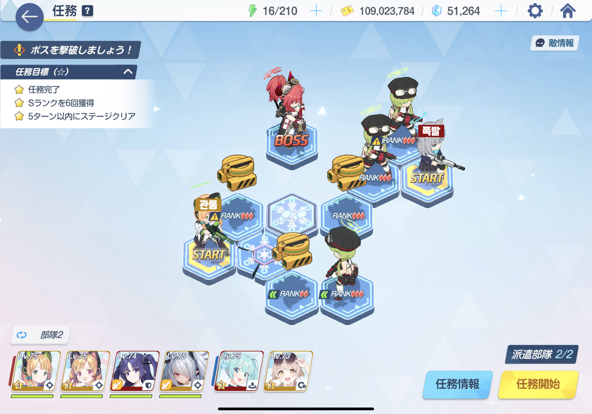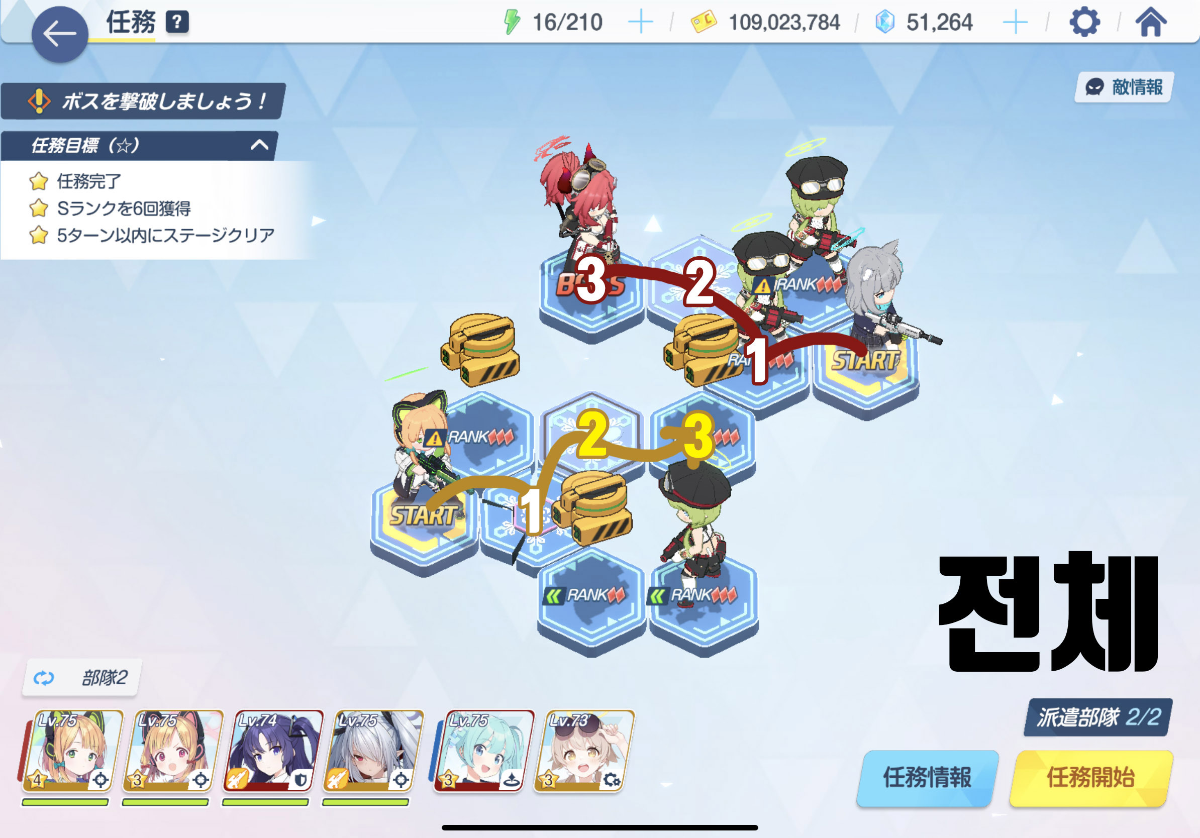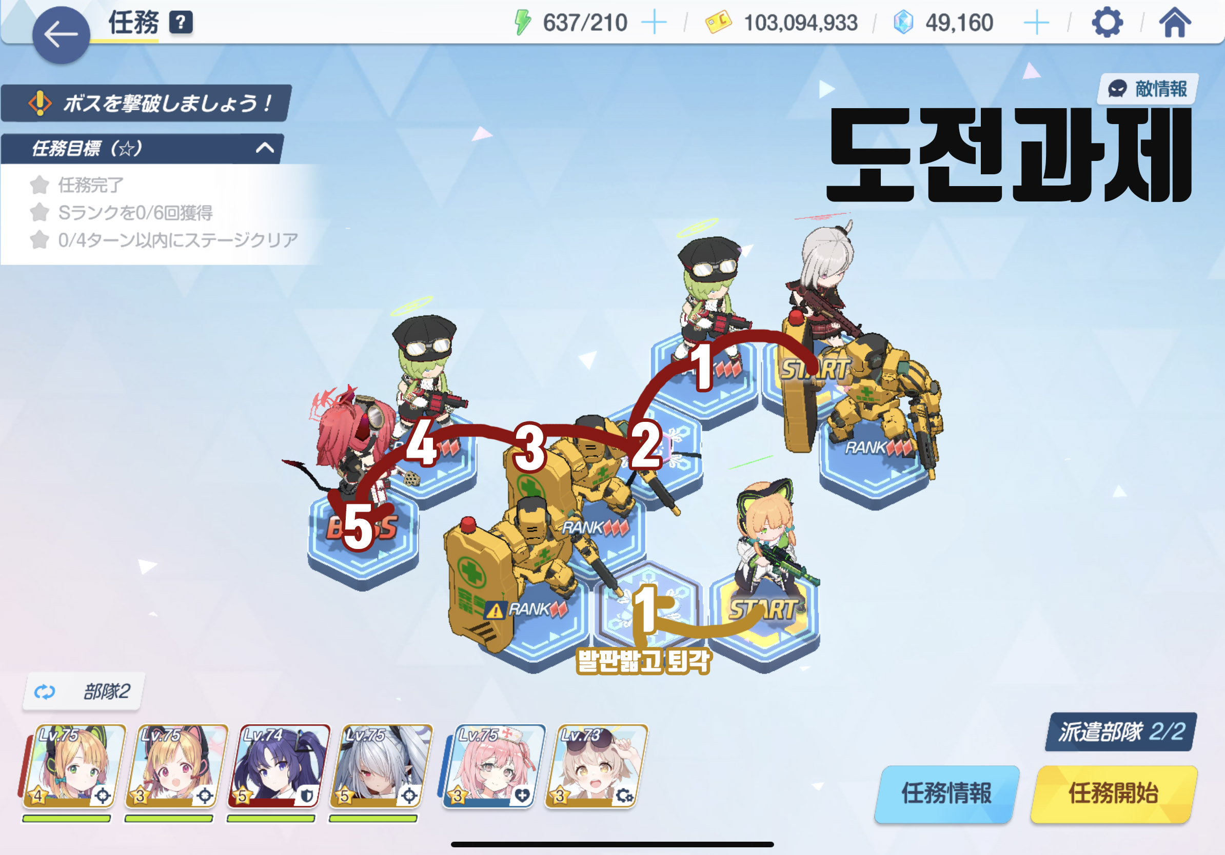임무완료 / 전투 S랭크 6회 / 5턴 내에 스테이지 클리어