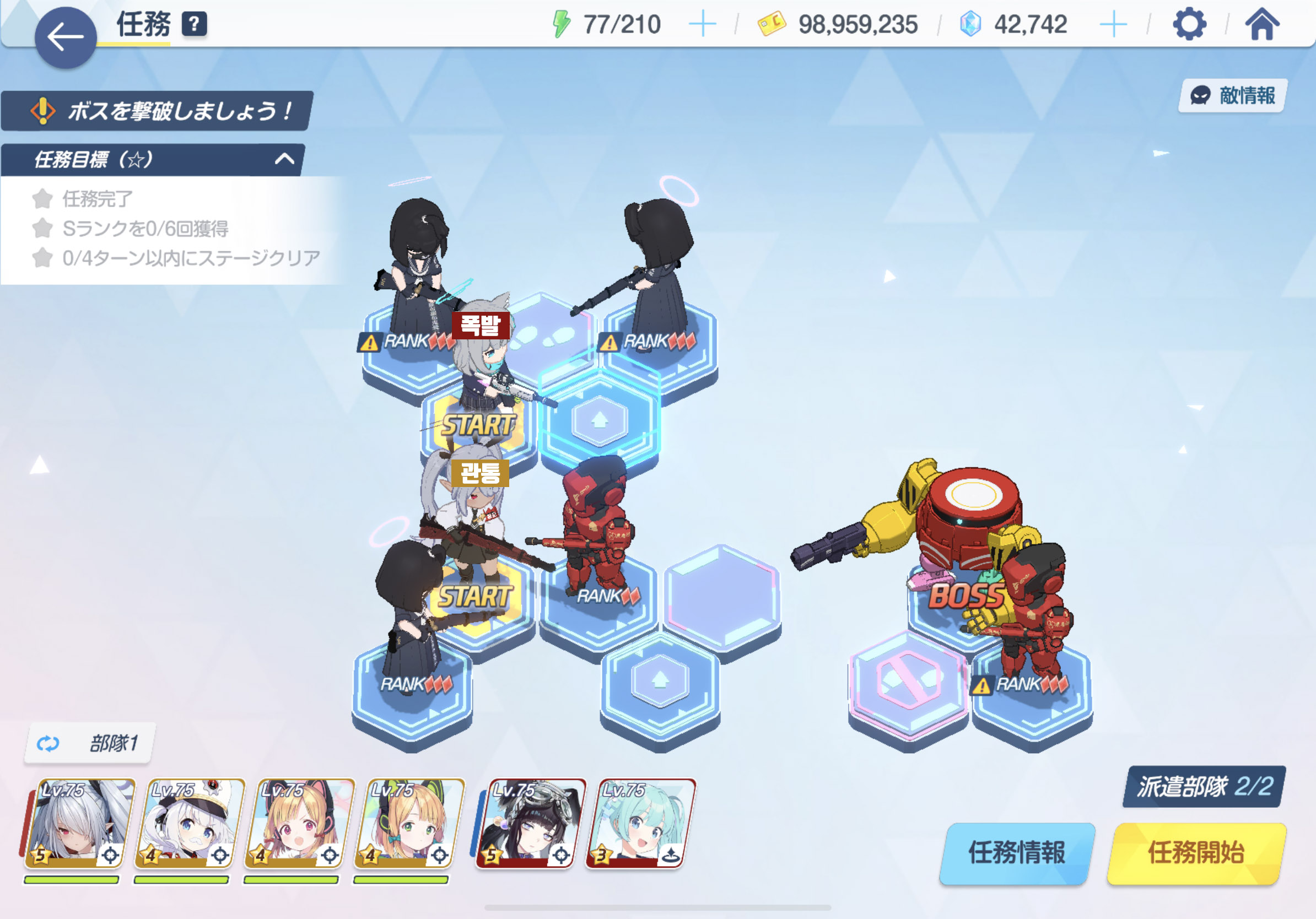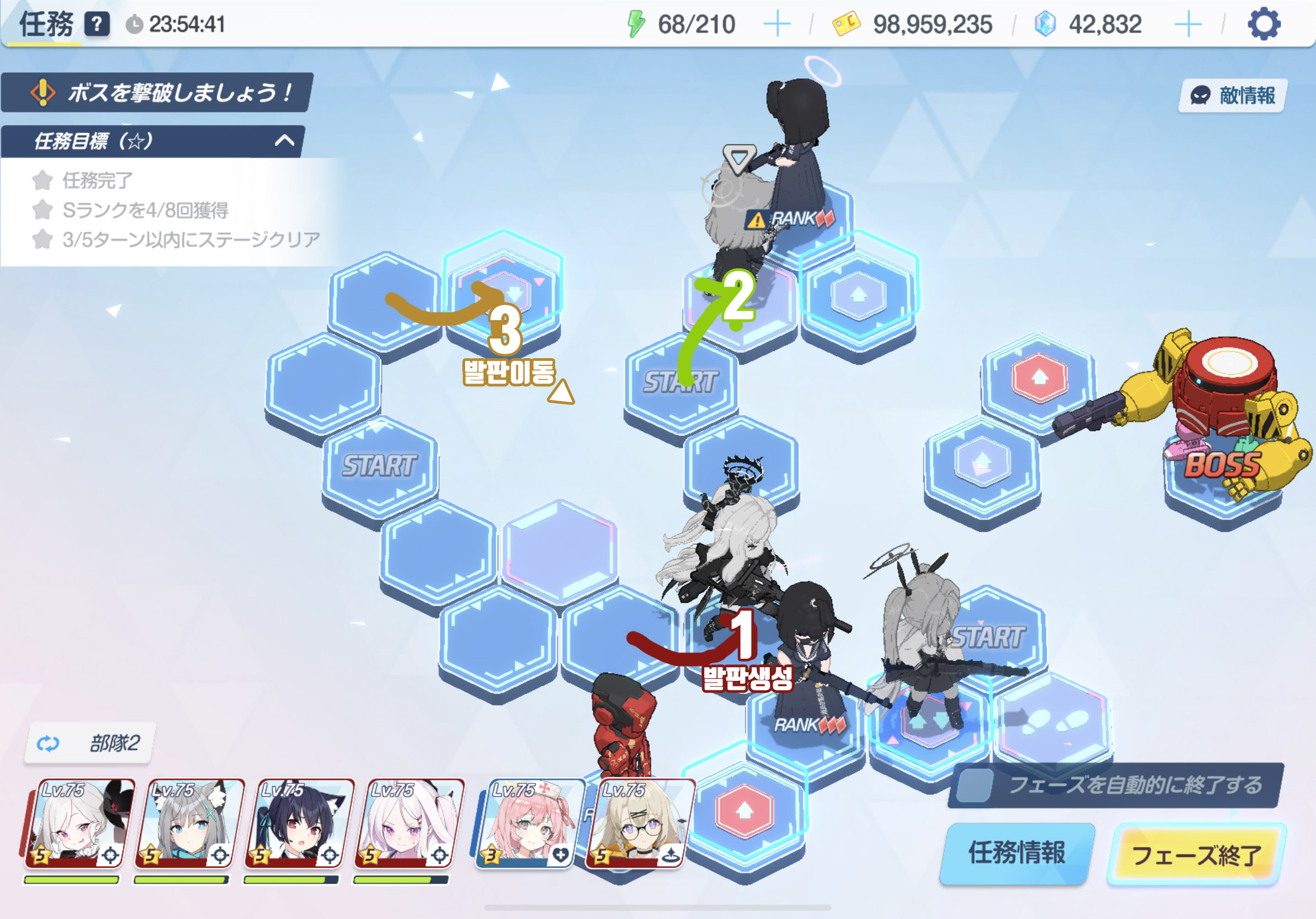 임무완료 / 전투 S랭크 6회 / 4턴 내에 스테이지 클리어