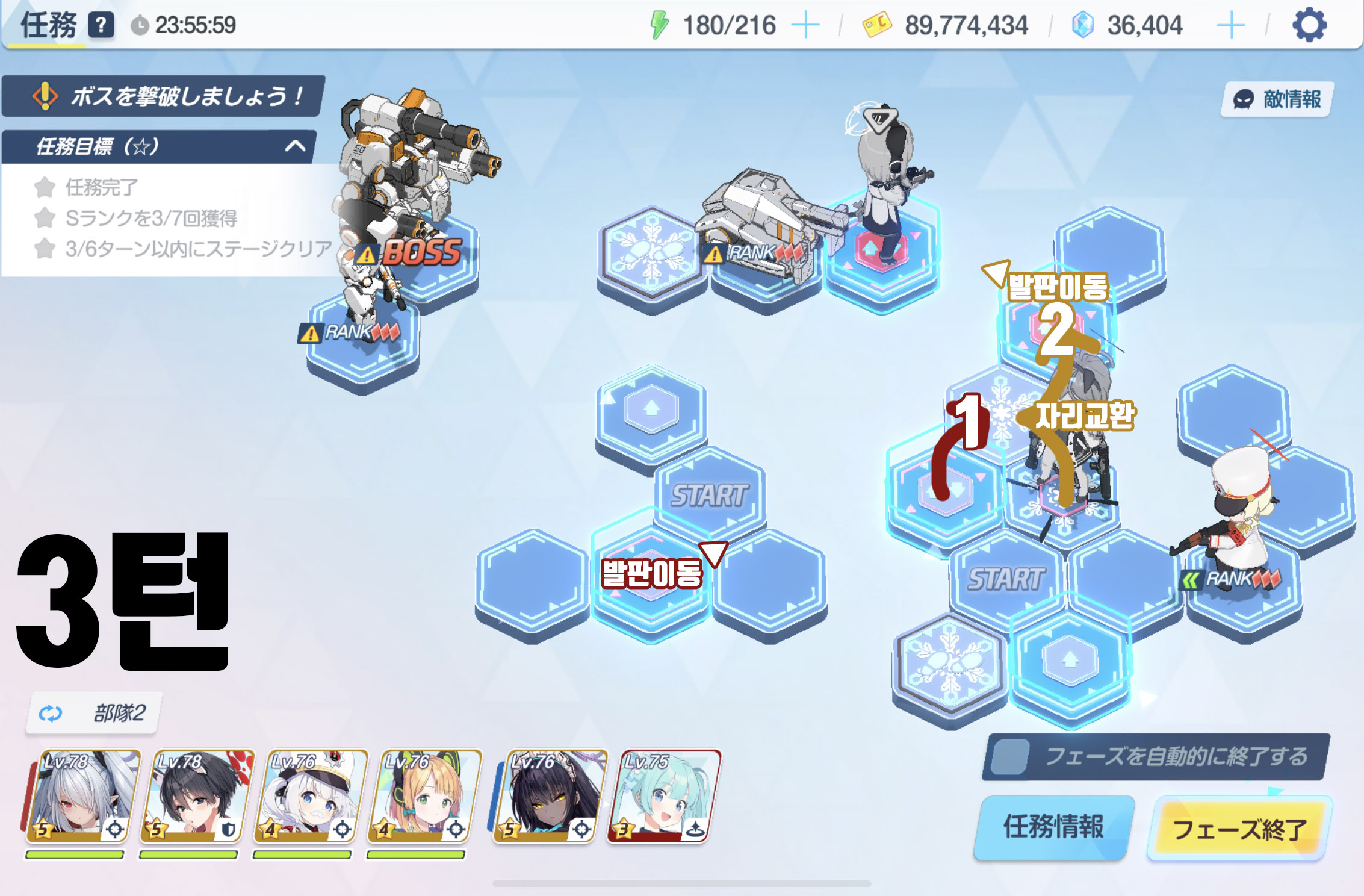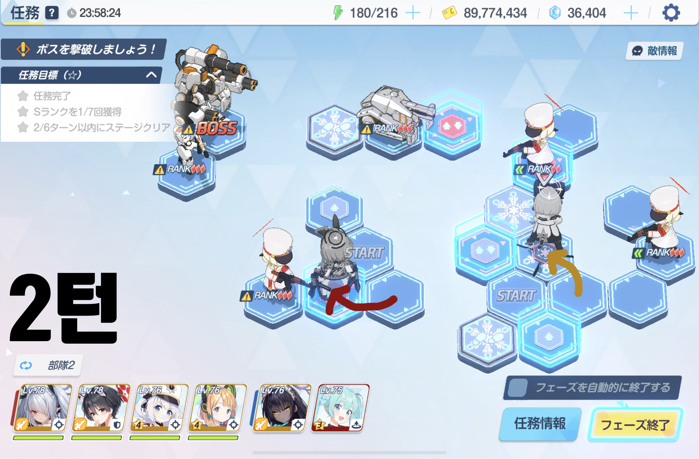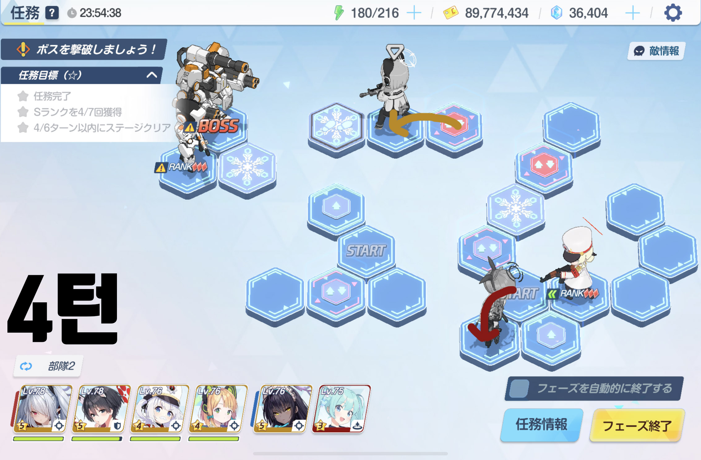 임무완료 / 전투 S랭크 7회 / 6턴 내에 스테이지 클리어