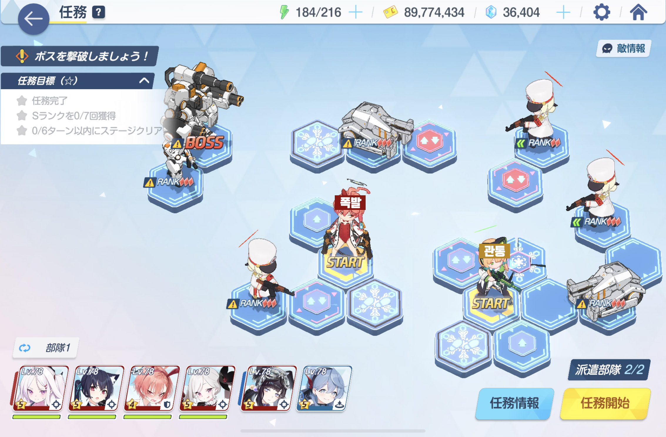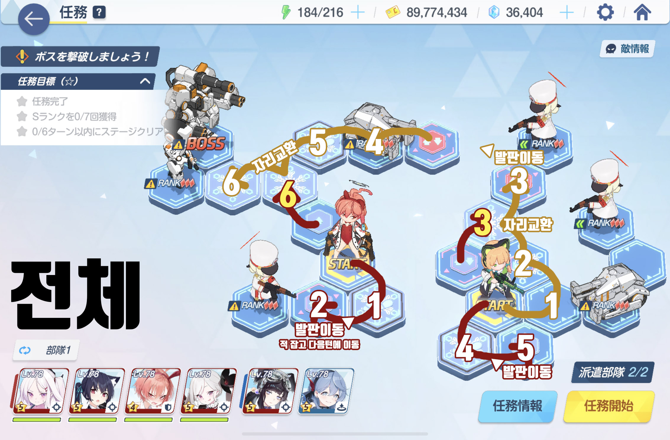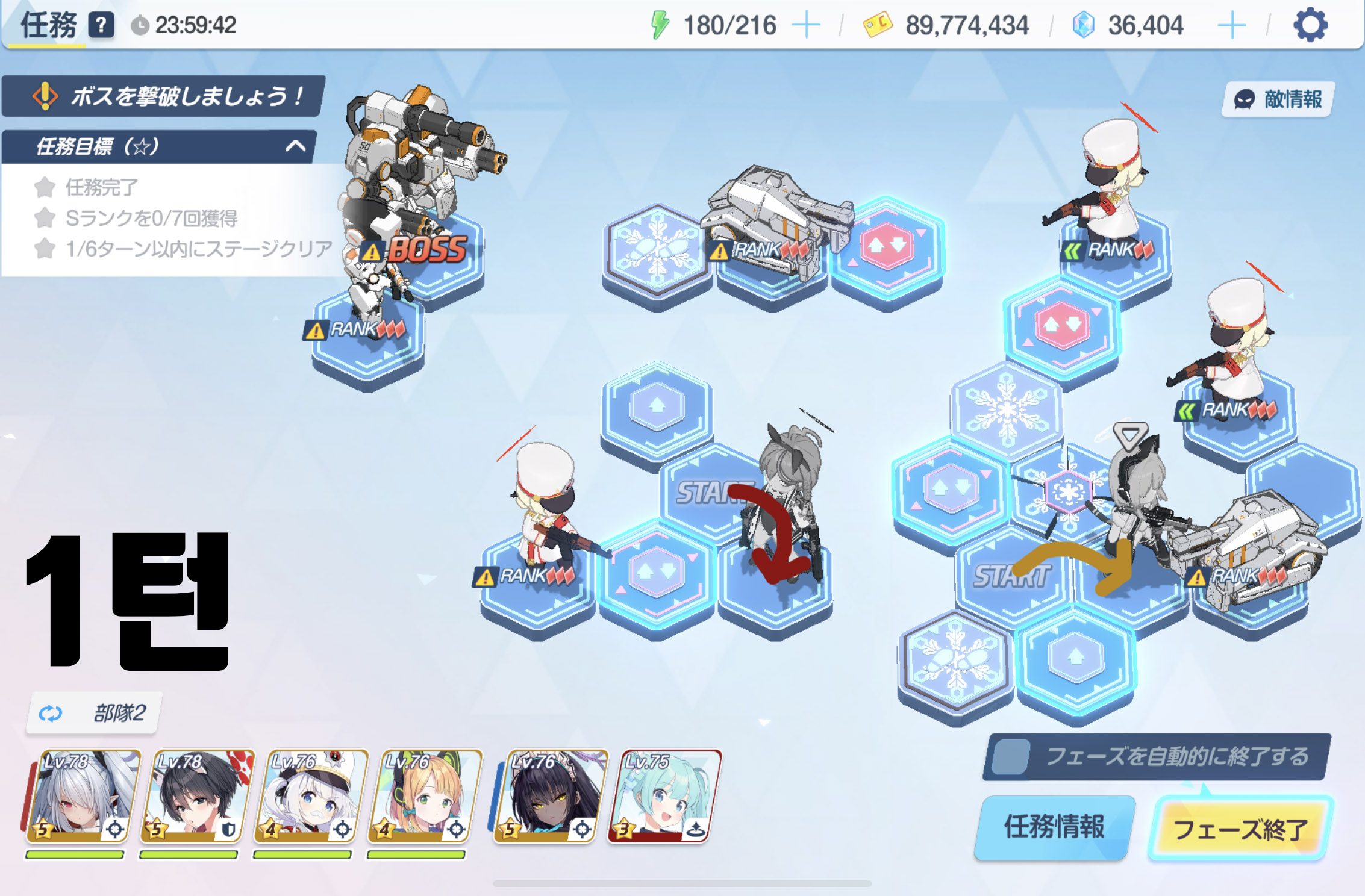 임무완료 / 전투 S랭크 7회 / 6턴 내에 스테이지 클리어