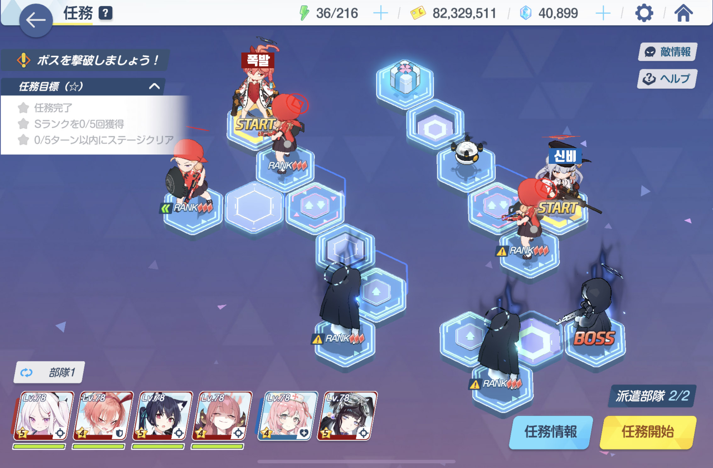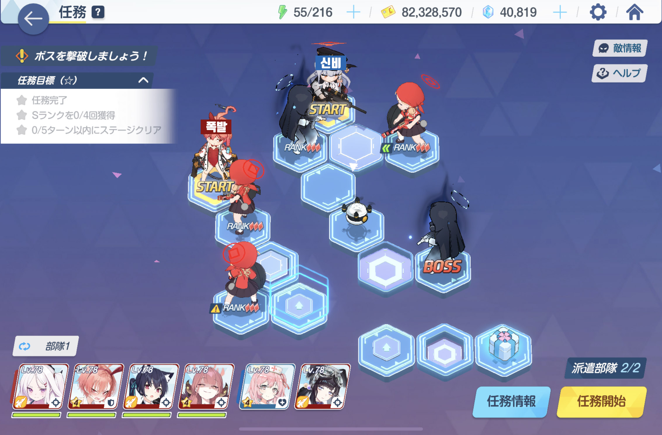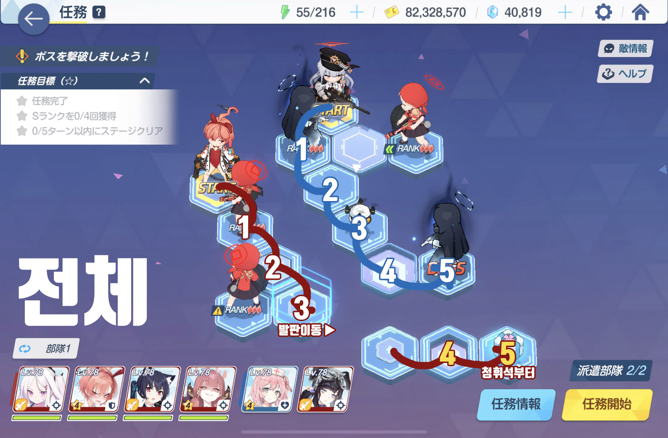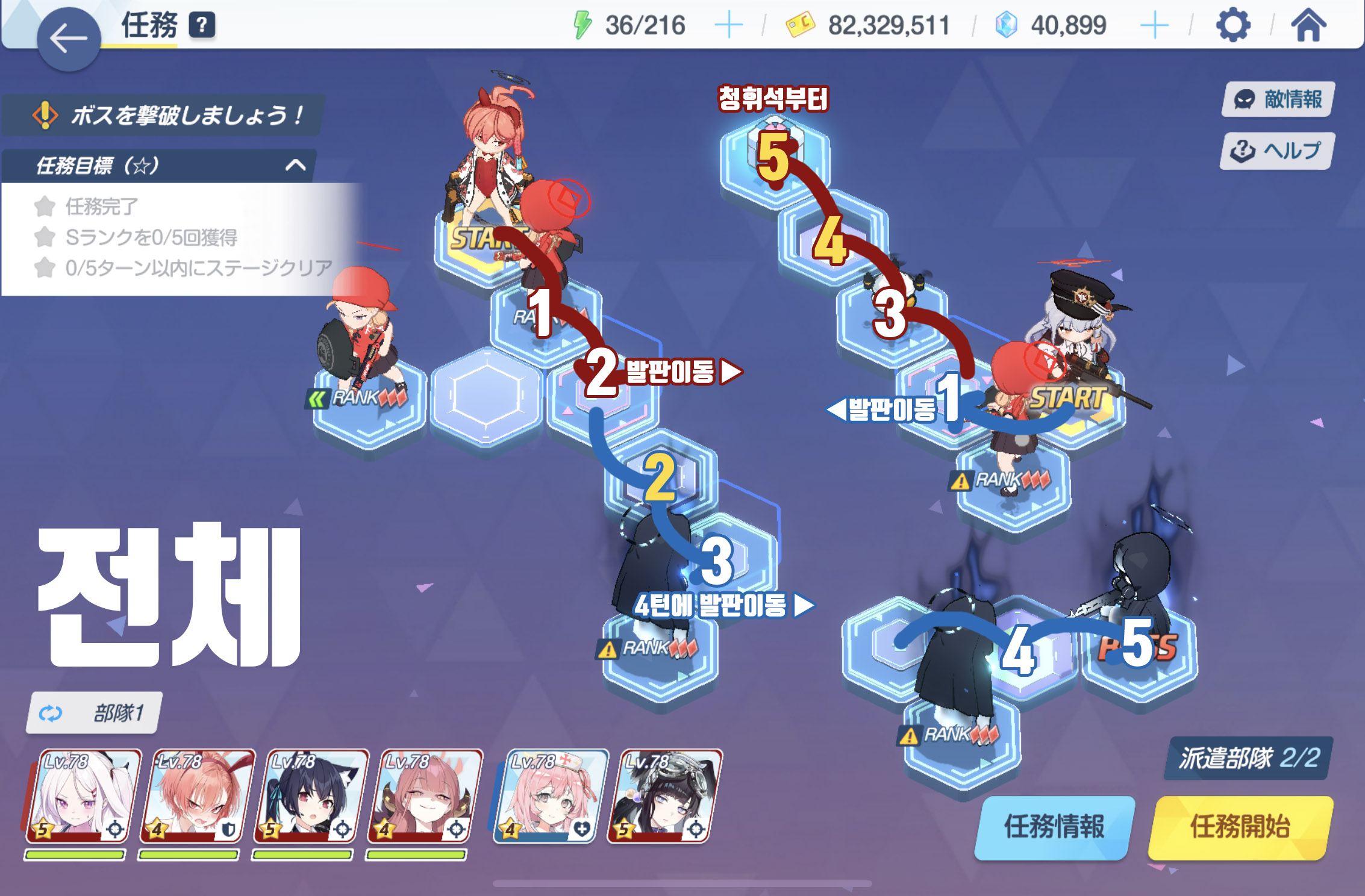 임무완료 / 전투 S랭크 7회 / 5턴 내에 스테이지 클리어