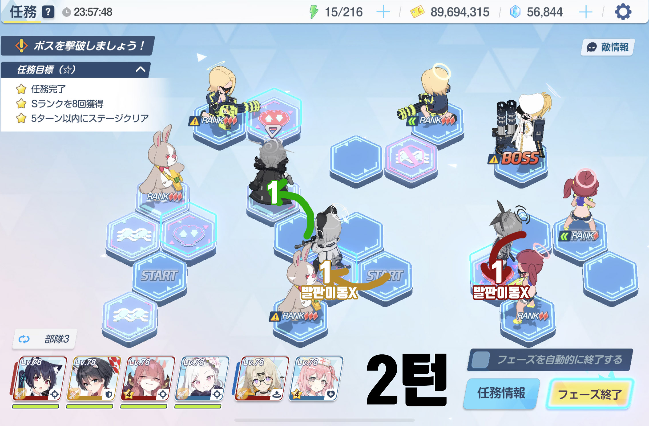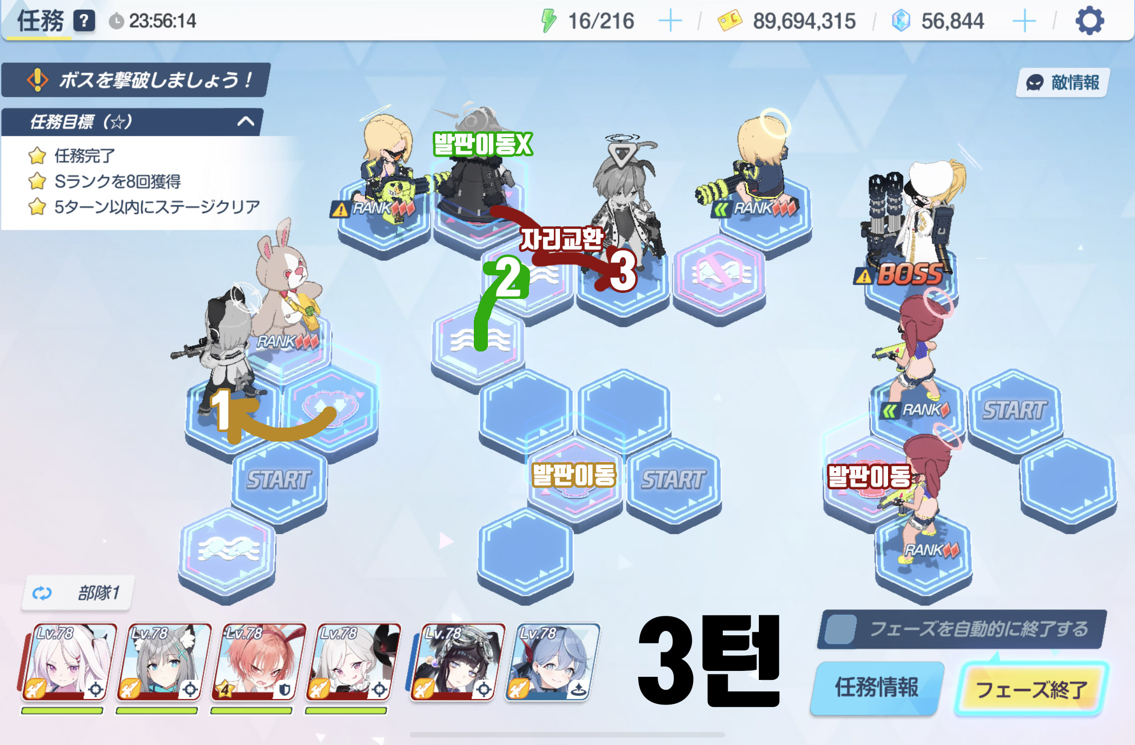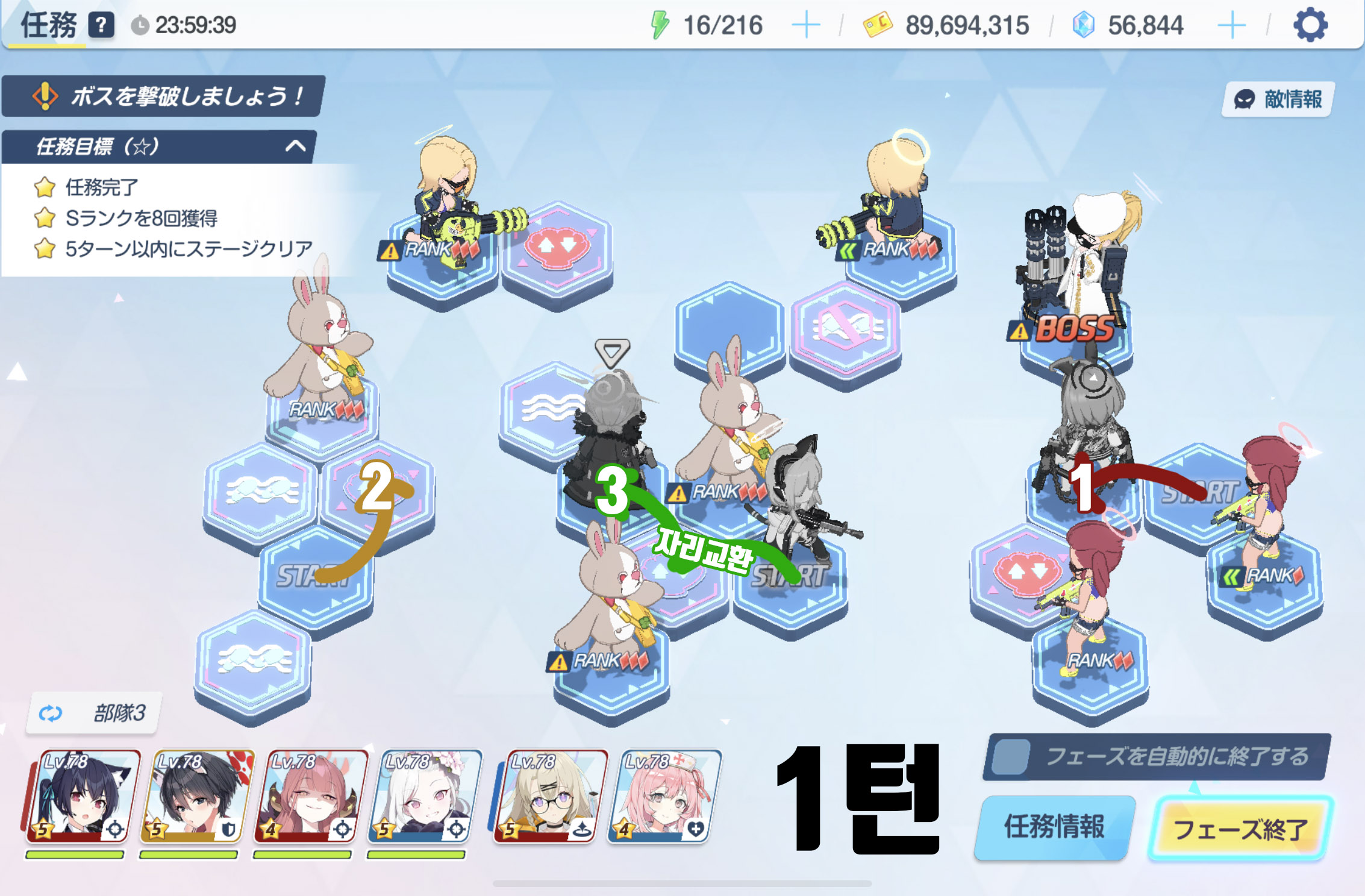 임무완료 / 전투 S랭크 7회 / 6턴 내에 스테이지 클리어