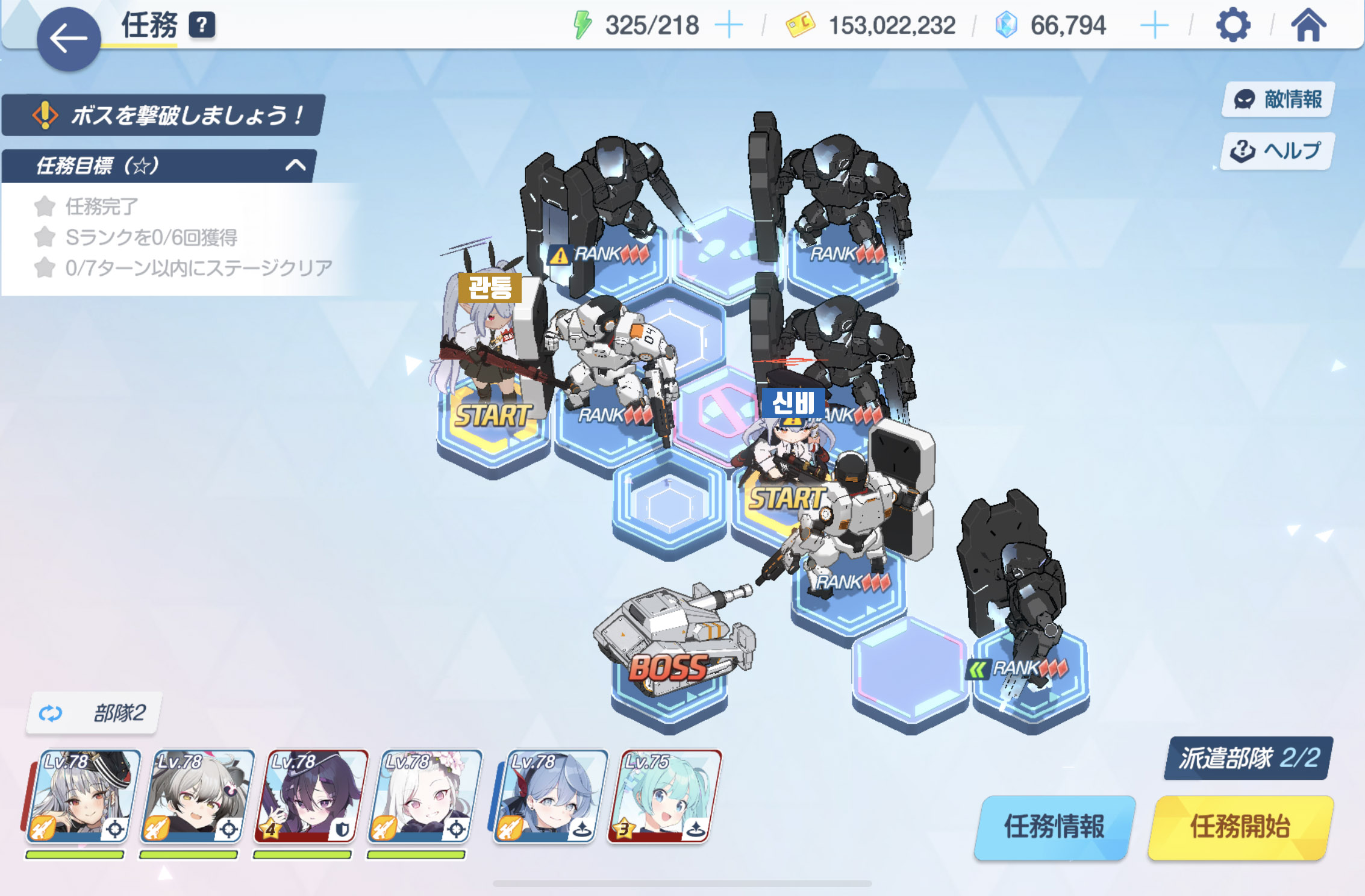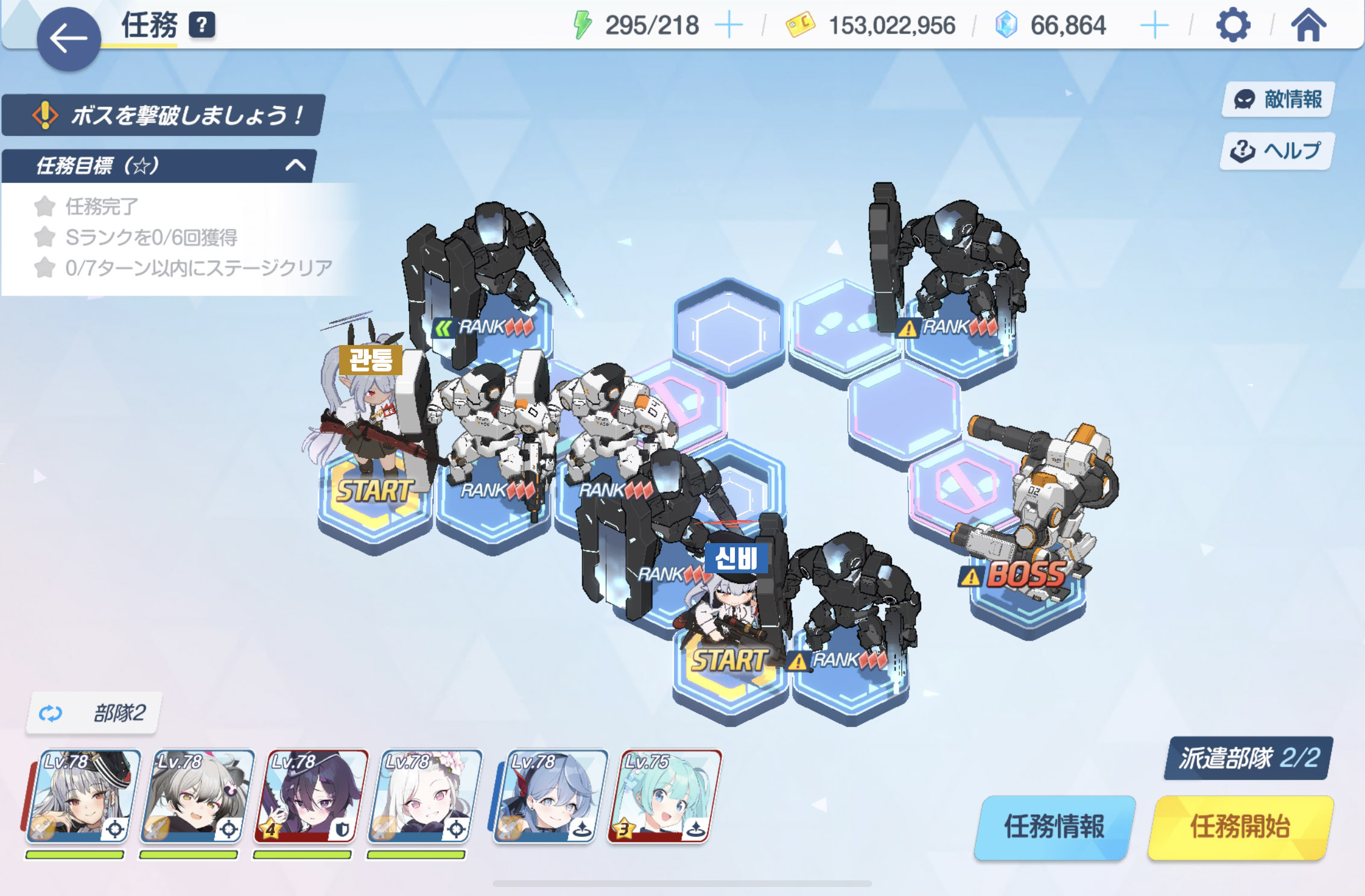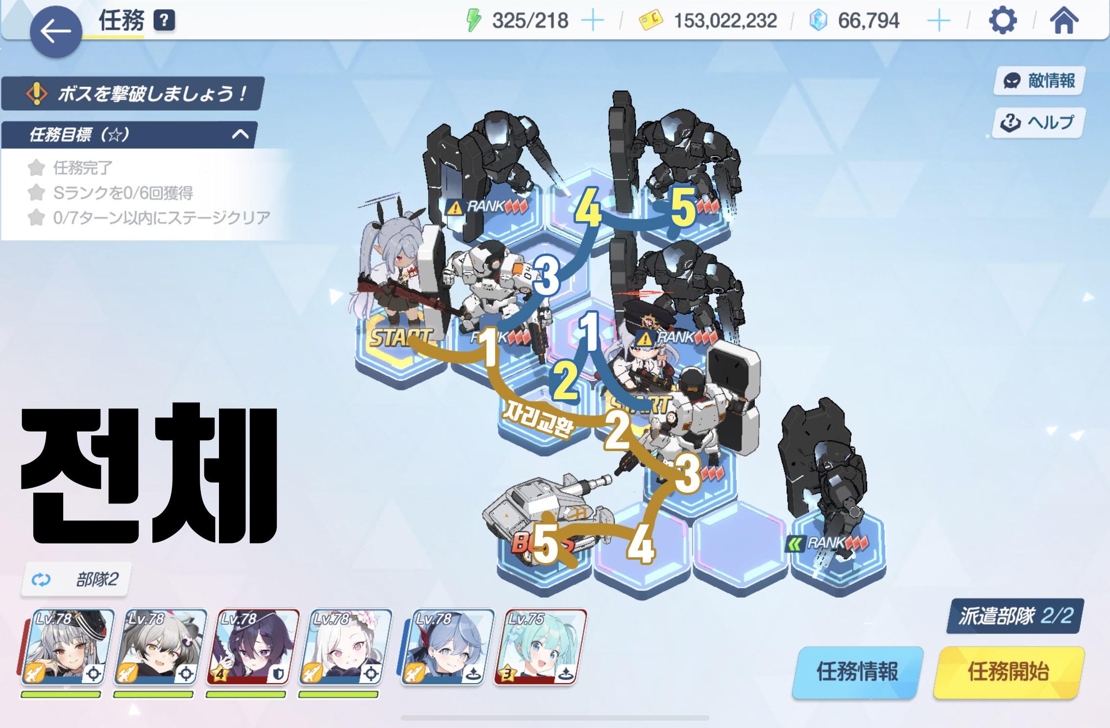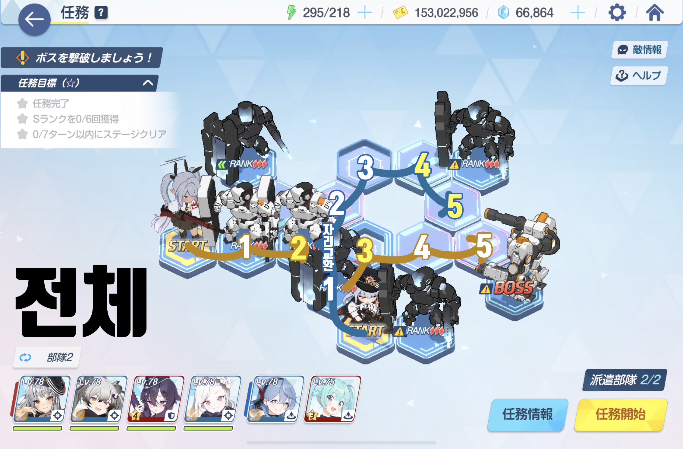 임무완료 / 전투 S랭크 6회 / 7턴 내에 스테이지 클리어