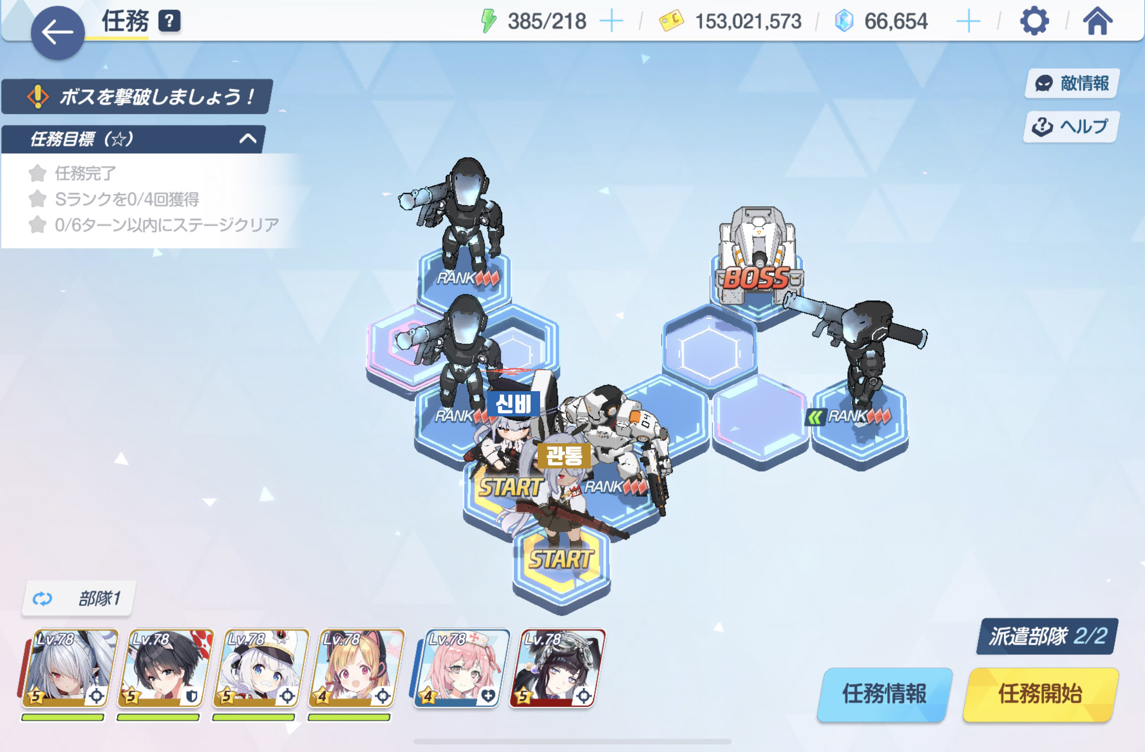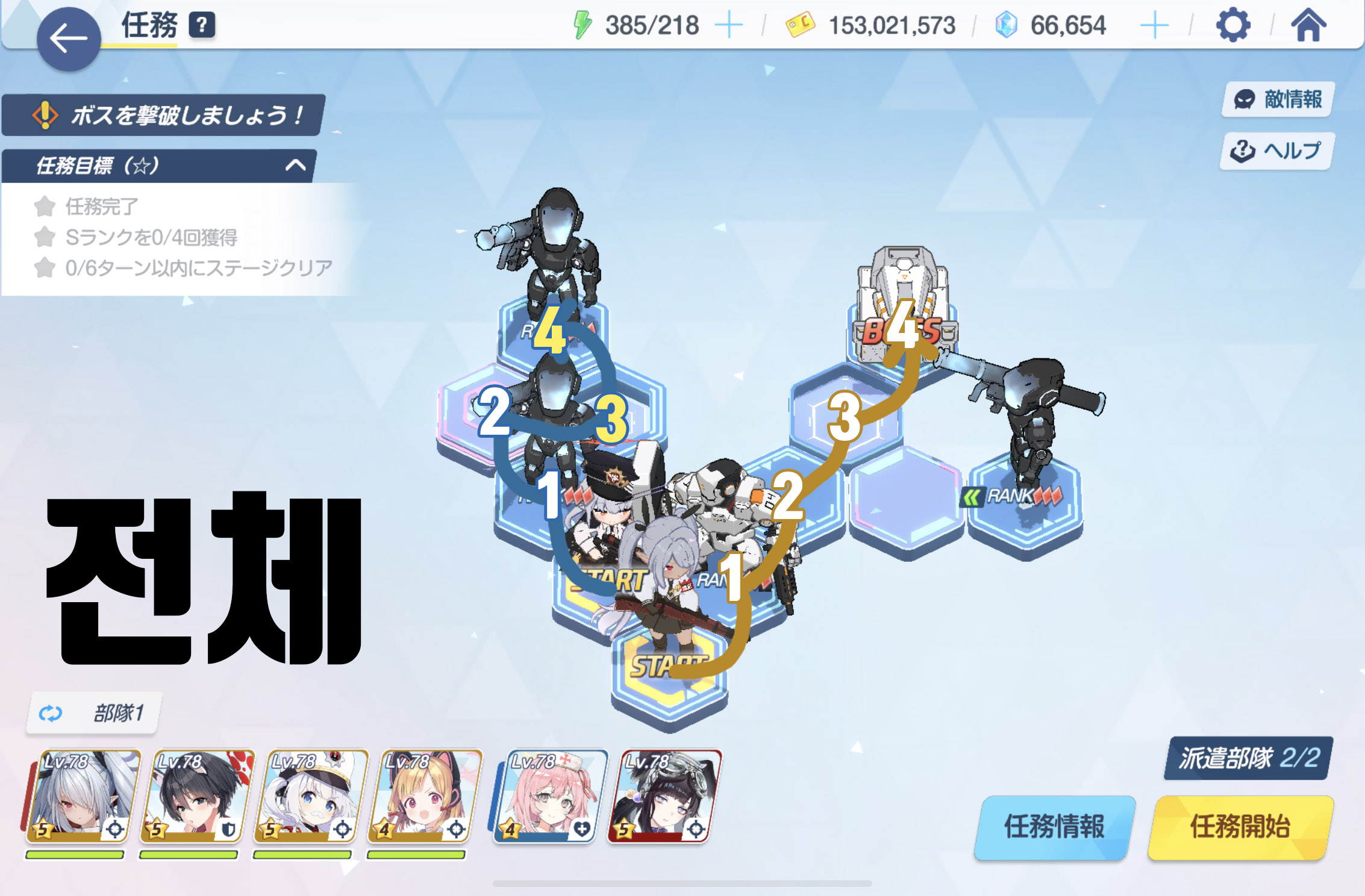 임무완료 / 전투 S랭크 4회 / 6턴 내에 스테이지 클리어