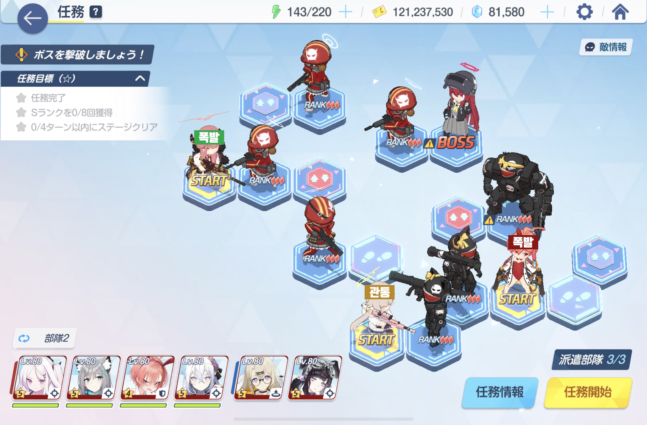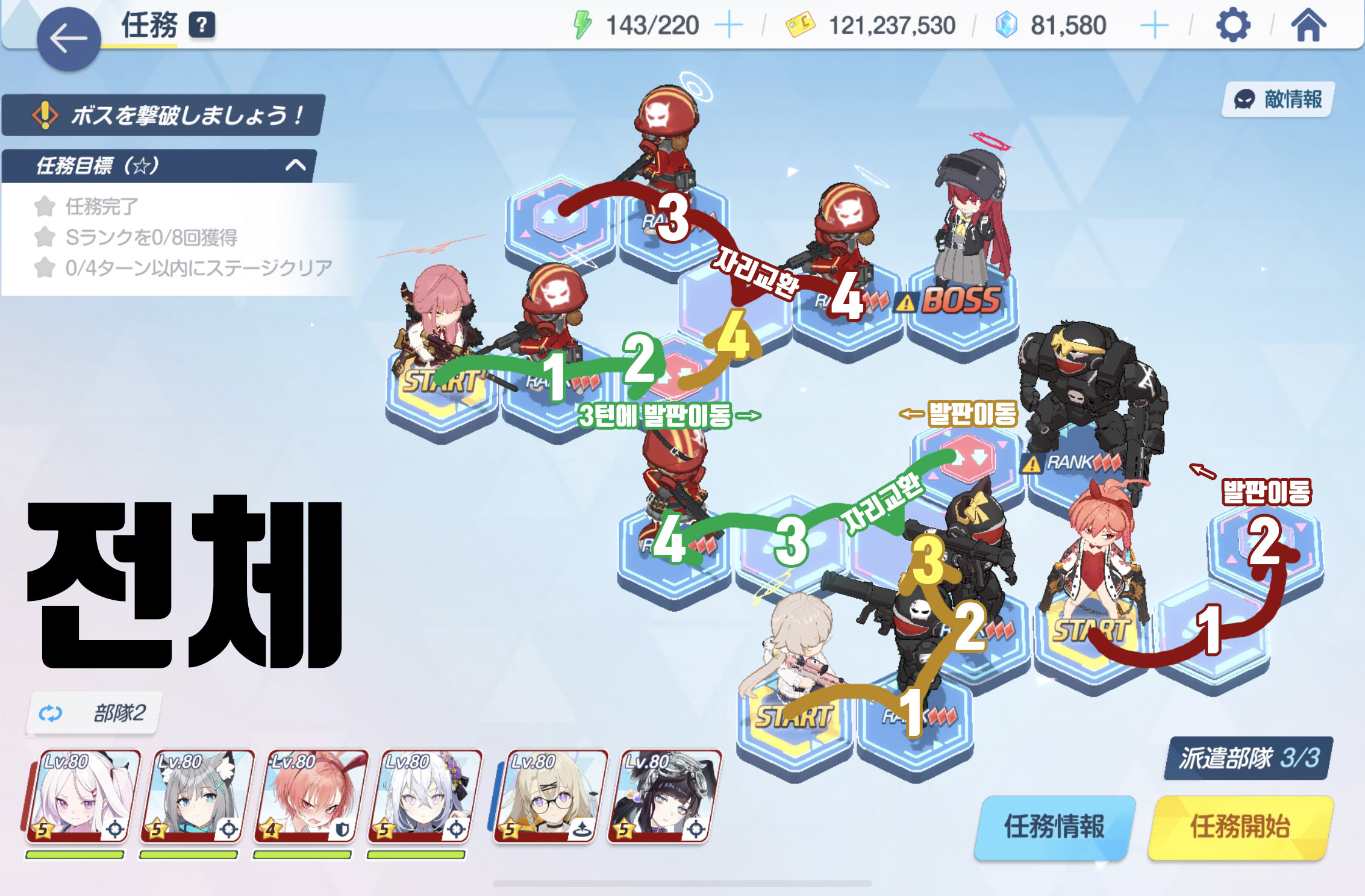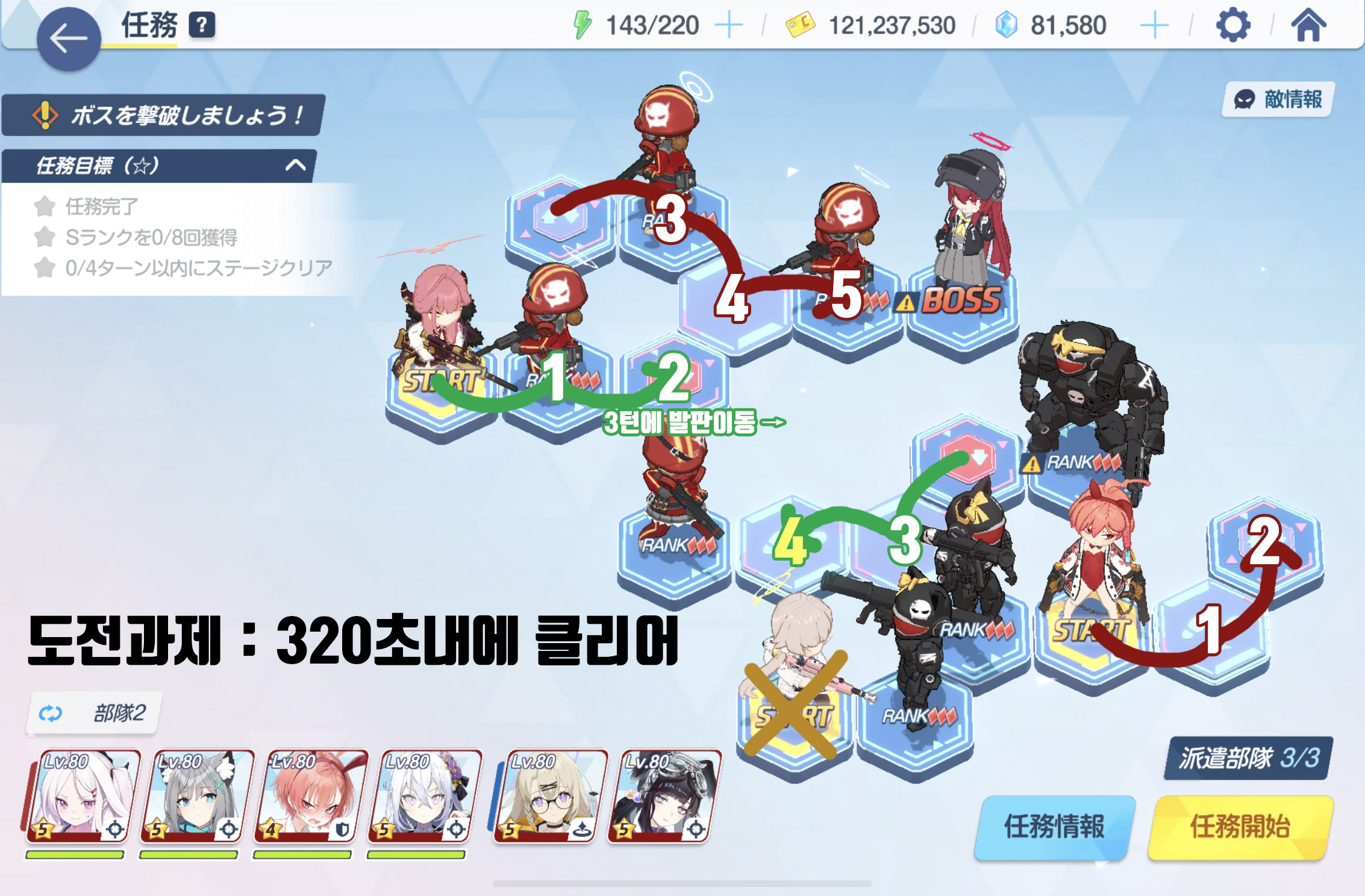 임무완료 / 전투 S랭크 6회 / 4턴 내에 스테이지 클리어