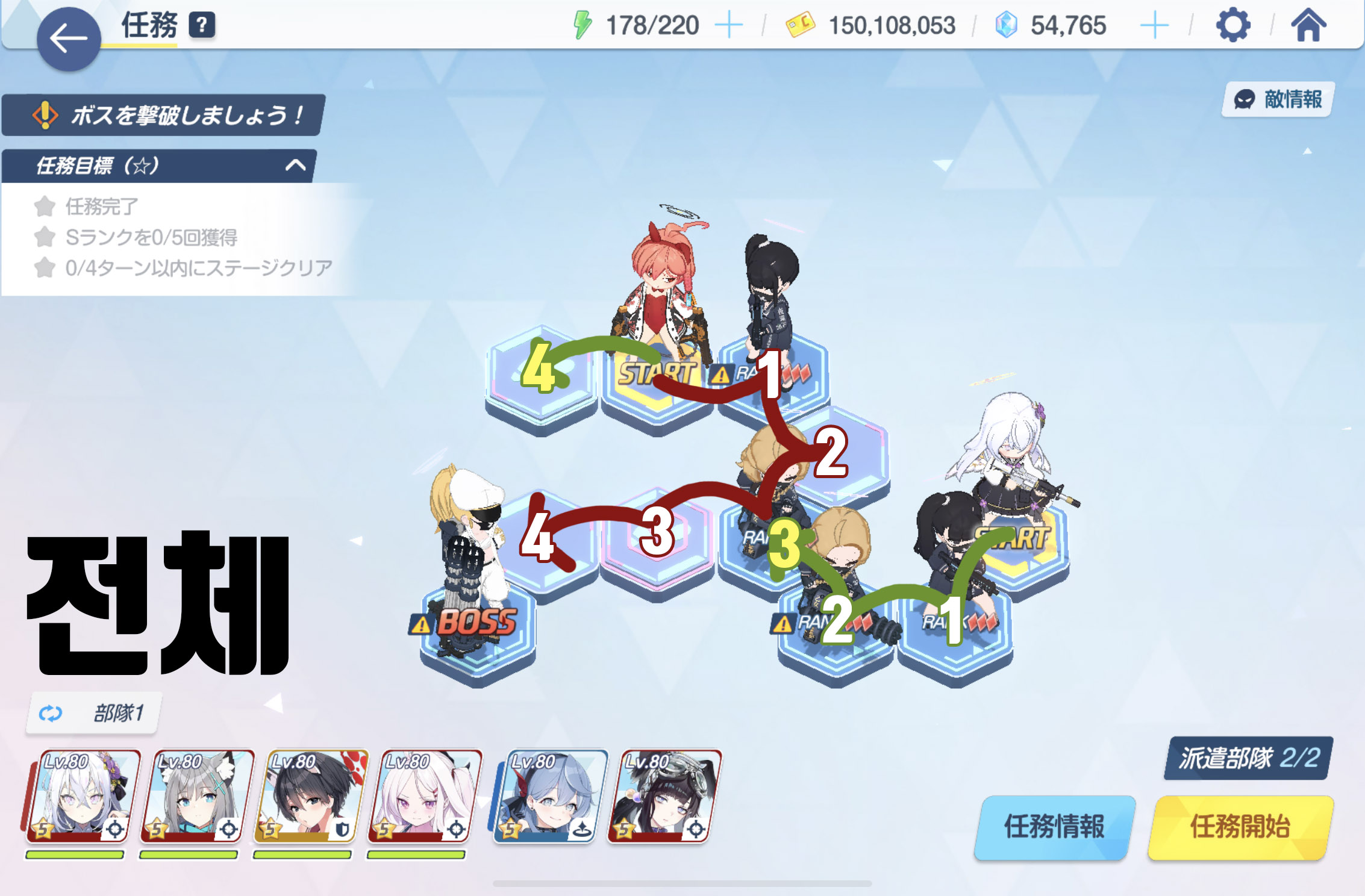 임무완료 / 전투 S랭크 5회 / 4턴 내에 스테이지 클리어
