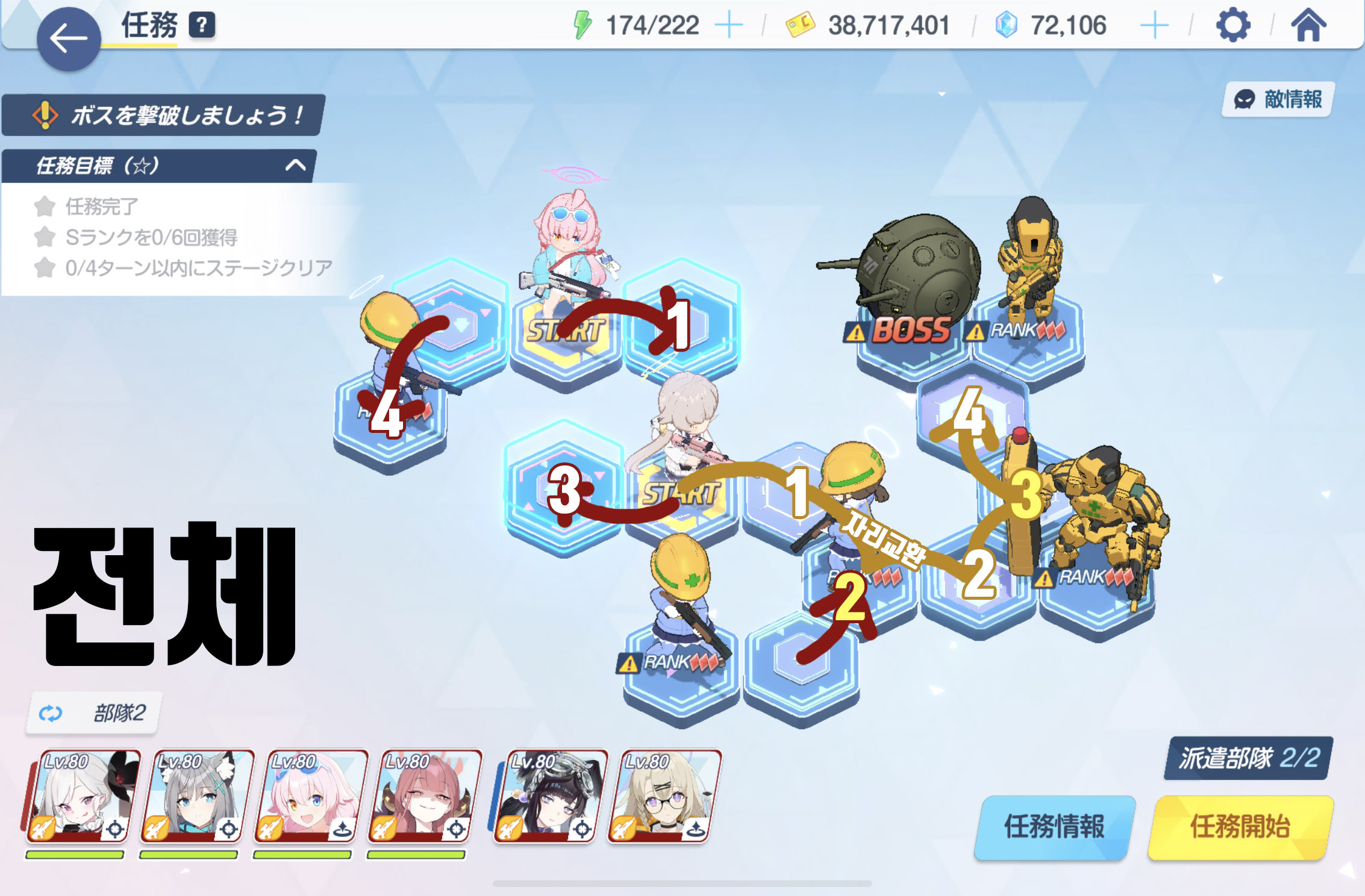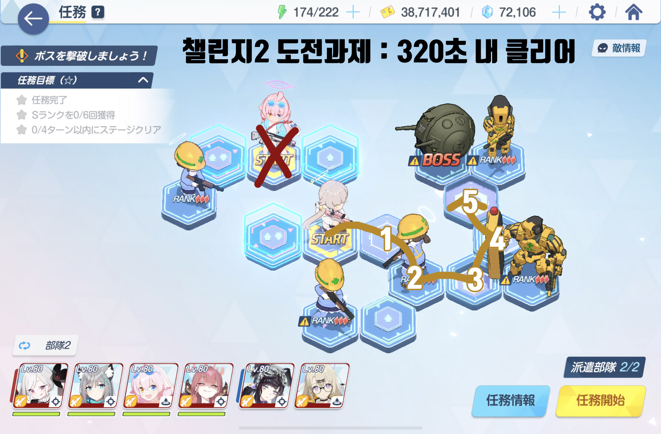 임무완료 / 전투 S랭크 6회 / 4턴 내에 스테이지 클리어