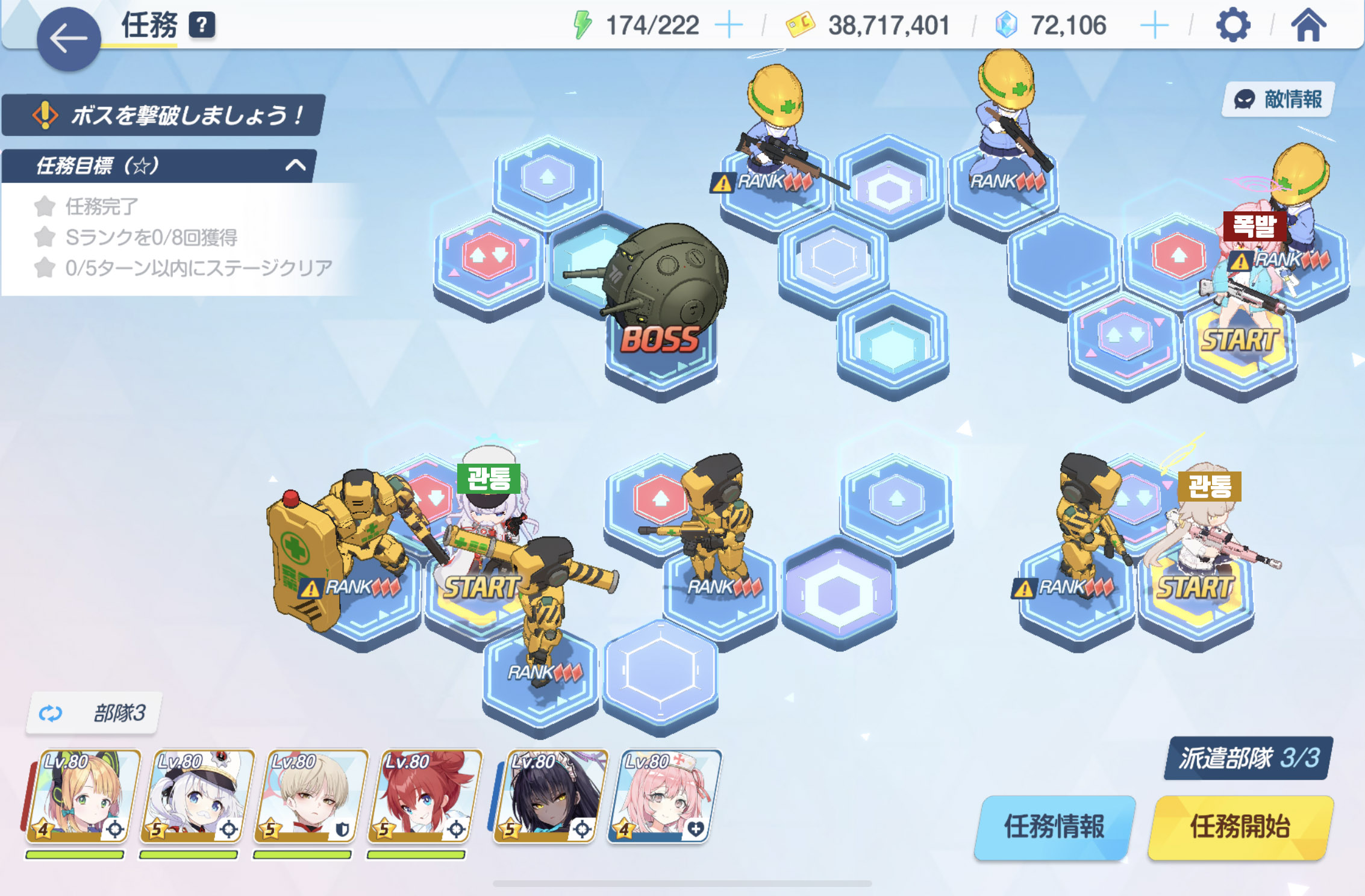 임무완료 / 전투 S랭크 8회 / 5턴 내에 스테이지 클리어
