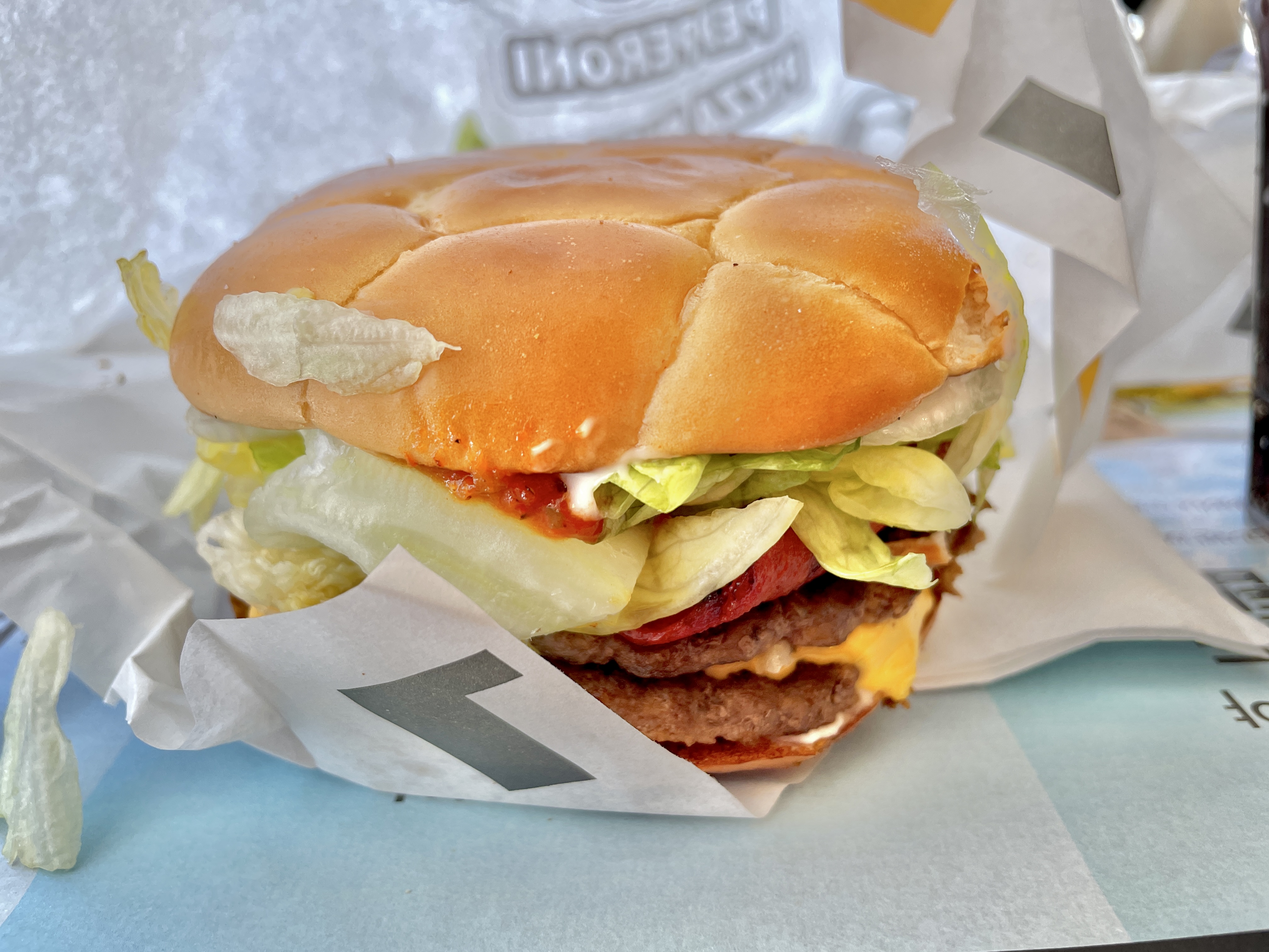 일단 버거를 열면 페퍼로니 냄새가 확 납니다. 한 입 베어물면 다양한 맛과 끝 맛으로 페퍼로니 맛이 느껴집니다.