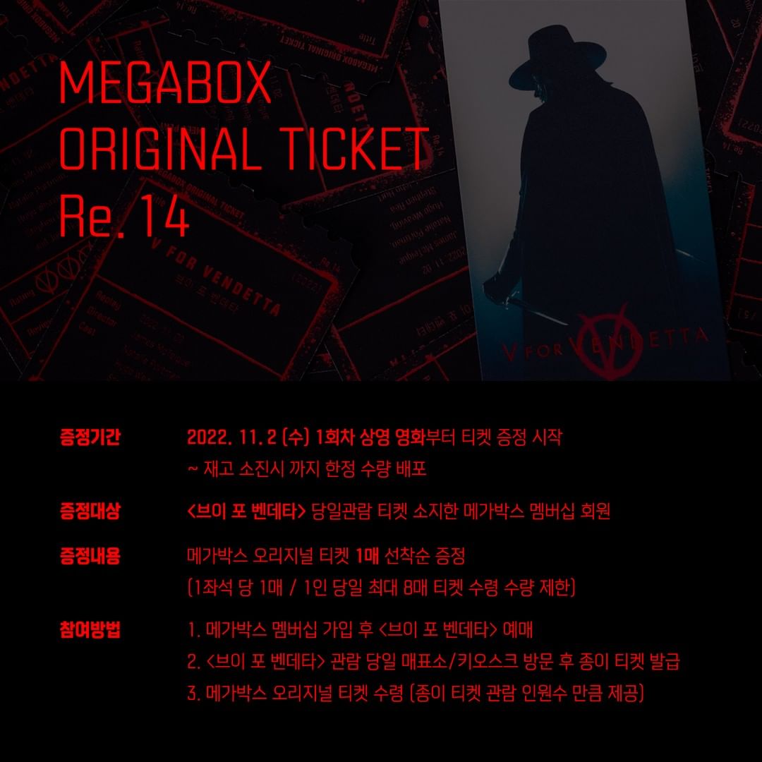 이번 오리지널 티켓 영화는 브이 포 벤데타 입니다.