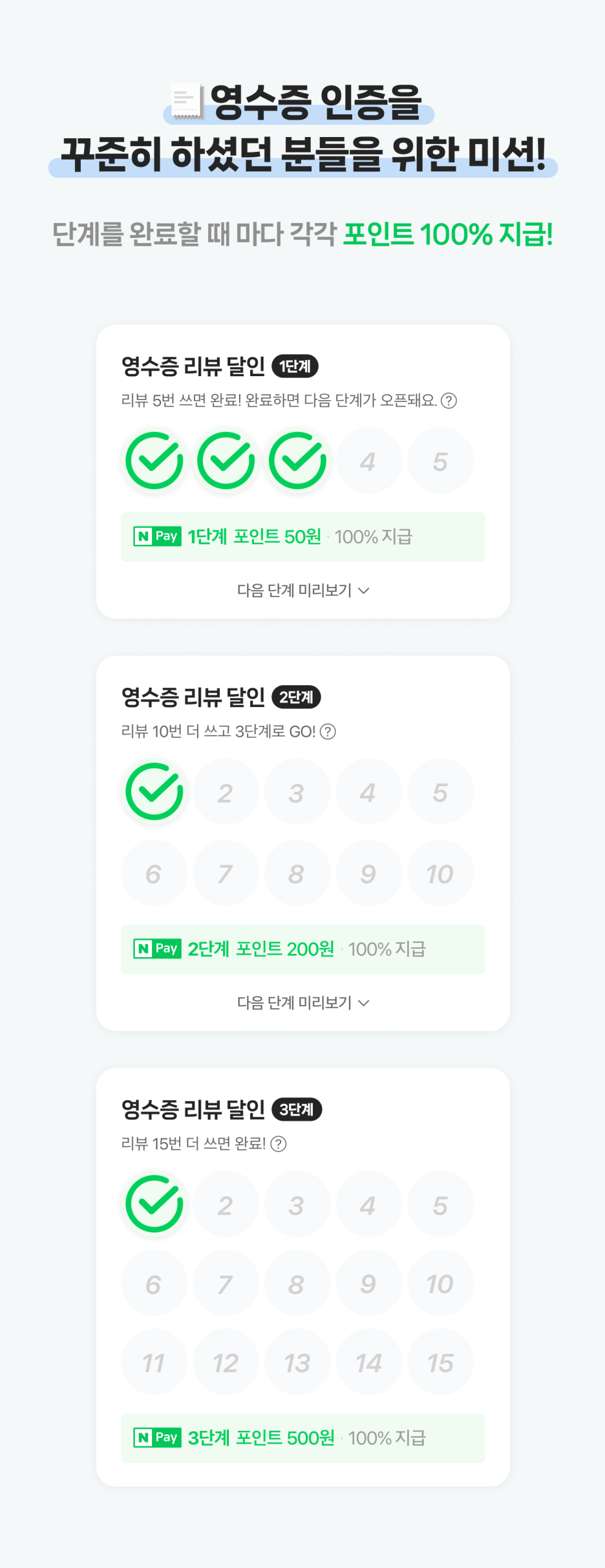 이제는 단계별로 리뷰갯수를 채워야 포인트를 얻게 바뀝니다.