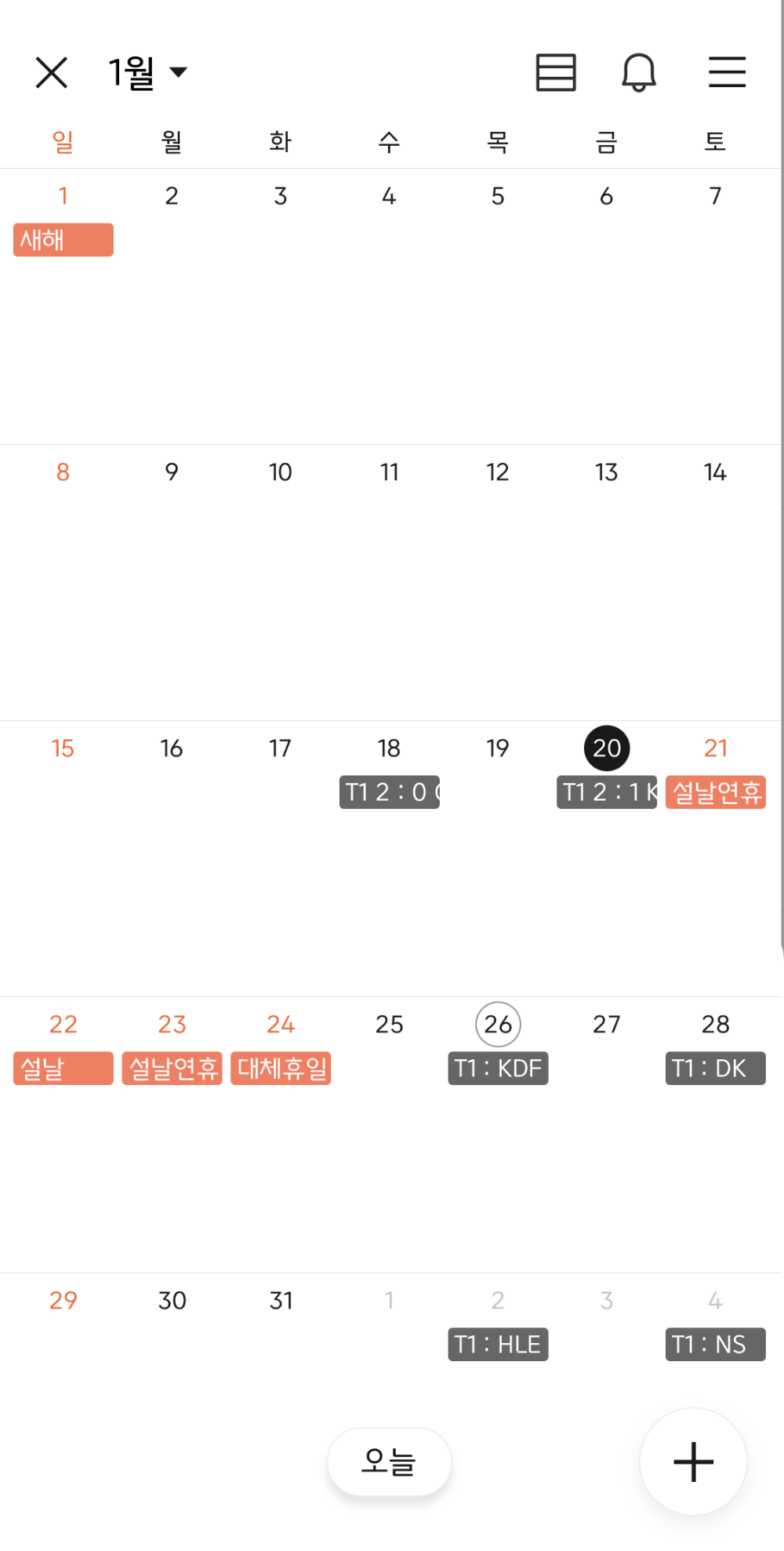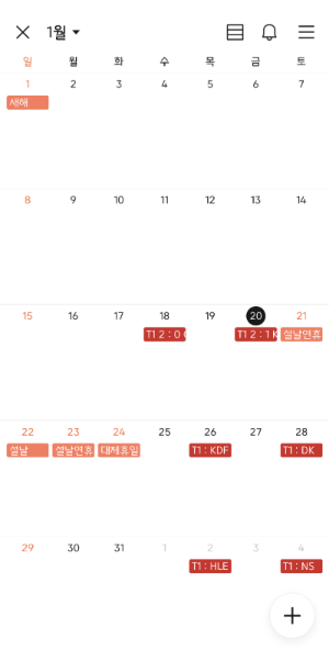구독 캘린더에서 색깔을 변경할 구독 캘린더를 터치합니다. 제경우에는 T1입니다.