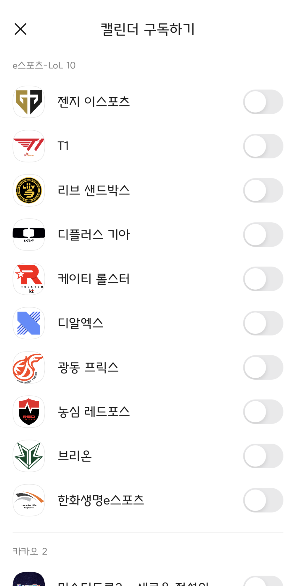 카카오톡 캘린더 스포츠 팀 구독하기