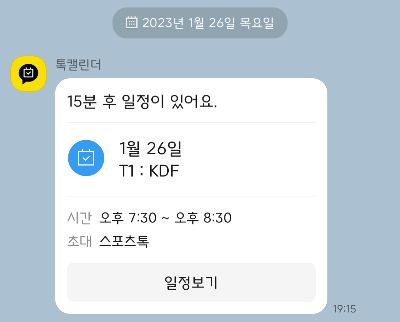 이렇게 15분 전에 알림이 옵니다.