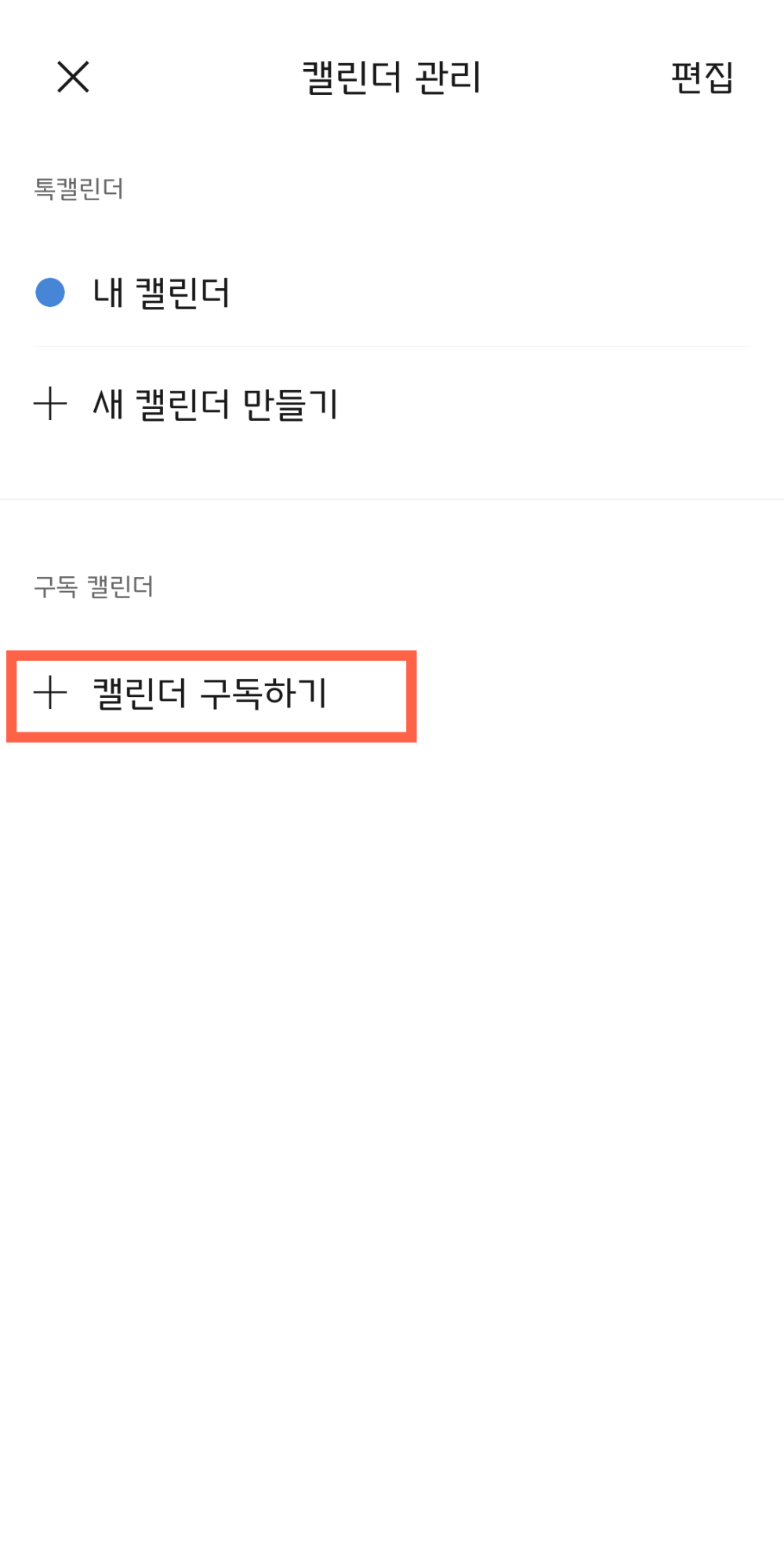 구독 캘린더 옆에 +나 캘린더 관리를 눌러주세요.
