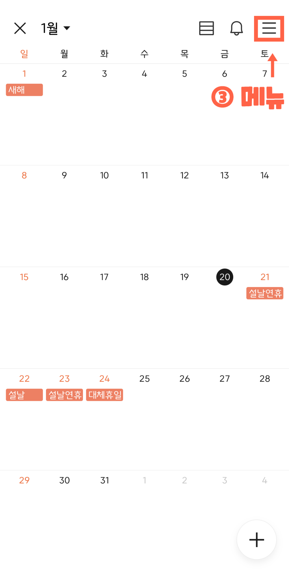 캘린더 상단에 메뉴를 누르면 오른쪽처럼 되는데요.