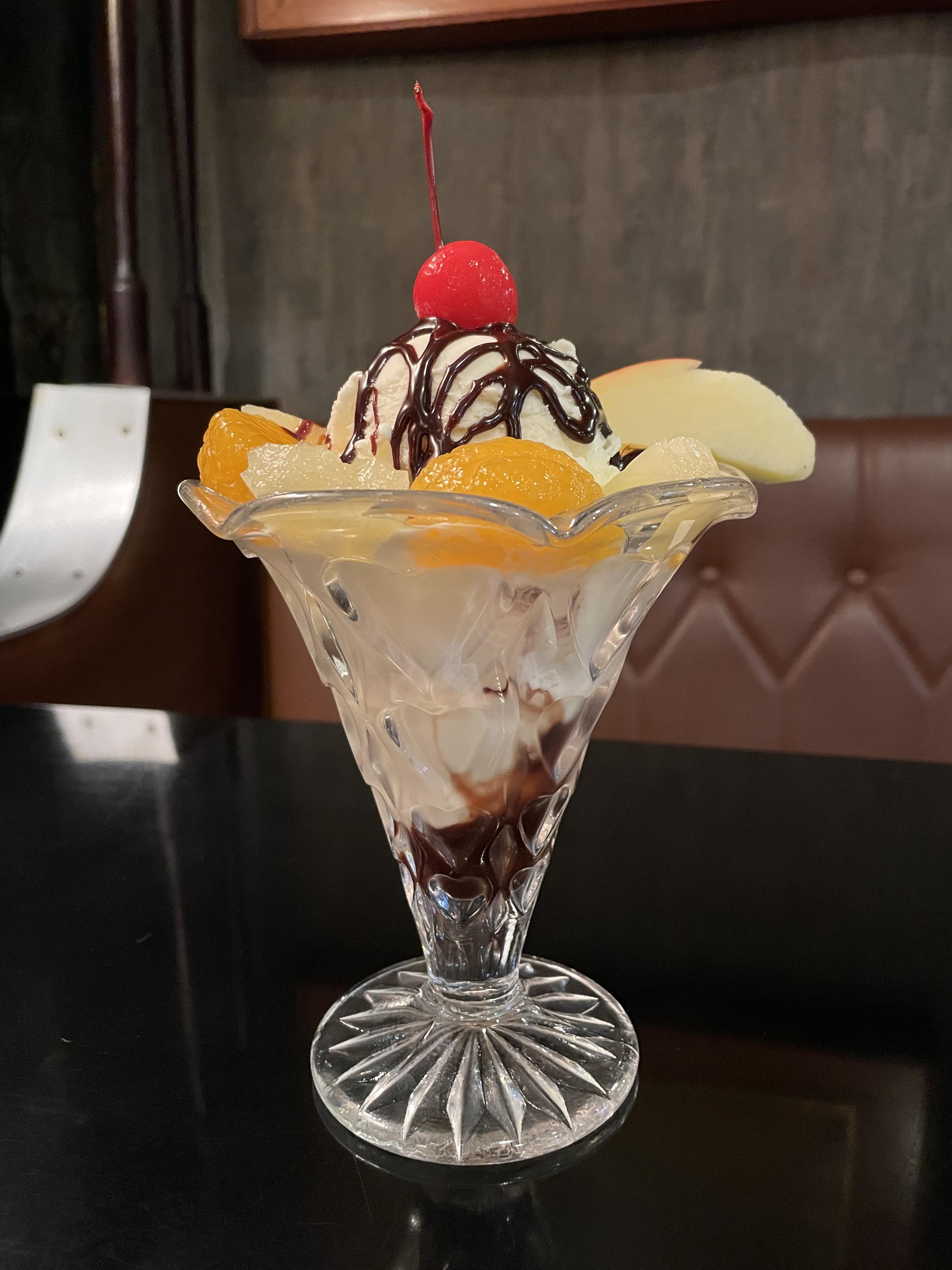 과일파르페 위에 초코시럽 넣은게 끝인 것 같습니다.