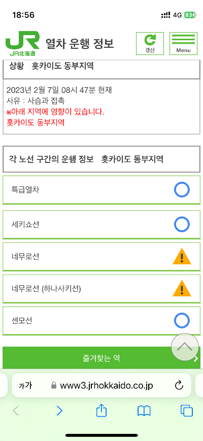 일본은 구글지도가 참 잘되어있는데요. JR홋카이도 는 지연 같은게 구글지도에서 안뜨더라구요..?