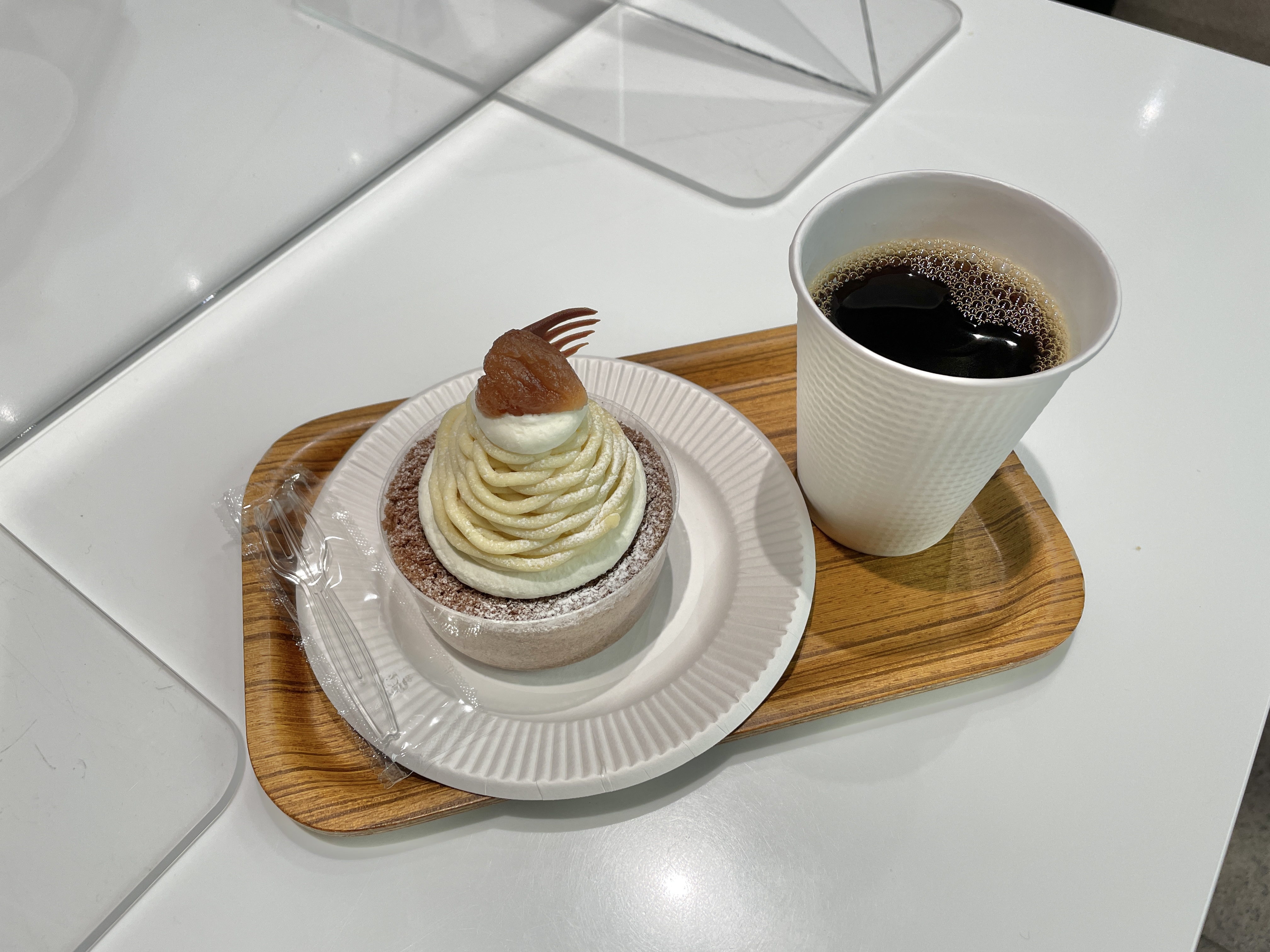 몽블랑과 커피 이게 300엔짜리 몽블랑? 너무 맛있다. 그렇게 달지도 않고 밤맛이 잘 느껴집니다.