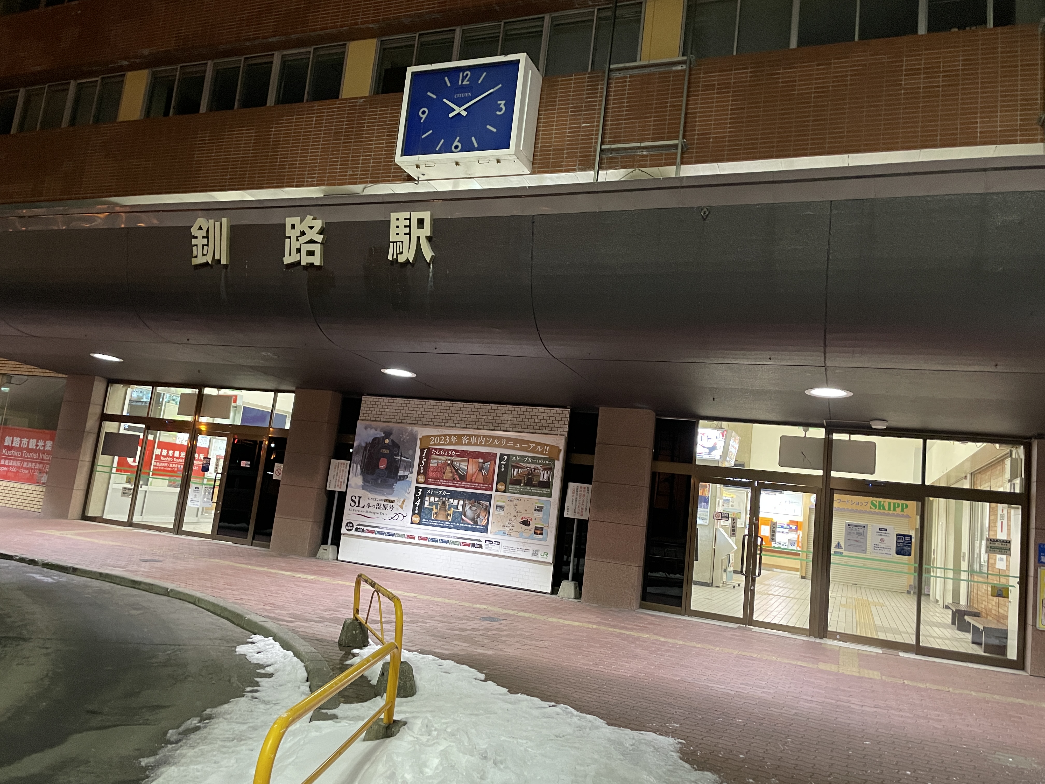 밤의 쿠시로역입니다. 네무로역과 달리 사람은 없지만 택시는 많습니다.