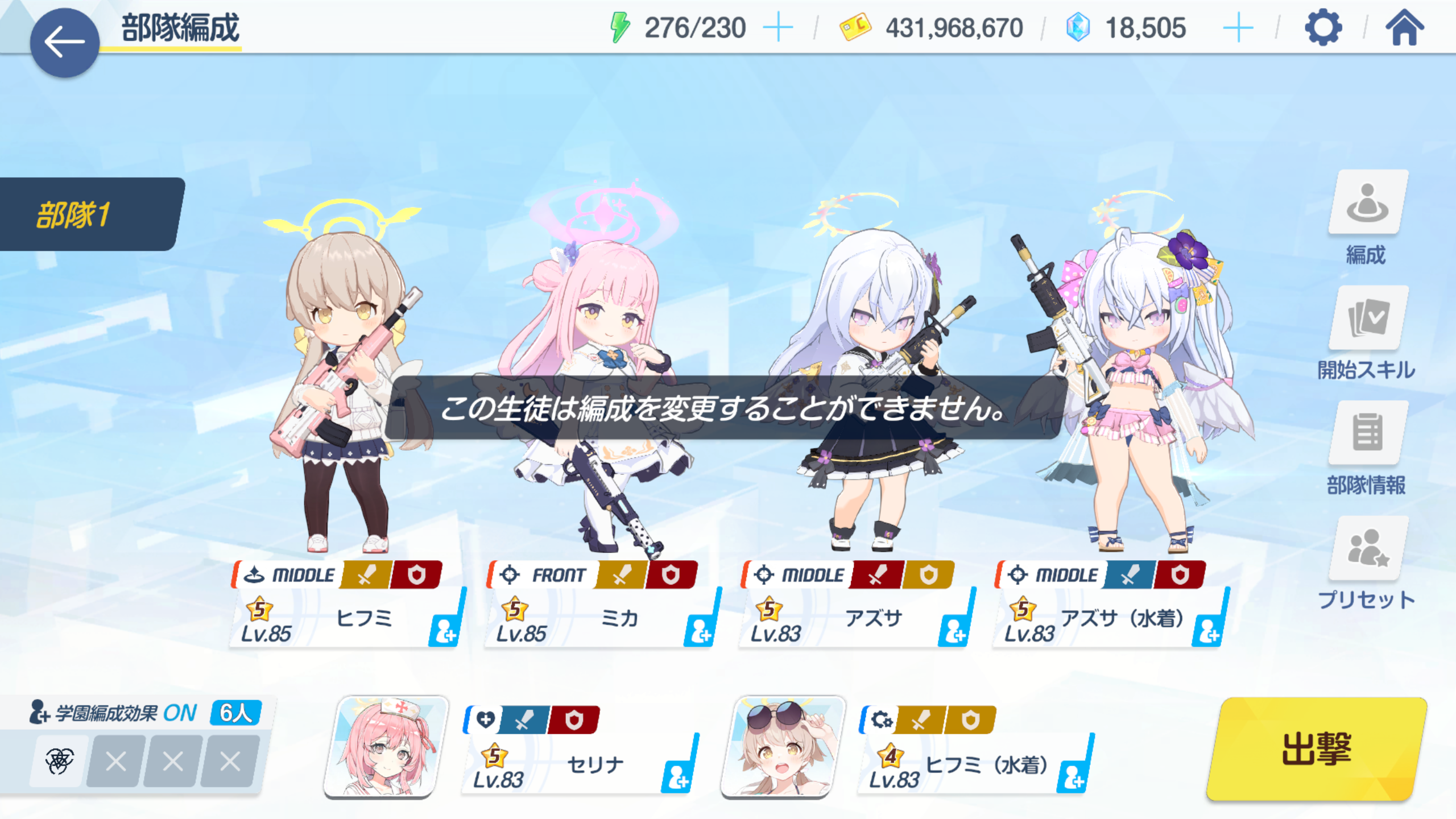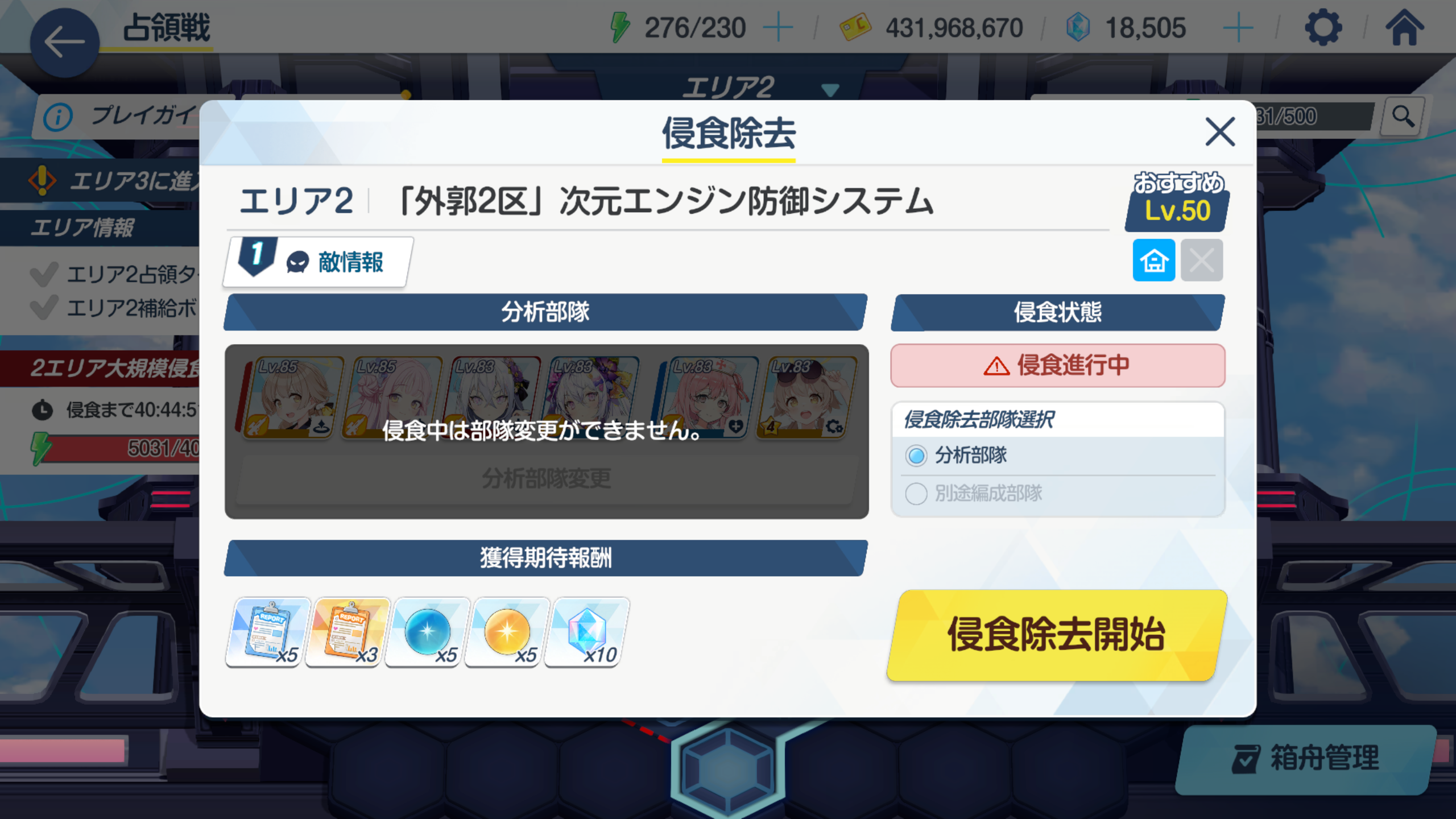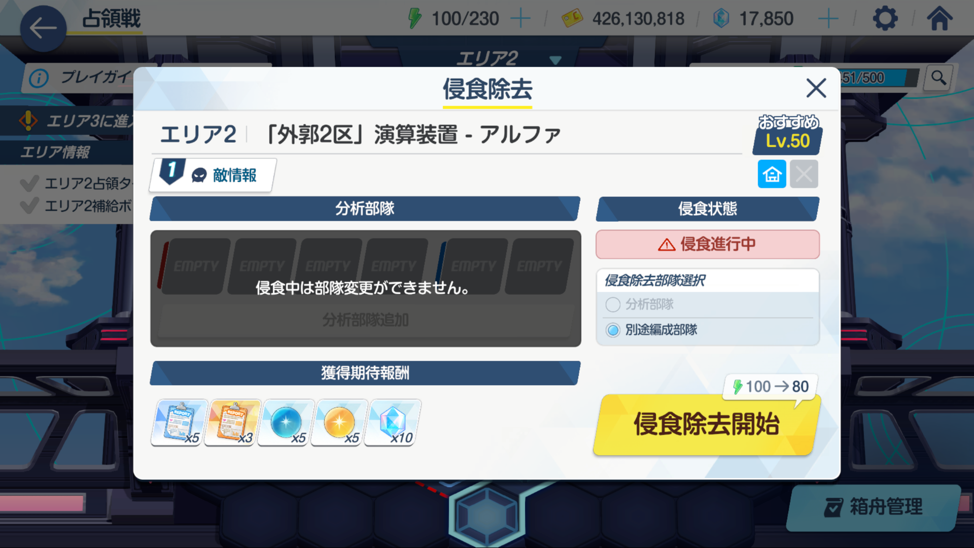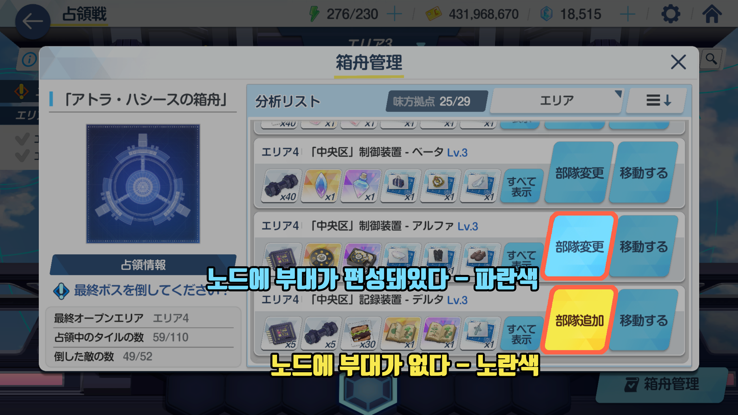 왼쪽은 침식되기 전에 학생을 타일에 편성해놓지 않아서 별도편성부대(자유롭게 편성하는 부대)로 침식을 공격해야합니다. 침식이 된 후에는 분석부대를 지정할 수 없습니다.