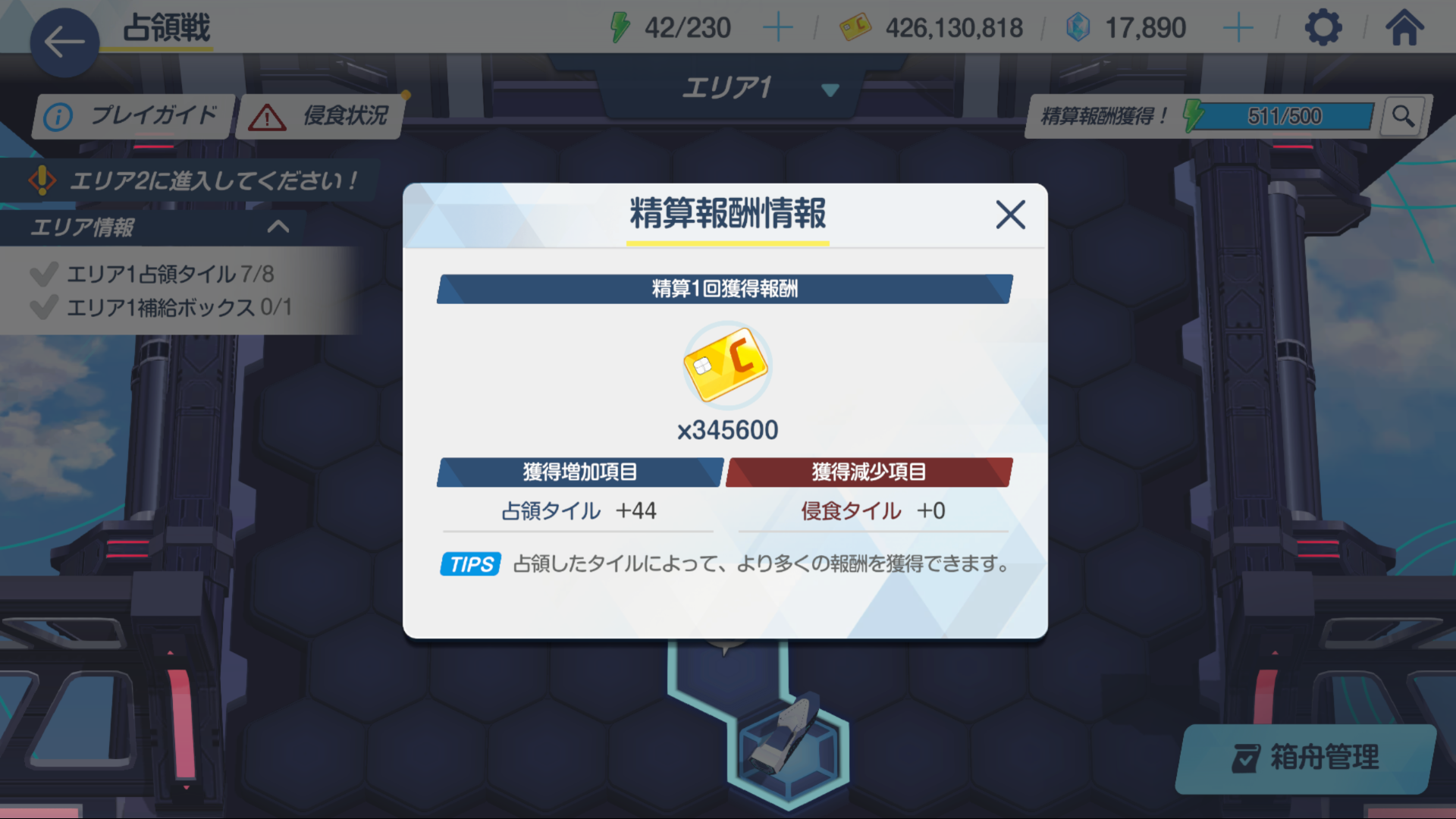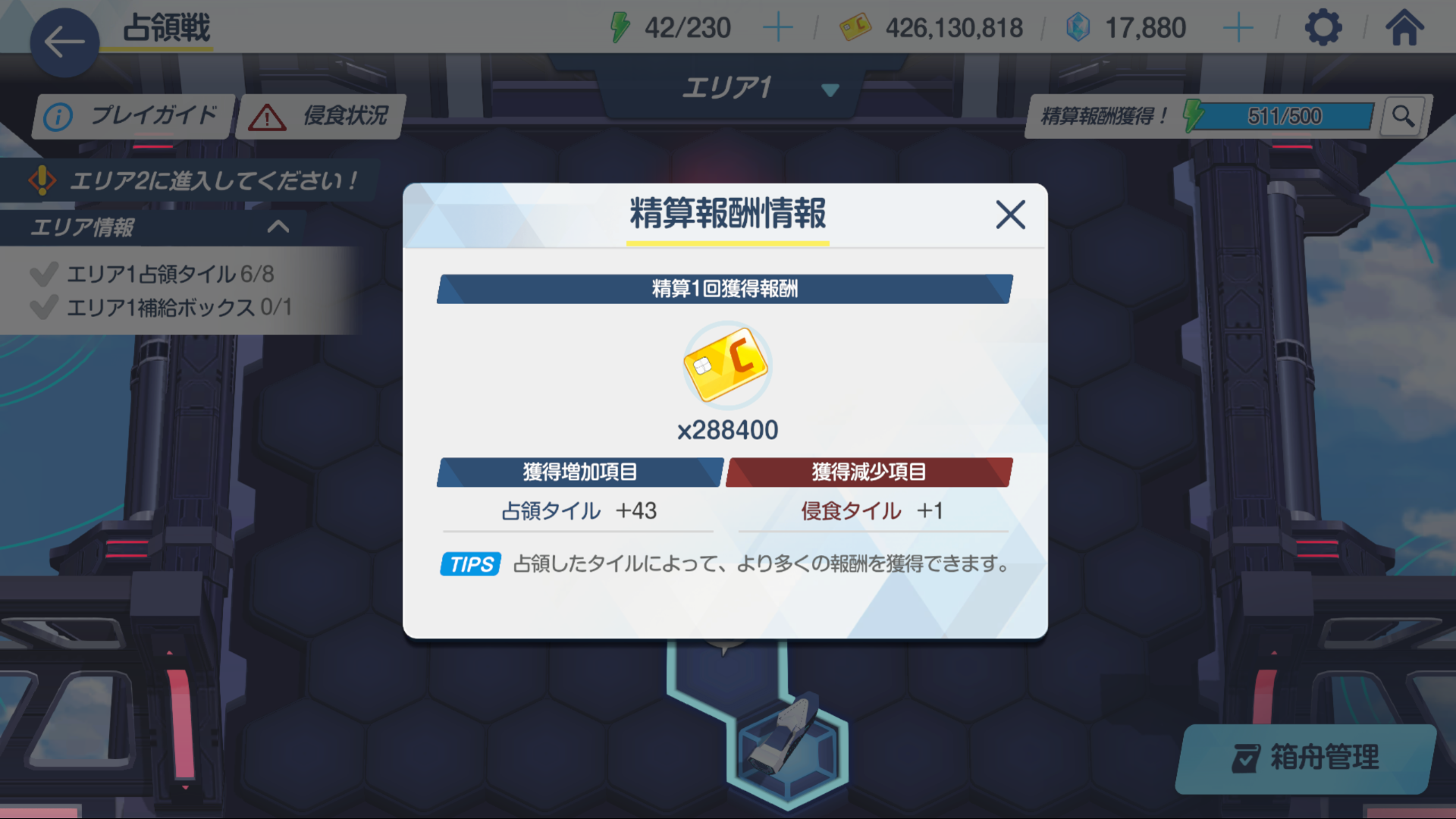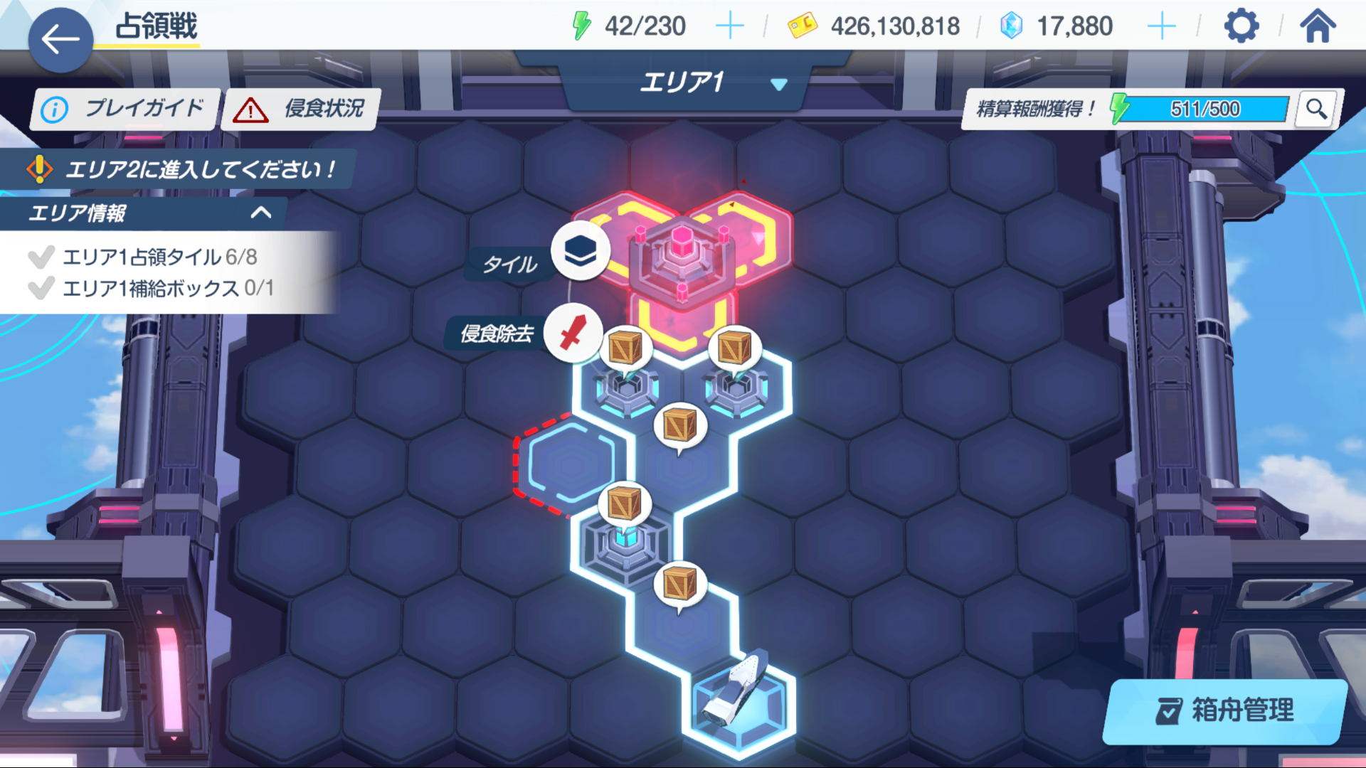 AP 500이 넘어 정산을 받는 버튼이 떴는데 침식이 있어서 보상이 너프되고 있으니 침식타일을 먼저 없애줍니다.