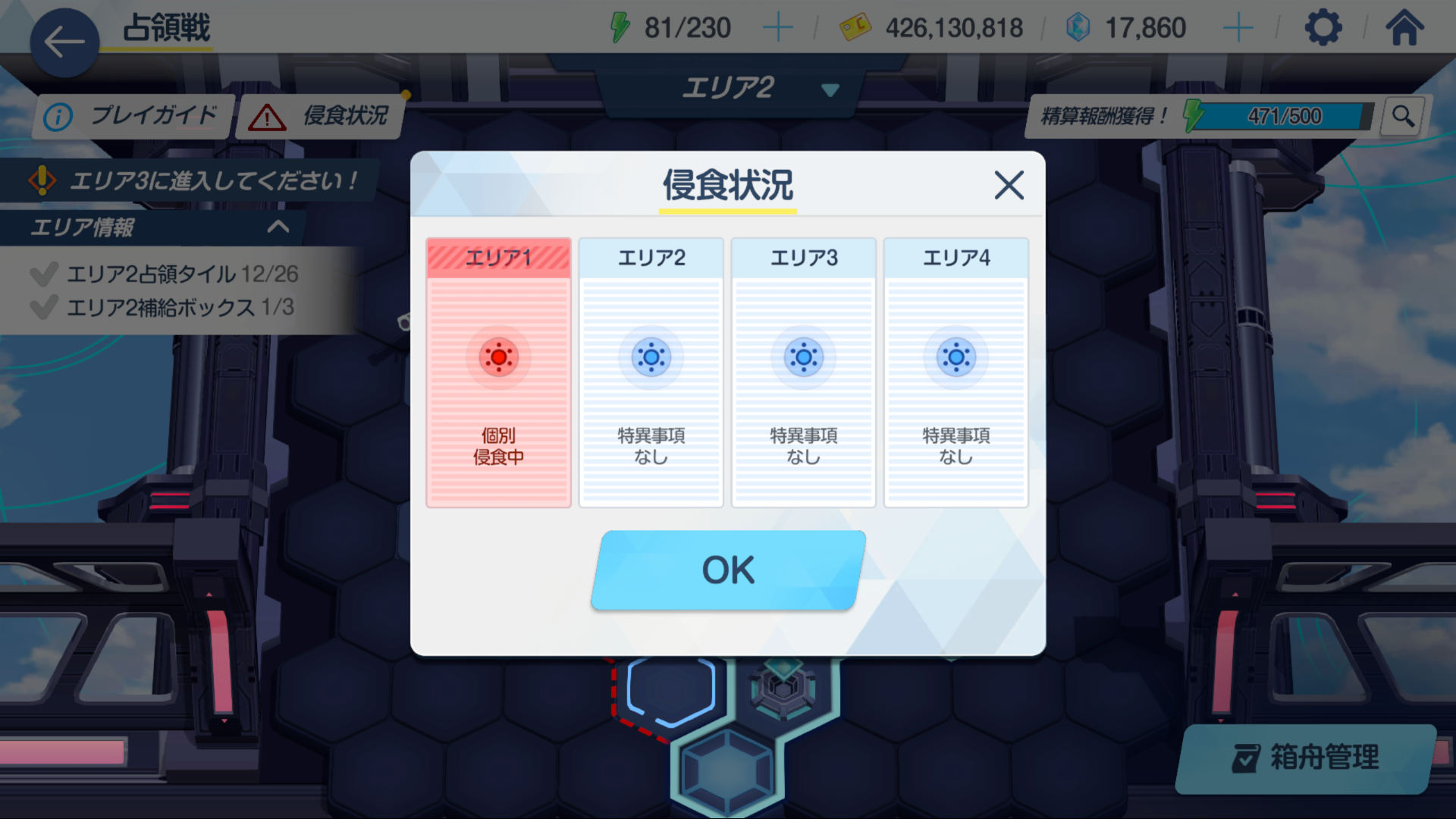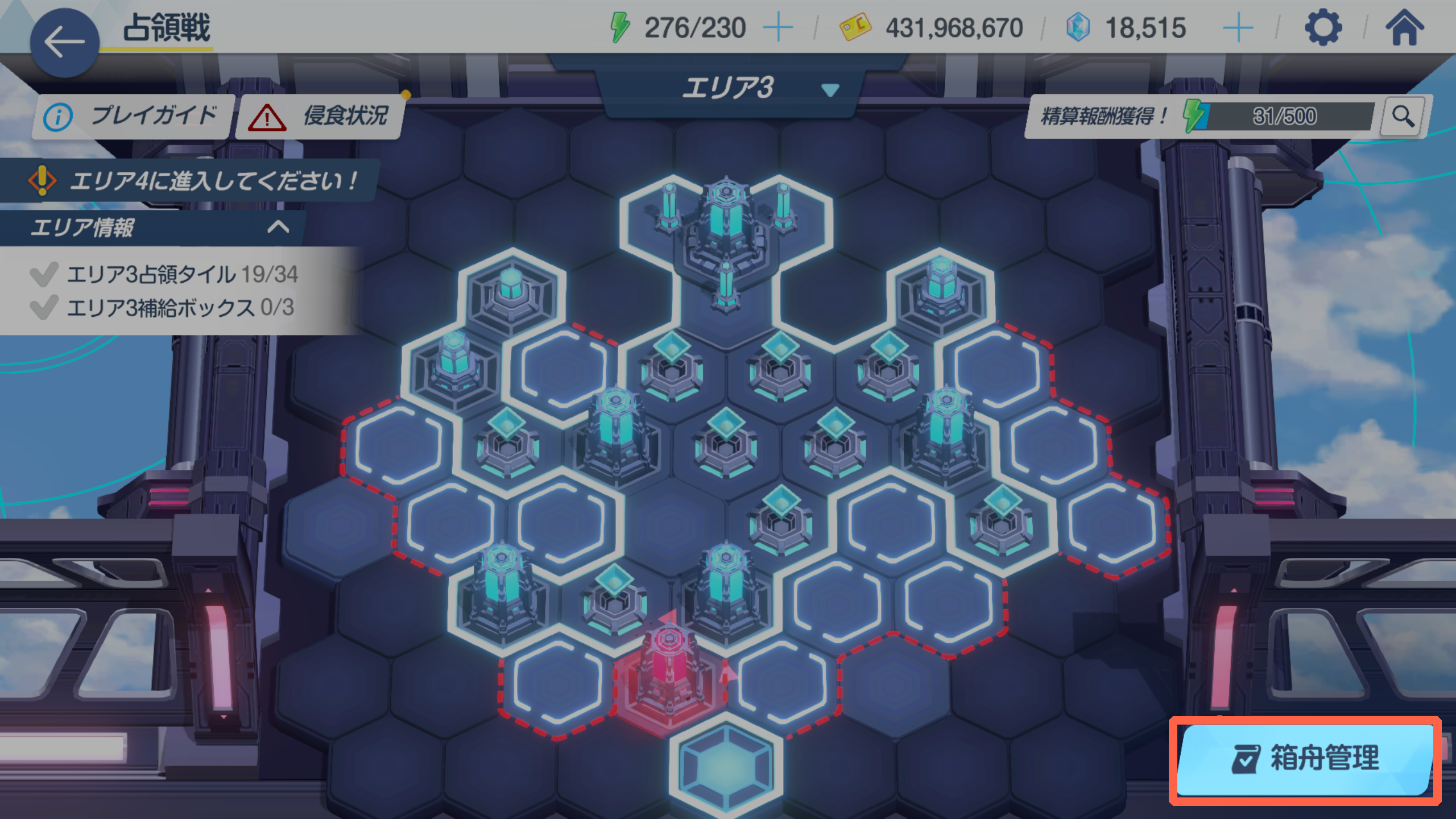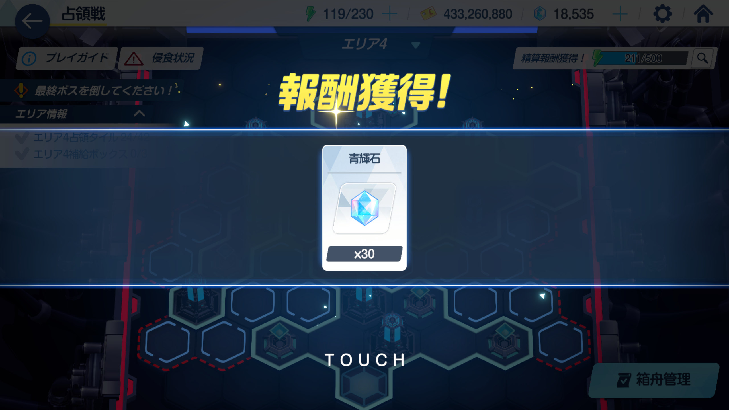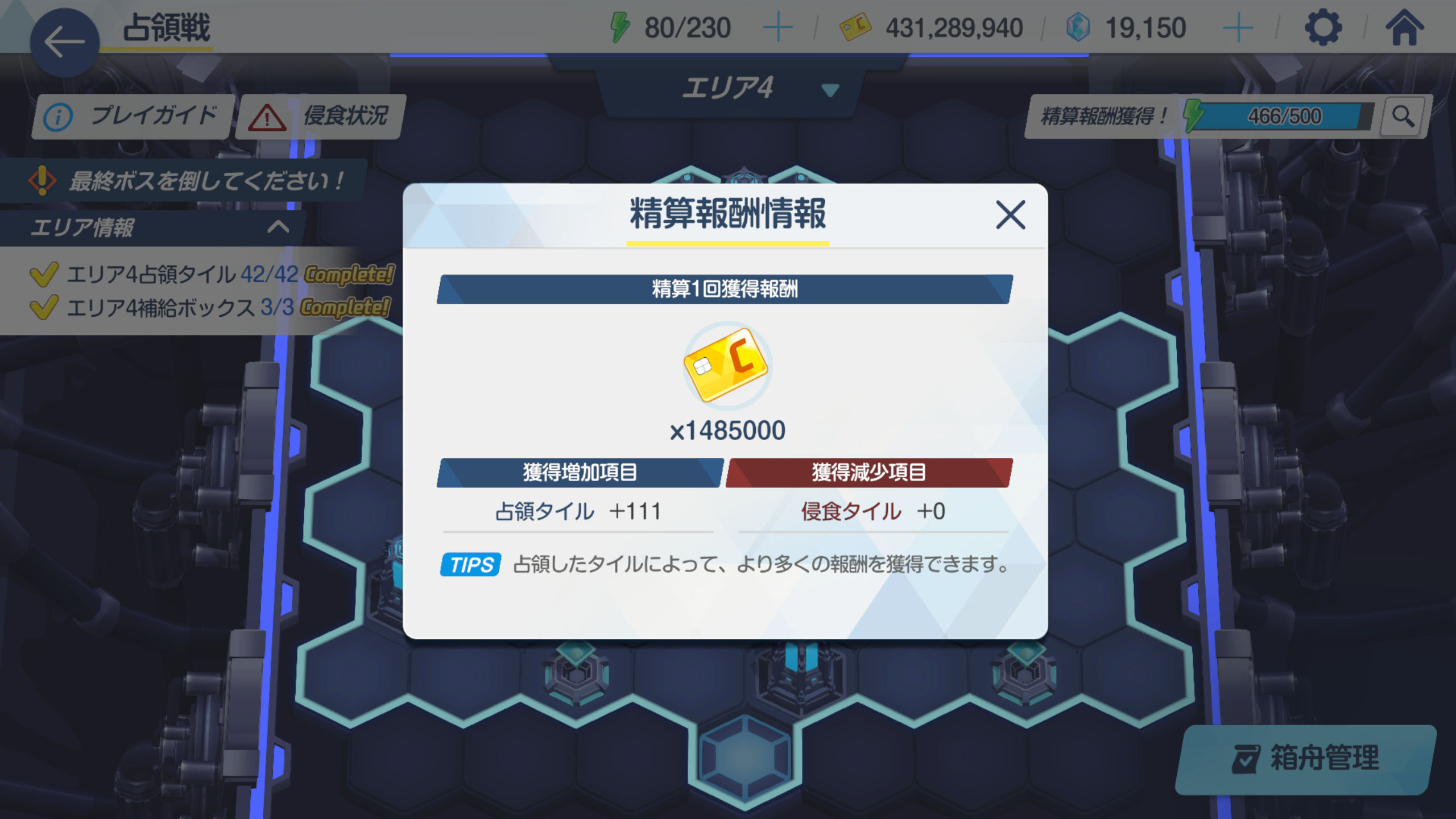 AP 500이 넘어 정산을 받는 버튼이 떴는데 침식이 있어서 보상이 너프되고 있으니 침식타일을 먼저 없애줍니다.