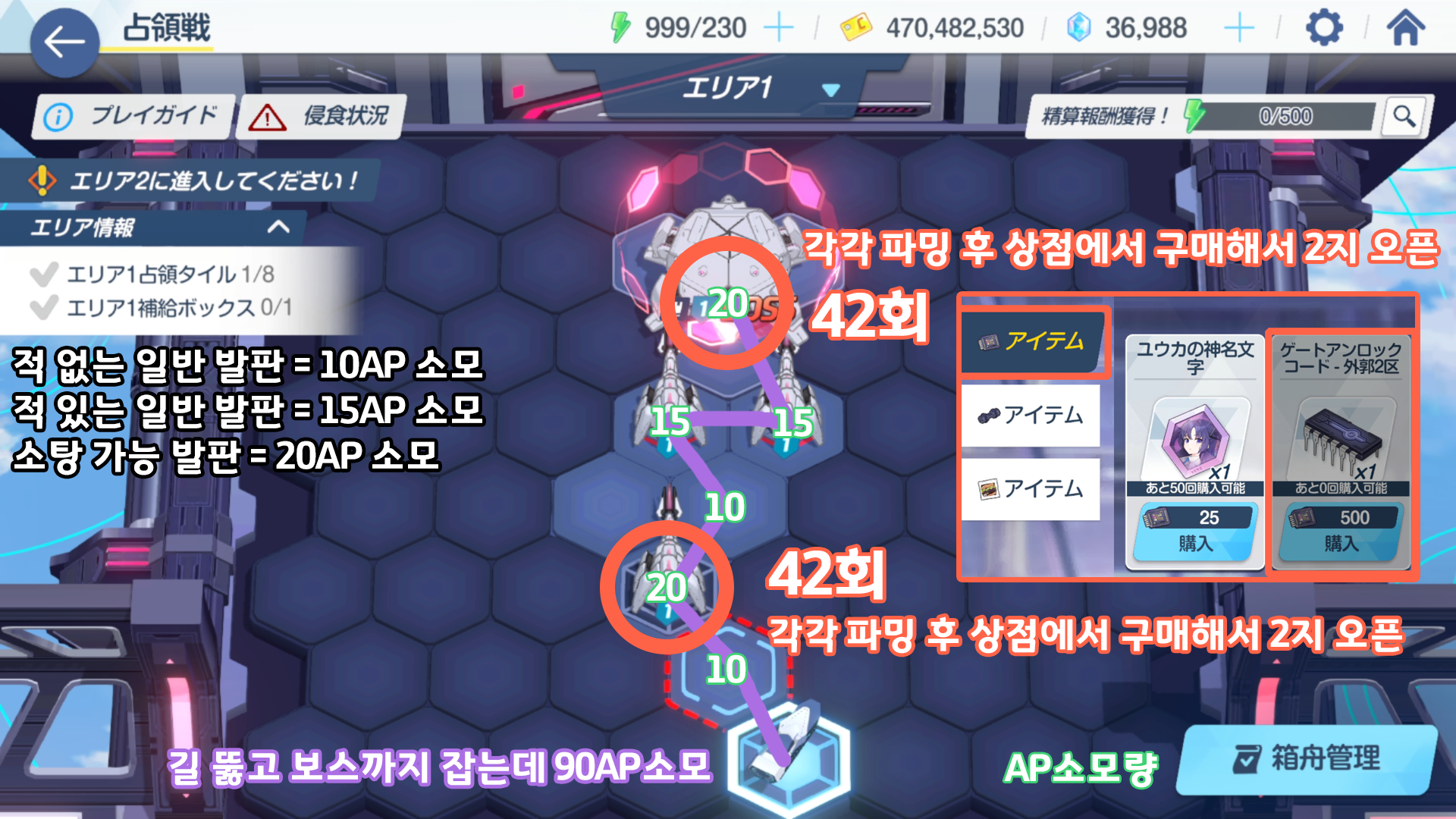 모든 타일은 20AP 소모 기준 재화 획득량 120% 적용입니다.