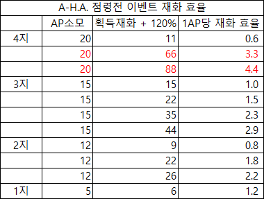 A-H.A 점령전 역시 4지가 재화 효율이 좋기때문에 4지까지 빨리 뚫는게 좋습니다.