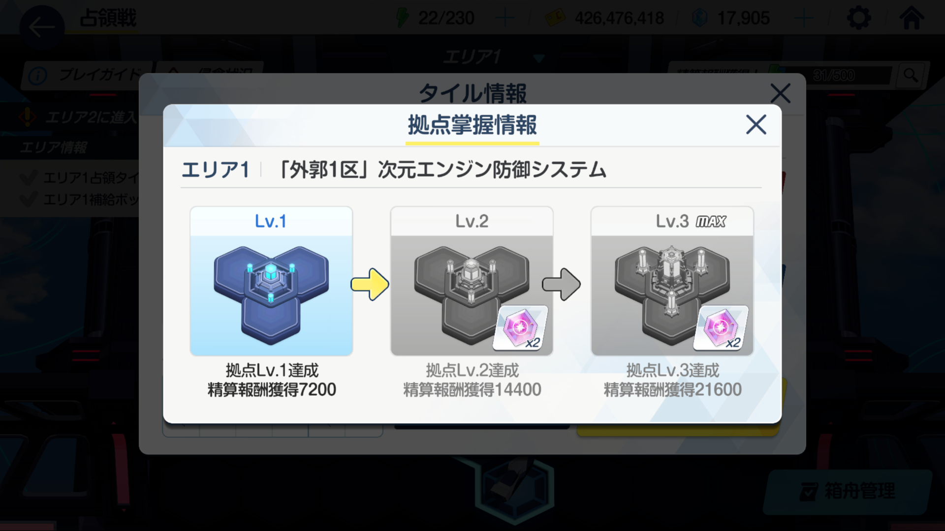 모든 타일은 다 점령했고 전부 거점 레벨 3입니다.