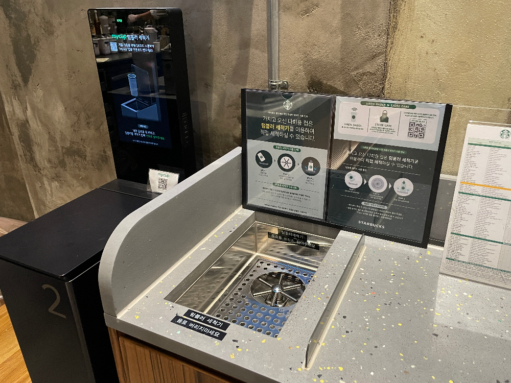 왼쪽에도 이제봤는데 저것도 텀블러 세척기네요? mycup 텀블러 세척기 저거는 어플을 써야되나보네요. 무슨 코스 적혀있는거보니 그냥 물로 헹궈주는게 아닌가?