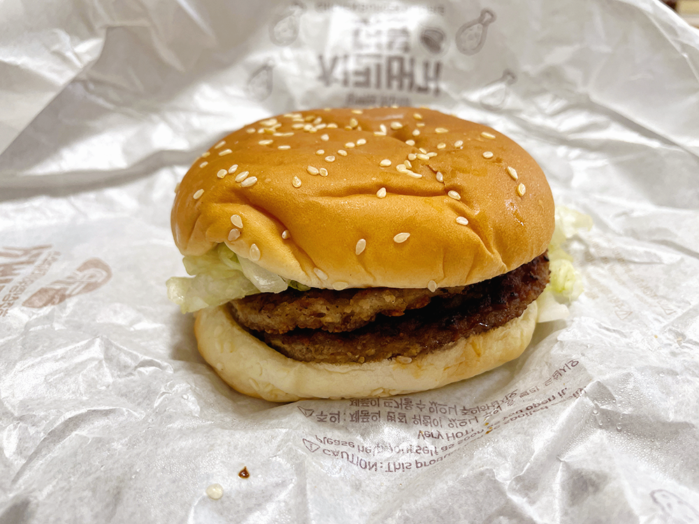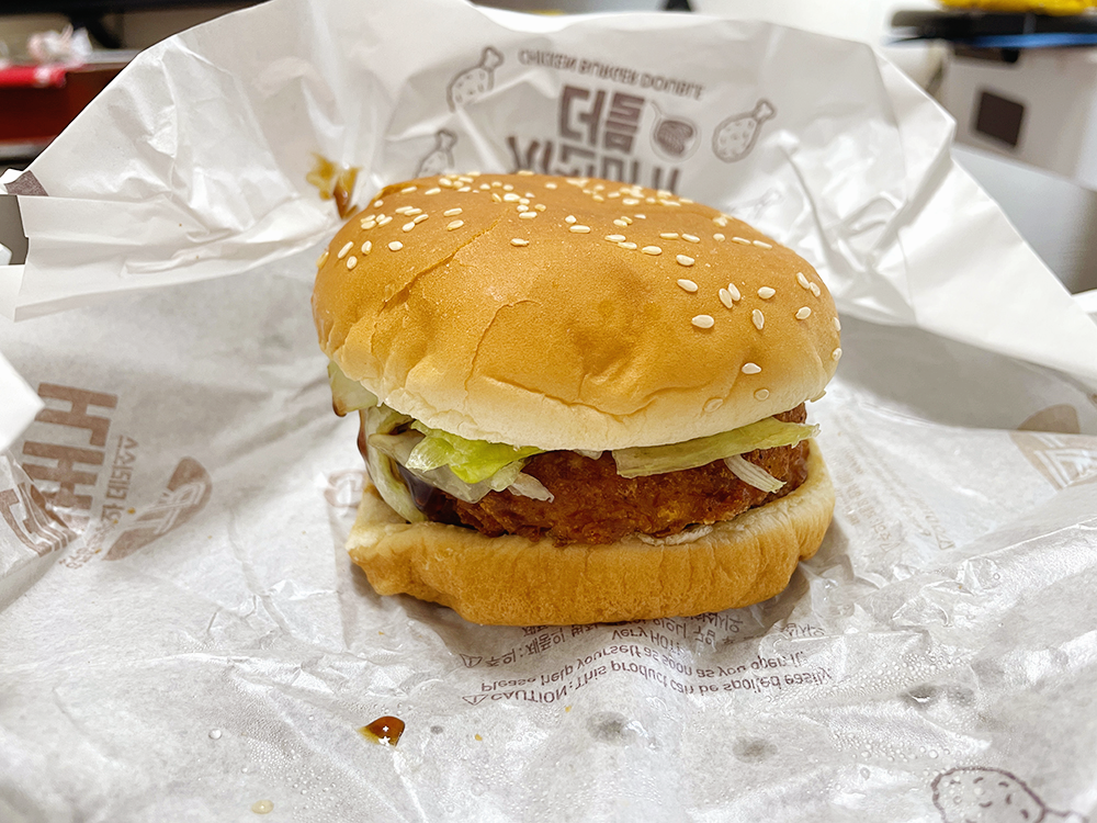 기존 데리버거나 불고기버거는 요즘 마카롱이라고 놀림받고 얇아서 아쉬웠는데 얘는 패티가 2장이라 확실히 씹는 맛이 좋고 소스와 어우러져서 맛있습니다.