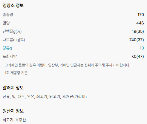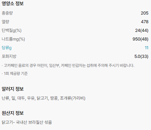 영양성분표입니다.