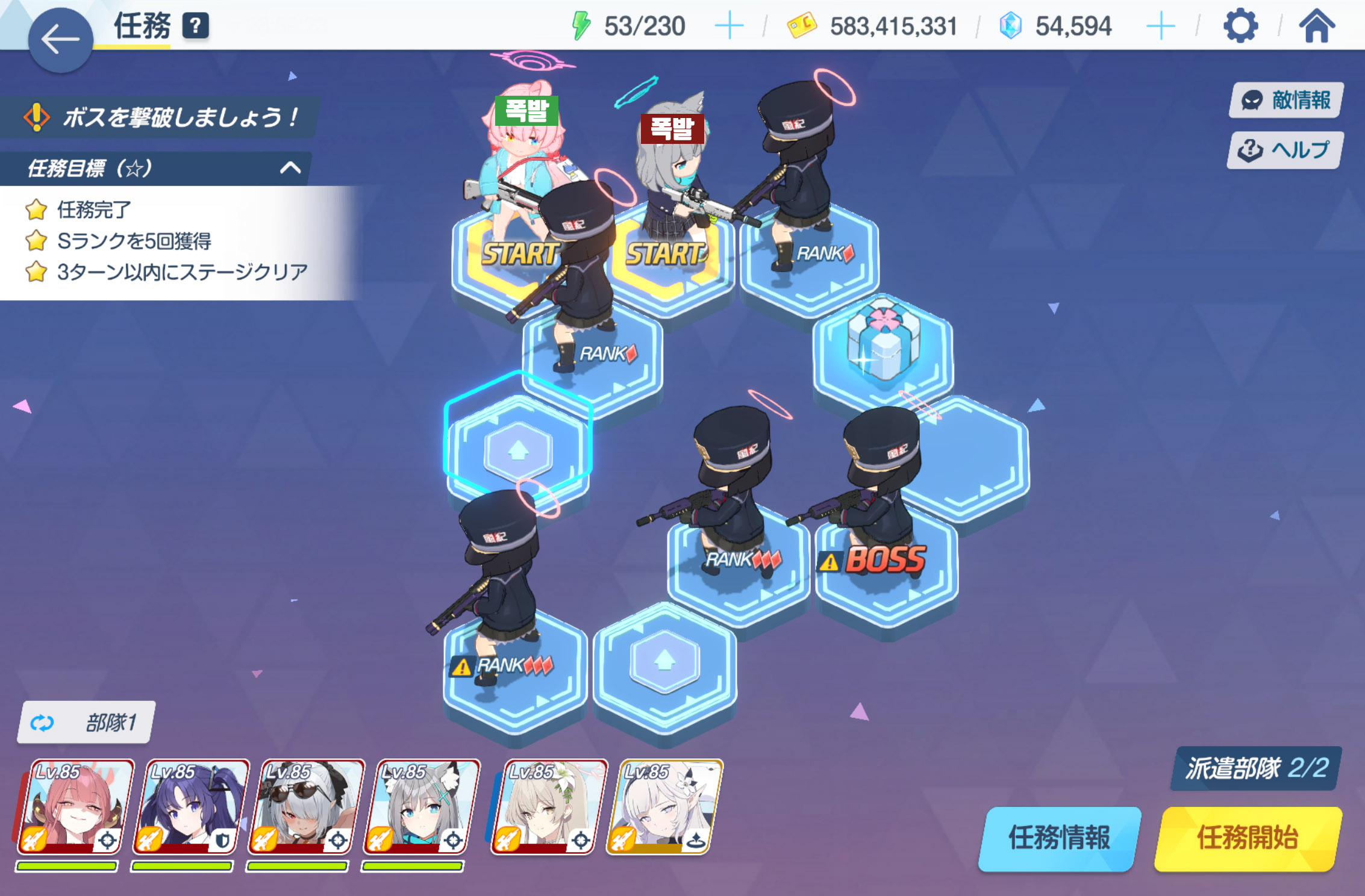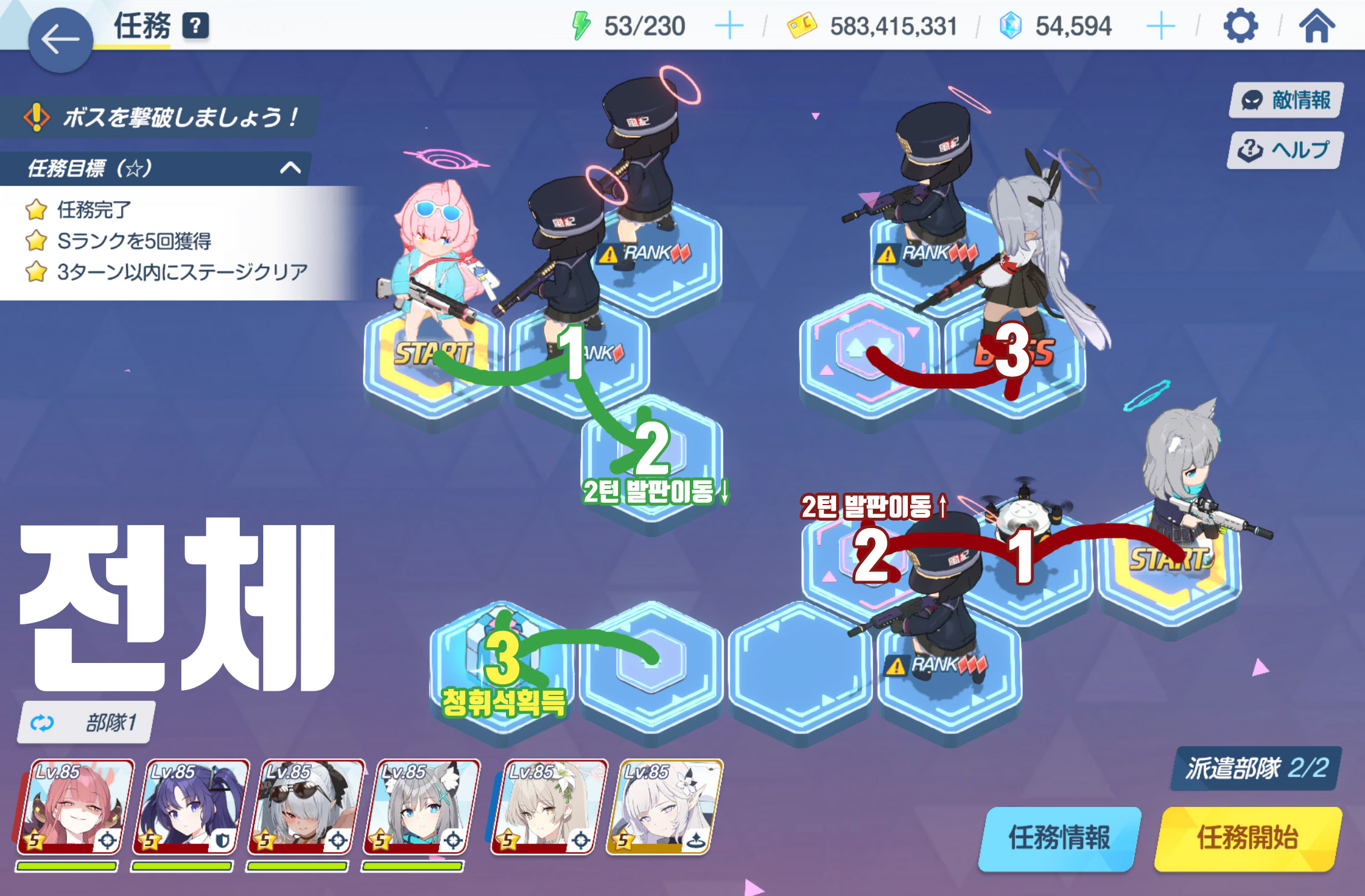 임무완료 / 전투 S랭크 5회 / 3턴 내에 스테이지 클리어
