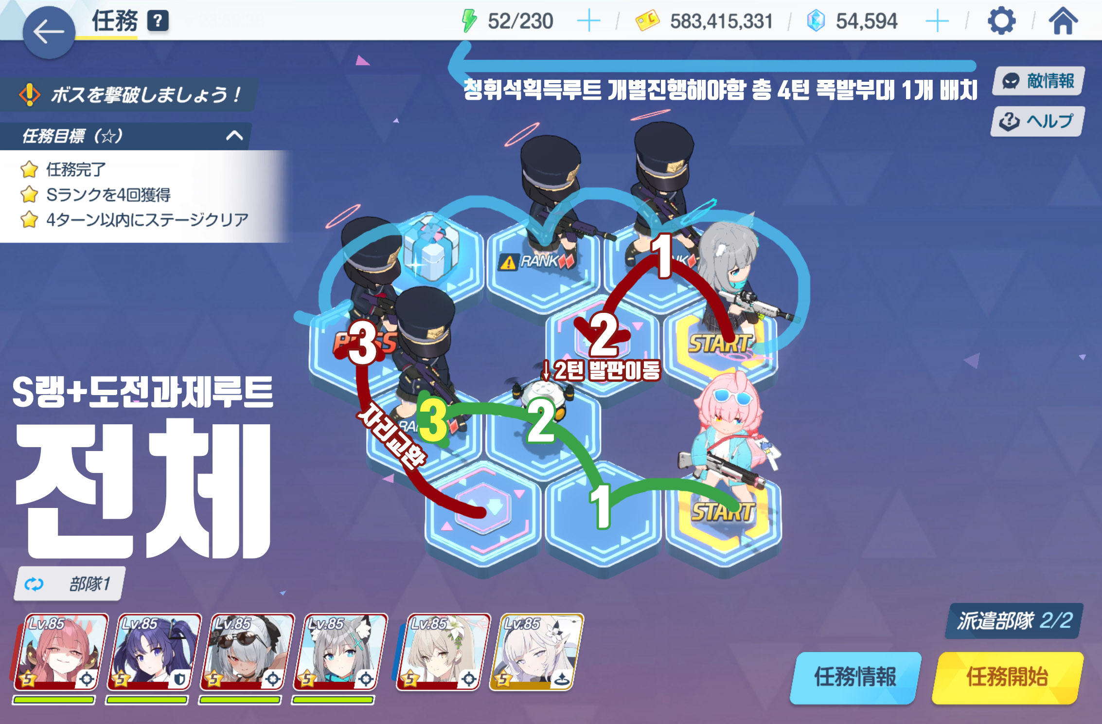 임무완료 / 전투 S랭크 4회 / 4턴 내에 스테이지 클리어