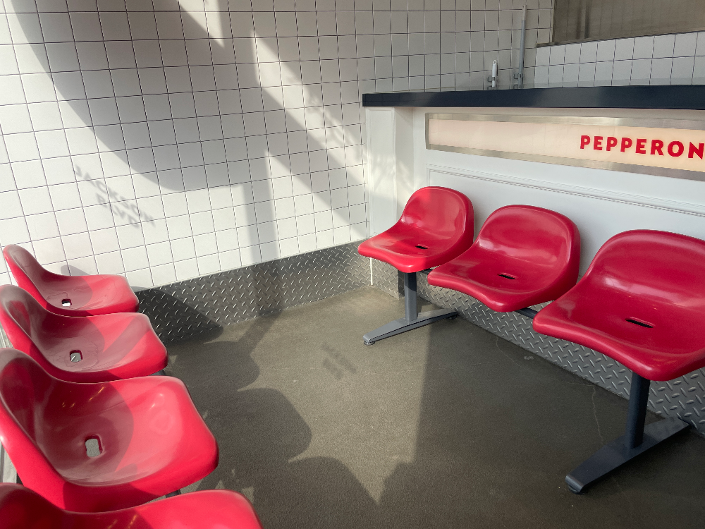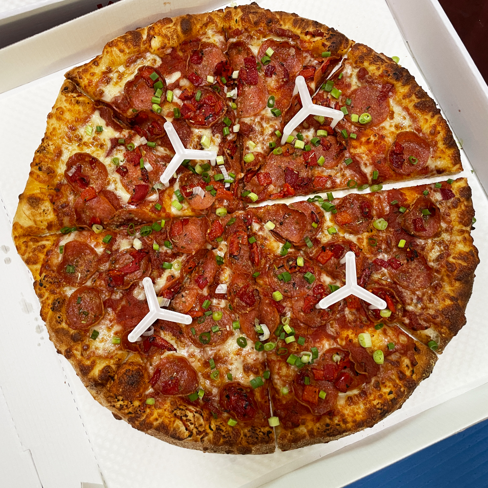 기본 토마토소스가 쭉 깔려져있고 위에 페퍼로니가 있습니다.
