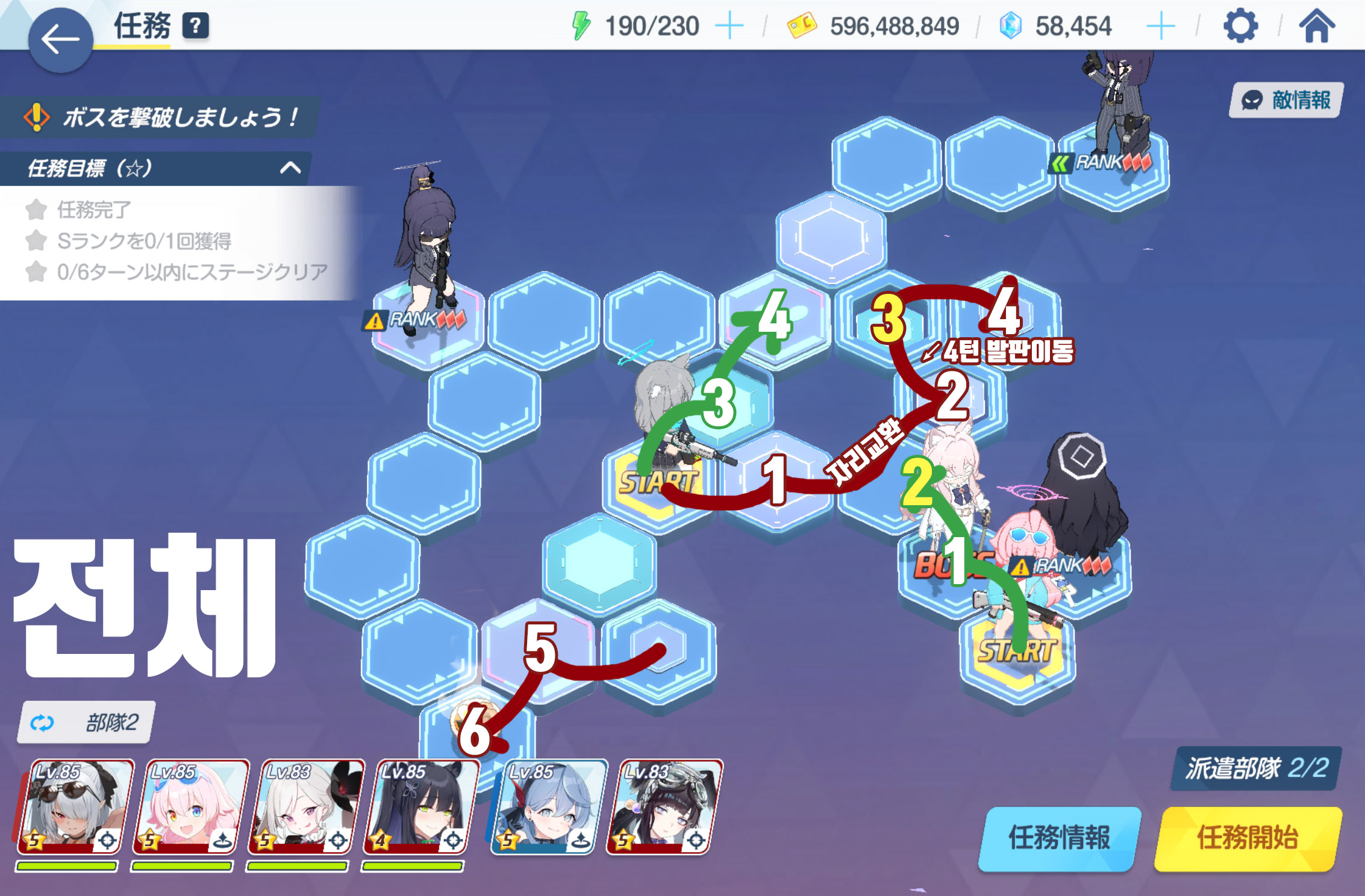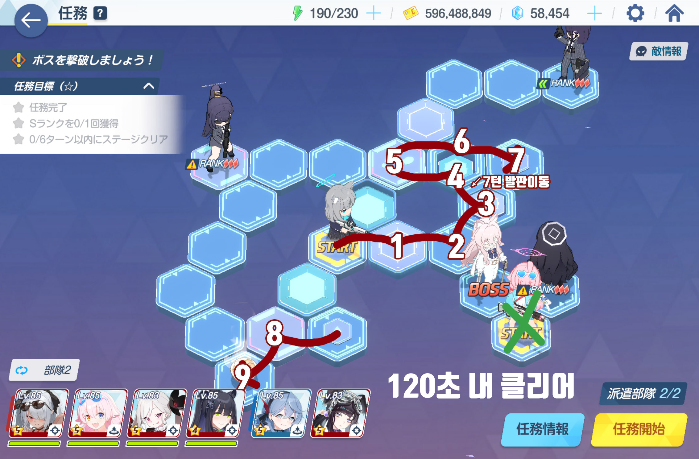 임무완료 / 전투 S랭크 1회 / 6턴 내에 스테이지 클리어