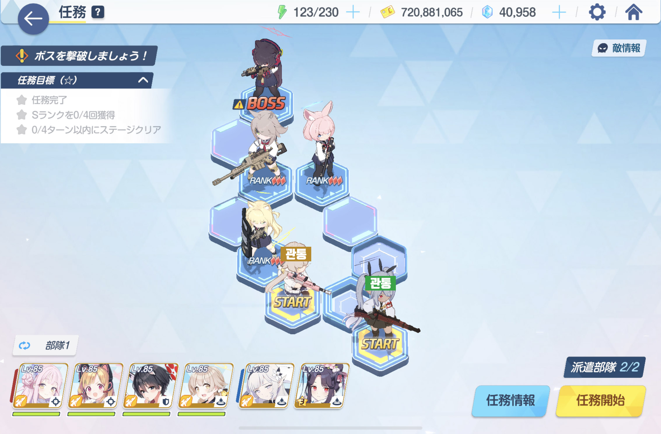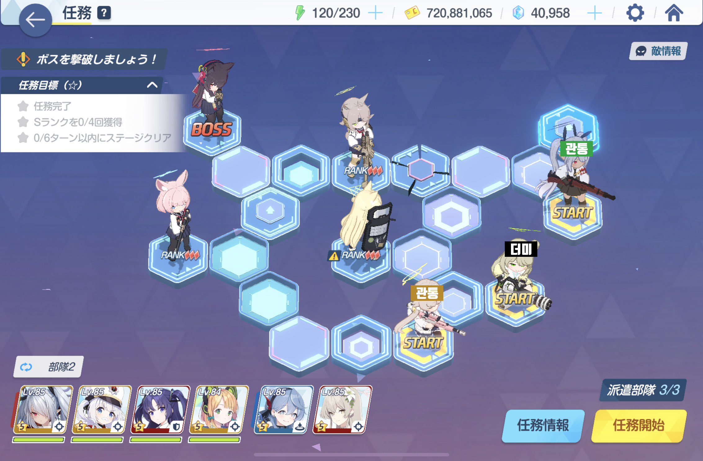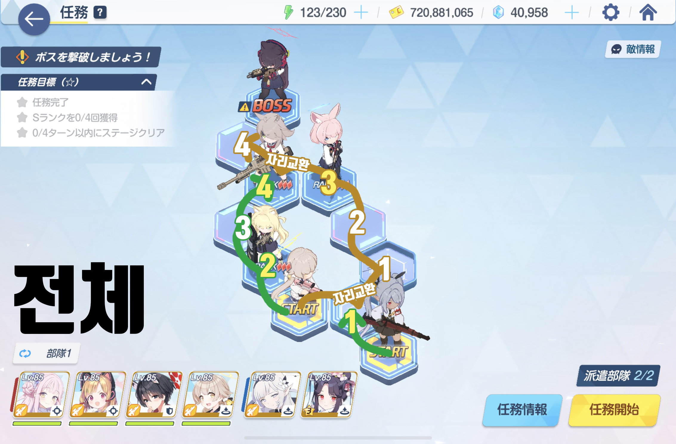 임무완료 / 전투 S랭크 4회 / 6턴 내에 스테이지 클리어