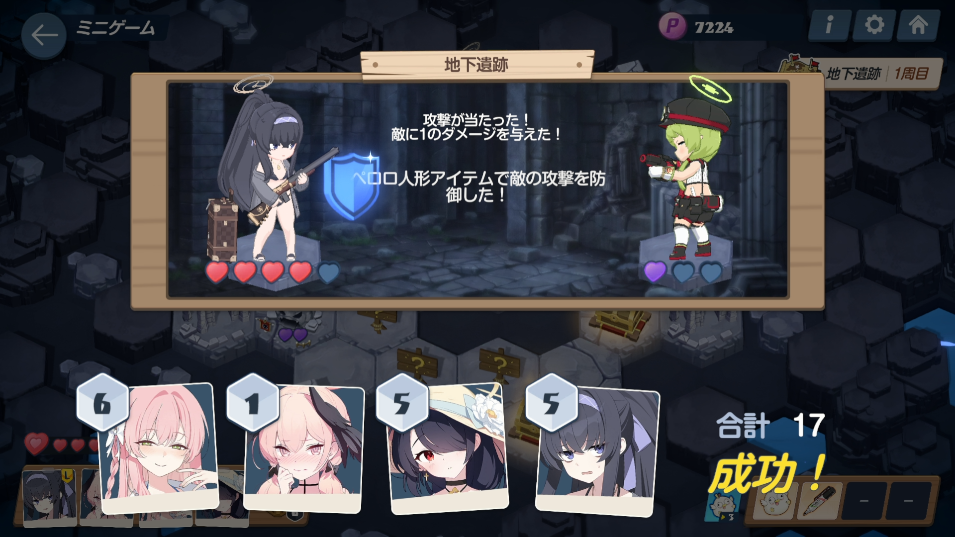 오른쪽 전투를 누르면 11이상 나오면 성공으로 체력이 1칸 닳고 15이상 나와서 대성공시 체력이 2칸 닳습니다.